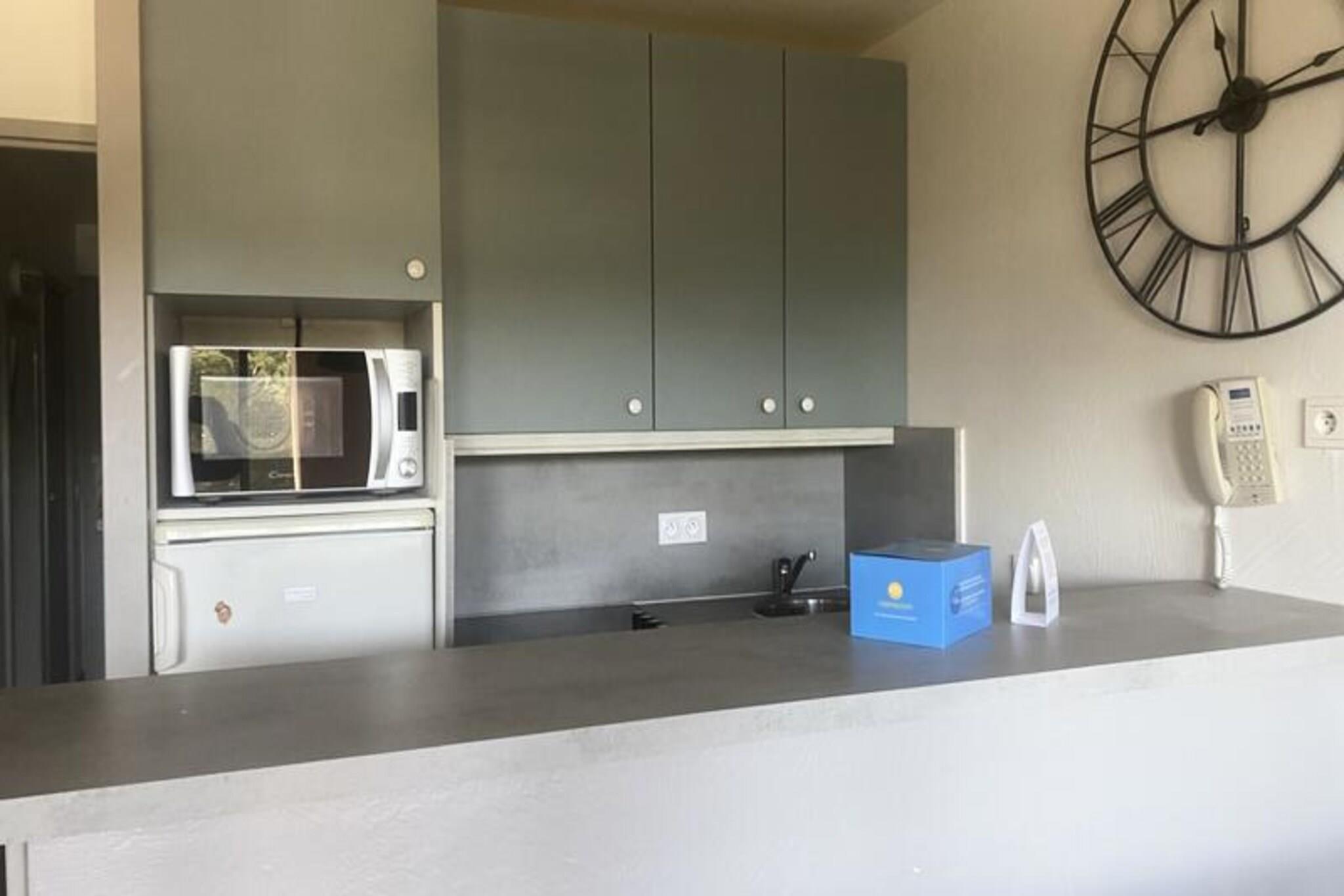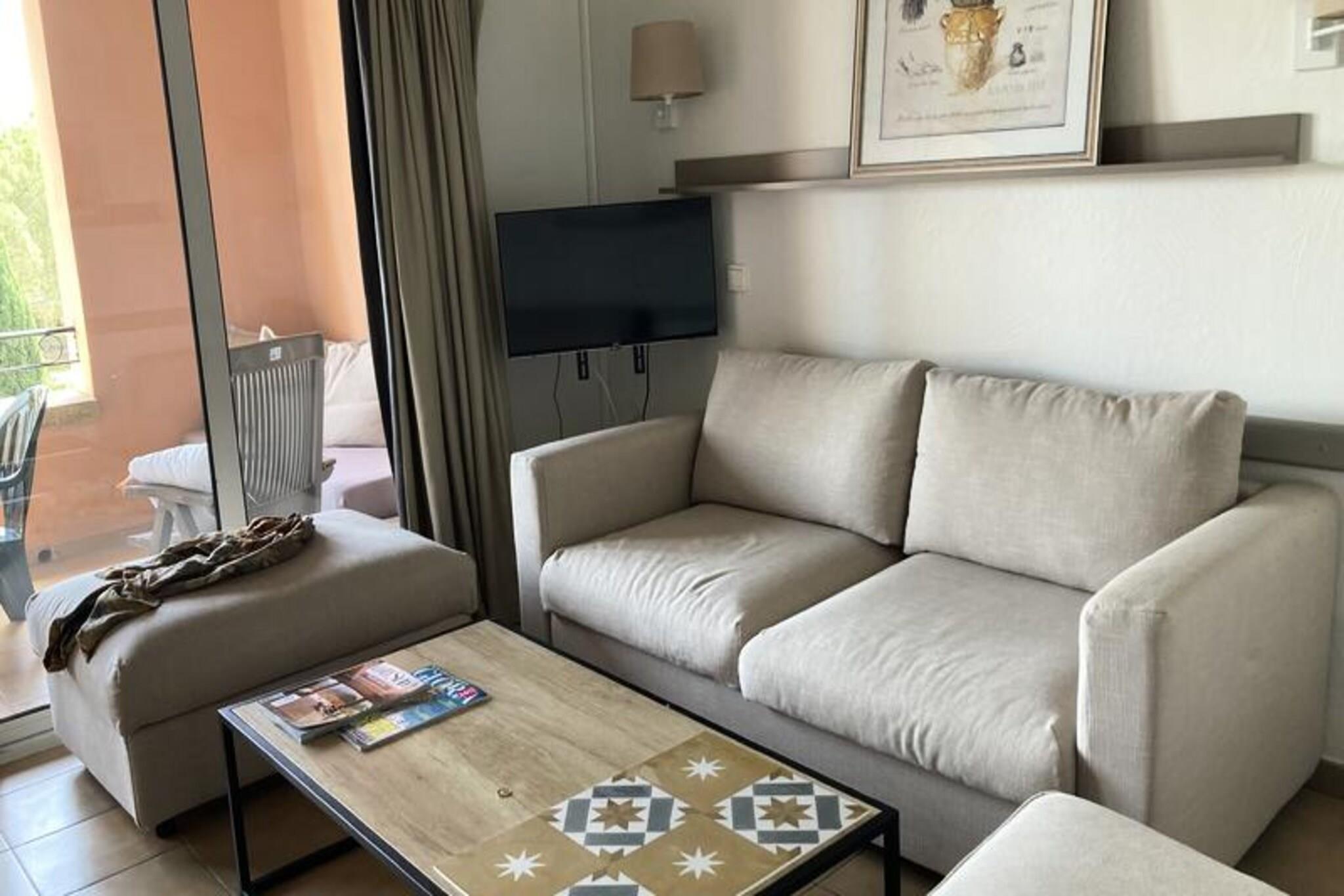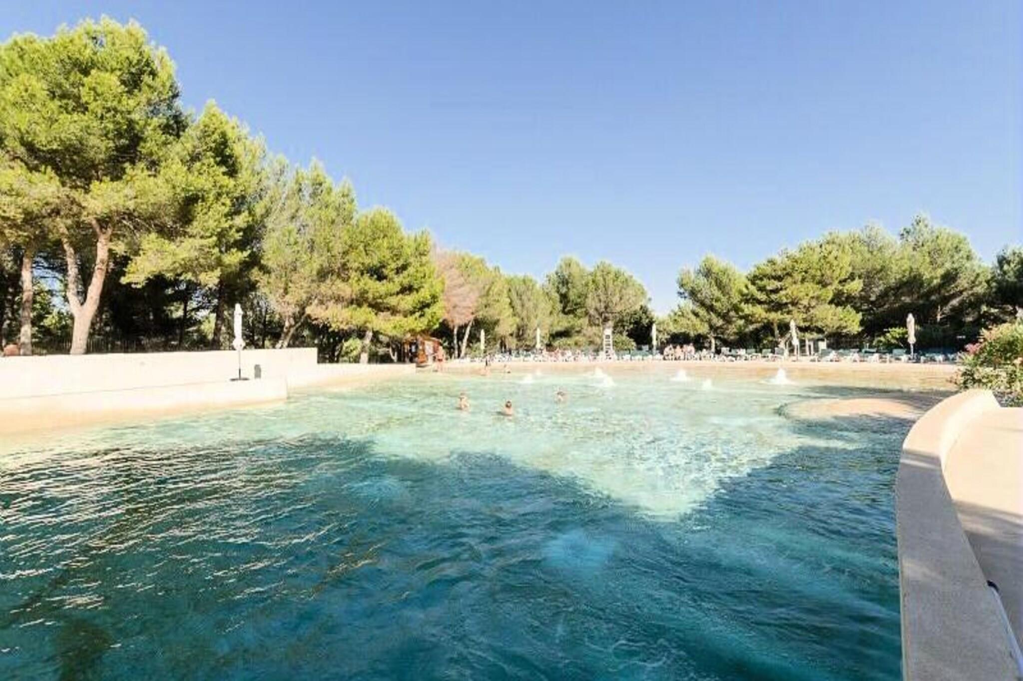 Denne hyggelige lejlighed har plads til op til 6 gæster med en dobbeltseng, køjesenge og to sovesofaer (en med en udtræksseng). Kæledyr er tilladt mod et ekstra gebyr. Sengetøj er inkluderet, og håndklæder er tilgængelige mod et ekstra gebyr. En obligatorisk slutrengøring er påkrævet, med mulighed for daglig rengøring mod et ekstra gebyr. Der opkræves også et depositum ved ankomst. Lejligheden ligger i en fodgængerlandsby tæt på forskellige aktiviteter såsom basketball, beachvolley, ridning og et ekspansivt vandområde med rutsjebaner og et bølgebassin. Gæsterne kan også nyde en 18-hullers golfbane og familieunderholdning. Nærliggende butikker og restauranter bidrager til bekvemmeligheden, og de smukke byer Aix-en-Provence og Avignon er inden for rækkevidde. Lejligheden har et veludstyret køkken åbent til stuen, to badeværelser (det ene med badekar, det andet med bruser og toilet) og en privat terrasse. Gæsterne har adgang til parkering, hvilket gør det nemt at udforske området. Uanset om du søger eventyr eller afslapning, tilbyder denne lejlighed alt til et mindeværdigt ophold.