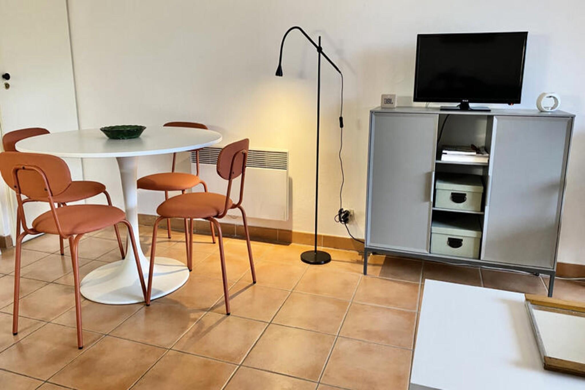Denne charmerende ferielejlighed er ideel til en familie eller lille gruppe, og byder på en hyggelig stue med en sovesofa til to og et kabineområde med køjesenge. Ejendommen er kæledyrsvenlig, selvom der muligvis opkræves tillægsgebyrer. En obligatorisk slutrengøring sikrer en problemfri afgang, og du kan forhøre dig om daglige rengøringsmuligheder i receptionen. Lejligheden leveres med sengelinned inkluderet, mens håndklæder er tilgængelige mod et tillægsgebyr. En turistskat er gældende, og der tilbydes parkering på landsbyens parkeringsplads. Ejendommen ligger mellem Aix-en-Provence og Avignon i en malerisk fodgængerlandsby, omgivet af fantastiske landskaber. Gæsterne kan nyde adskillige aktiviteter på stedet, såsom basketball, beachvolley og ridning. Vandområdet Vallée des Loisirs med rutsjebaner, kunstig riverrafting og opvarmet bølgebassin er perfekt til en sjov dag. Boligen tilbyder også adgang til en 18-hullers golfbane og børneklubber, hvilket gør det til et godt valg for familier. Indvendigt har lejligheden et fuldt udstyret køkken åbent til stuen, hvilket giver mulighed for nem tilberedning af måltider. Badeværelset har badekar og toilet, og den private terrasse tilbyder et fredeligt sted at slappe af. En parkeringsplads er til rådighed, og landsbyens parkeringsplads er i nærheden for yderligere bekvemmelighed. Gæster kan nyde fordelene ved at bo på et større resort, med adskillige spise- og shoppingmuligheder kun få skridt væk.