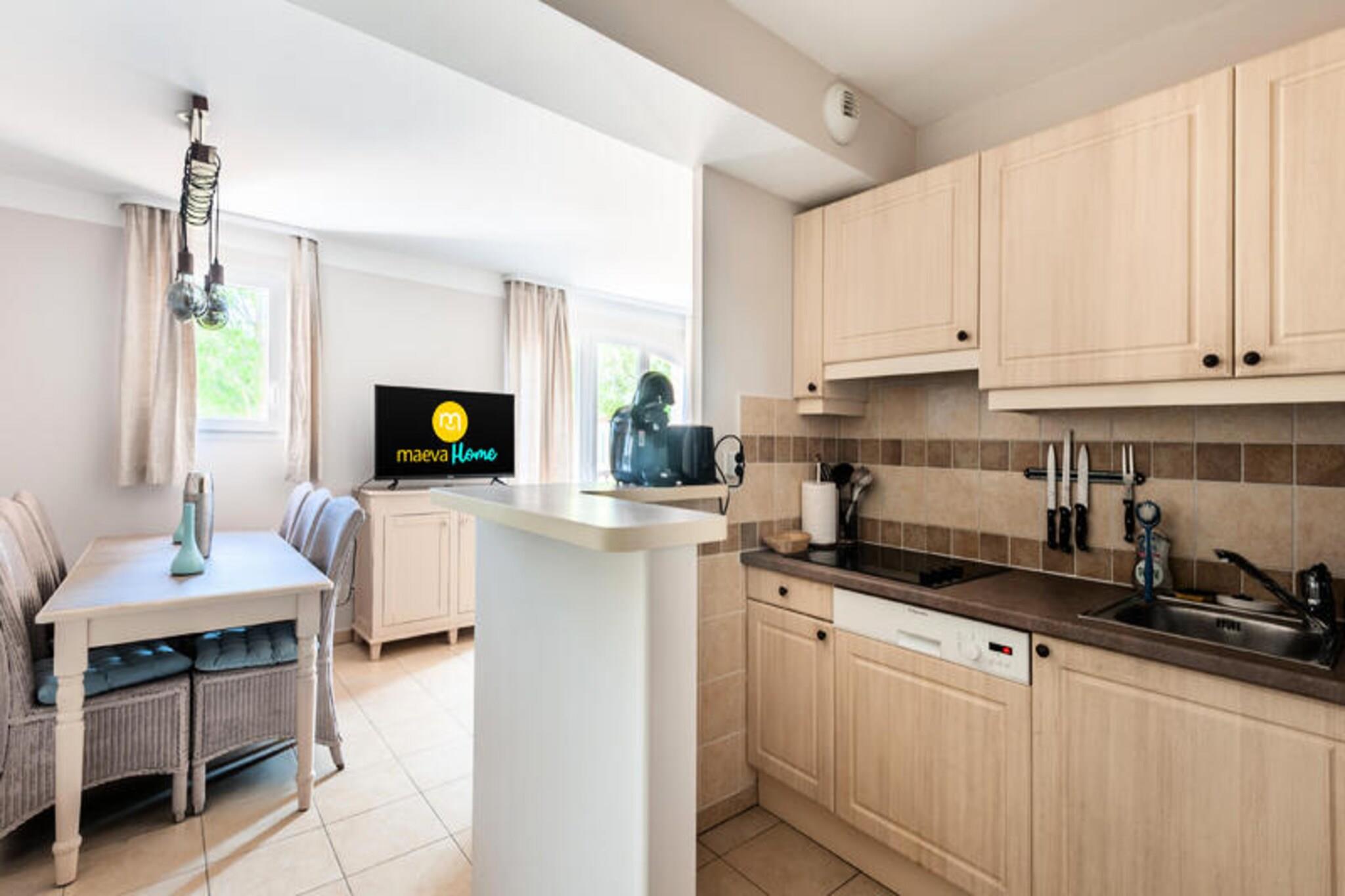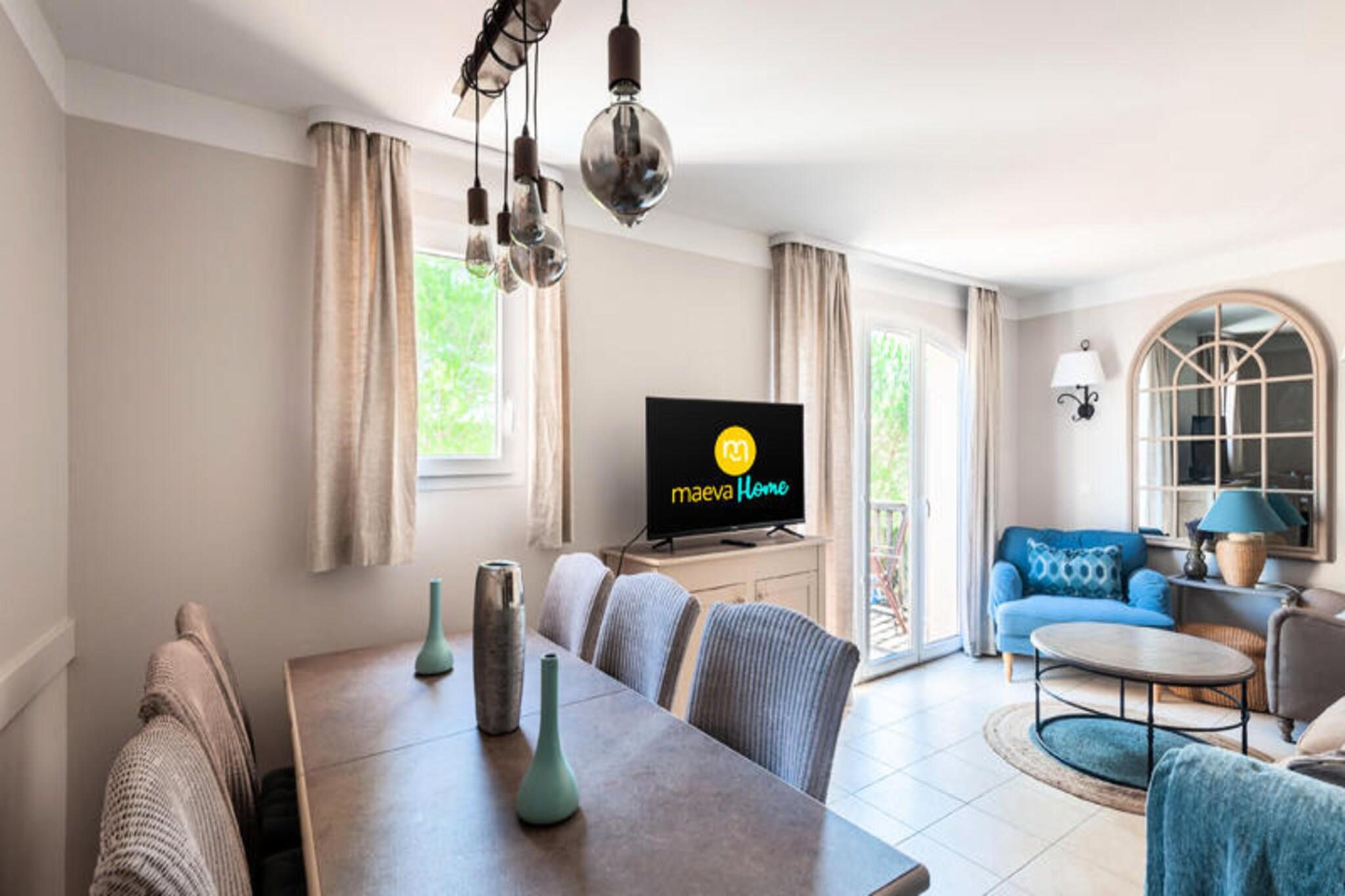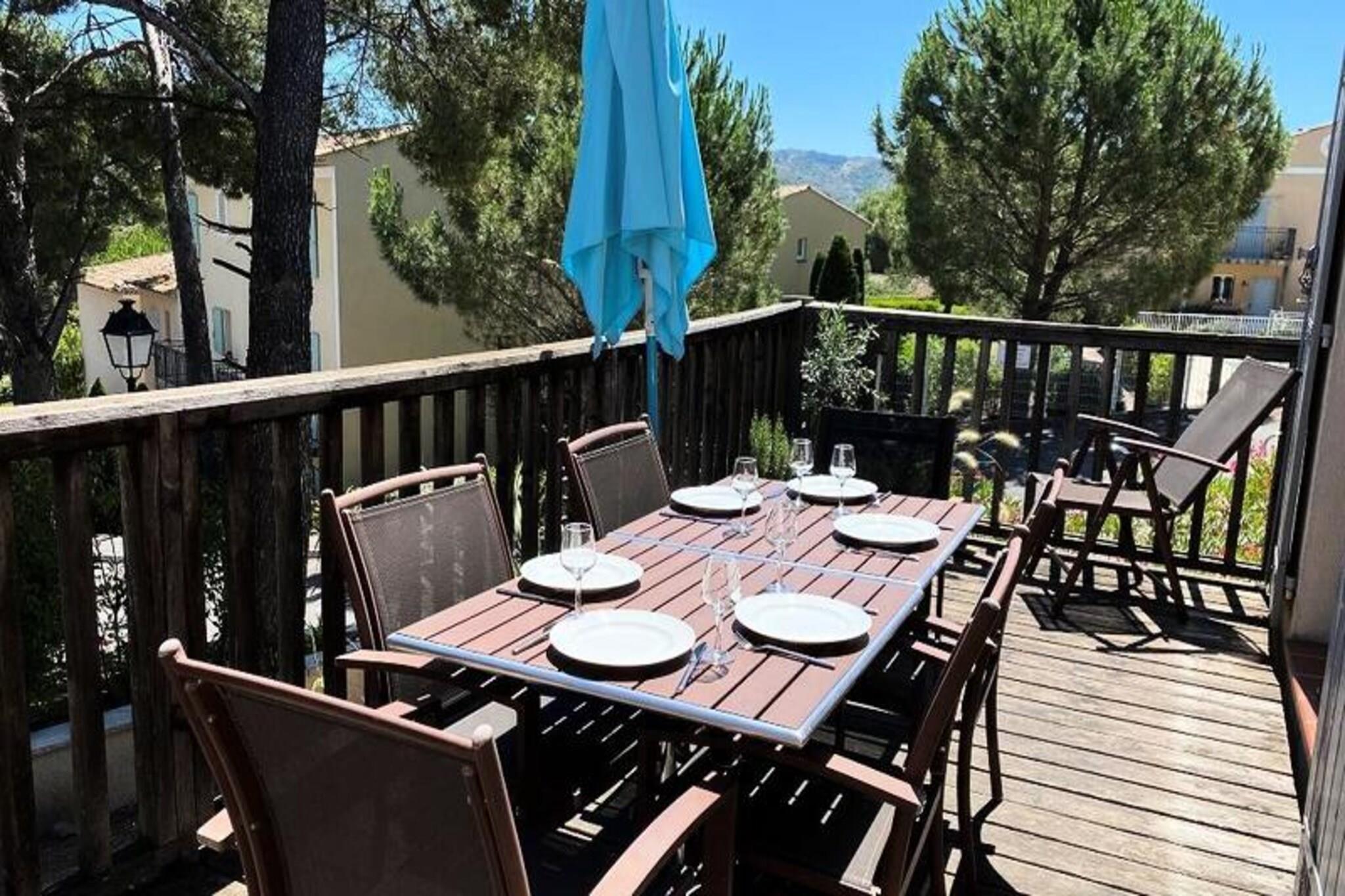 Dette charmerende duplex-feriehus med aircondition tilbyder 55 m² plads, ideel til familier eller venner, med 3 soveværelser, herunder 1 dobbeltseng og 4 enkeltsenge. Indkvarteringen omfatter 2 badeværelser, 1 separat toilet og en terrasse perfekt til udendørs spisning. Kæledyr er tilladt mod et ekstra gebyr. En dedikeret udendørs parkeringsplads er til rådighed for nemheds skyld. Ejendommen er beliggende i et naturskønt 180 hektar stort domæne, omgivet af natur og kun 10 minutters gang fra landsbyens centrum, hvor du finder butikker og restauranter. Du kan nyde en række aktiviteter, herunder adgang til 3 swimmingpools, et opvarmet bølgebassin og en 6-hullers golfbane. Udforsk de nærliggende landsbyer på en bakketop, lokale markeder og den smukke Provence-region for uforglemmelige kulturelle og gastronomiske oplevelser. Indenfor har hjemmet et veludstyret amerikansk køkken, en komfortabel stue og moderne bekvemmeligheder, herunder Wi-Fi og en elektrisk hårtørrer. Sengelinned er inkluderet, og daglig rengøring er tilgængelig efter anmodning. Ejendommen tilbyder alt det nødvendige for et afslappende og behageligt ophold i hjertet af Provence.