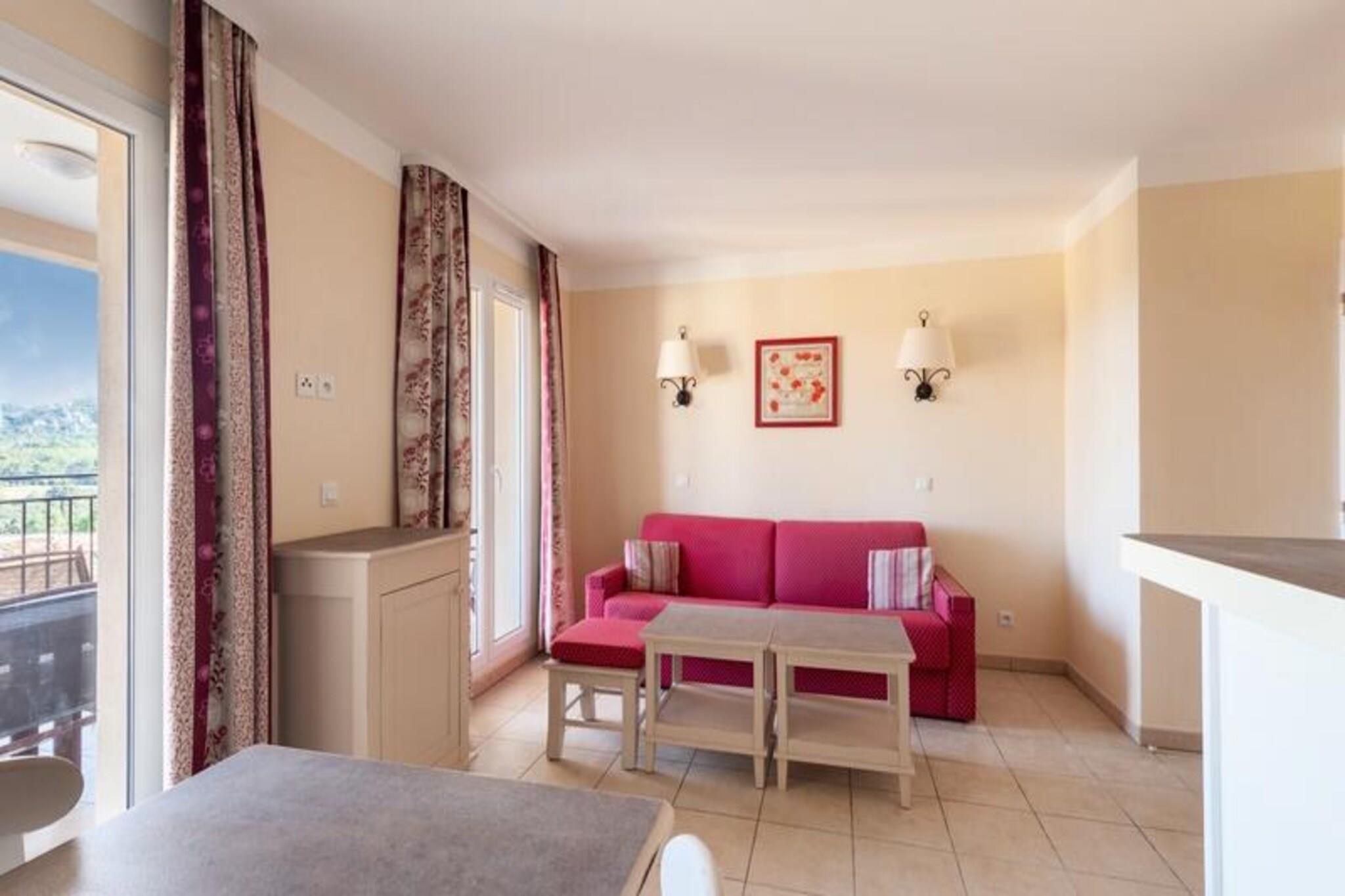 Situada entre los Alpilles y el Lubéron, en el magnífico dominio de Pont-Royal-en-Provence (180 hectáreas), la residencia Les Coteaux de Pont Royal se enfrenta al magnífico Macizo del Lubéron. Se beneficiará de un entorno excepcional para disfrutar de sus vacaciones bajo el sol de Provenza. La residencia tiene una ubicación tranquila y ofrece una piscina reservada para el distrito de Coteaux abierta del 1 de junio al 30 de septiembre, a 10 minutos a pie del centro del pueblo para acceder a actividades y comercios. Estás a 5 minutos andando de la práctica de golf y del campo de 6 hoyos. También tendrá acceso a la piscina de olas climatizada con tobogán y río salvaje (abierta de abril a finales de agosto) y a la piscina de Rochers (abierta del 6 de abril a finales de septiembre, con piscina para niños), en el pueblo Pierre & ; Vacaciones. Aproveche también su estancia para descubrir los placeres de Provenza. Para ello se ofrecen numerosas excursiones en los bonitos pueblos de la región situados en las colinas. Además, acércate a la plaza para pasear por su mercado local: ¡allí te espera gastronomía y artesanía local! Su alquiler vacacional incluye: 1 salón, 1 cocina, 1 dormitorio, 1 baño, 1 aseo independiente, 1 terraza y aparcamiento subterráneo con acceso directo al alojamiento. Superficie: 39 m². Ubicación: 1er piso del edificio Arbousier. Composición del salón: 2 sofás cama individuales (2 camas). Para la comida: 1 mesa con 4 sillas. Cocina abierta al salón. Composición de la habitación: cama de matrimonio. Composición del baño: bañera. 1 aseo independiente. Ropa de cama - Incluida - el contenido puede variar según la residencia: sábana bajera, sábana o funda nórdica y funda de almohada. Posibilidad de cambio diario de ropa de cama disponible con coste adicional, consultar precios en recepción. Ropa de baño - Cargo extra - Posibilidad de cambio diario de ropa de cama disponible con cargo extra, consultar precios en recepción. Limpieza de final de estancia - Cargo adicional. Servicio de limpieza obligatorio a pagar al momento del check-in o a la llegada. Limpieza diaria - Disponible con coste adicional, consultar tarifas en recepción. Estacionamiento - Para alojamientos que no cuentan con estacionamiento privado, es posible estacionar en el Estacionamiento de Visitas. Piscina - Aperturas: - Piscina de olas climatizada: del 04/06 al final de agosto con toboganes y río salvaje - Piscina de rocas: mediados de julio a finales de septiembre - Piscina en laderas: del 01/06 al 30/09/24 Tasa turística (cargo adicional) - A pagar desde tu área de cliente: https://mon-compte.maeva.com. Su importe varía dependiendo de la ubicación. Gratis para menores de 18 años. Depósito (en euros) - 500 Limpieza final de estancia - Servicio de limpieza obligatorio a pagar al realizar el check-in o a la llegada.