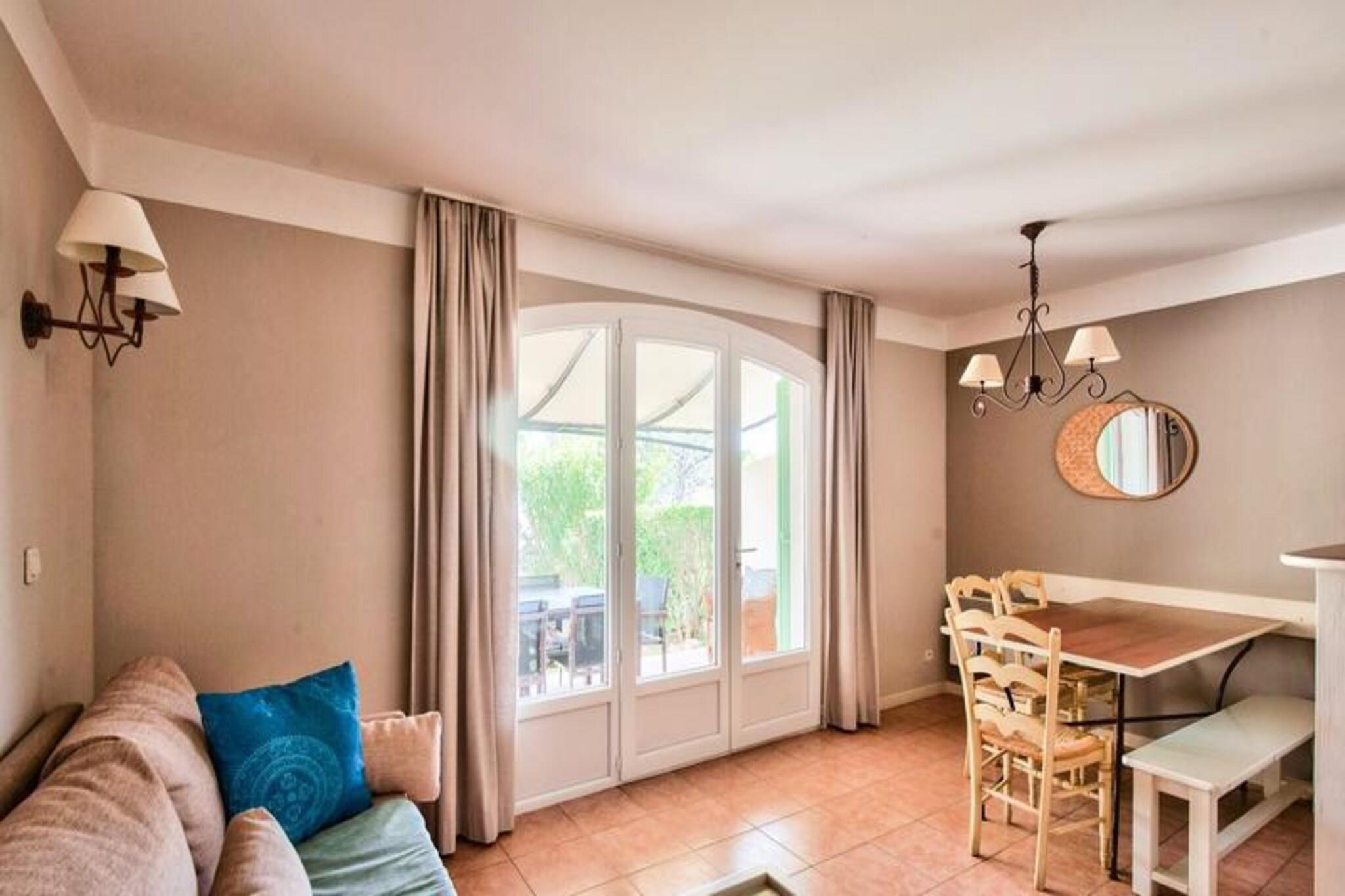 Beliggende på den fredfyldte Pont-Royal ejendom i Provence, kan dette charmerende feriehus rumme op til syv gæster. Det omfatter to soveværelser, det ene med en dobbeltseng og det andet med to enkeltsenge, plus en stue med en sovesofa og en udtræksseng (en egnet til et barn). Hjemmet er kæledyrsvenligt, så du kan medbringe dine lodne ledsagere mod et ekstra gebyr. Gæsterne kan slappe af på den private terrasse, perfekt til at nyde den provencalske sol. Ideelt beliggende mellem Aix-en-Provence (30 km) og Avignon (45 km), giver denne ejendom nem adgang til Provences pulserende kultur og attraktioner. Udforsk charmerende markeder, caféer og historiske vartegn i nærliggende byer. Pont-Royal ejendom tilbyder adskillige aktiviteter, herunder en 18-hullers golfbane, ridning, tennis, petanque og sæsonbestemte pools, såsom den opvarmede bølgebassin med rutsjebaner (åben april til august) og andre tilgængelige indtil september. Huset er udstyret med moderne bekvemmeligheder for et behageligt ophold. Det åbne køkken har køleskab, komfur og opvaskemaskine, mens badeværelset har badekar og toilet. Sengelinned er inkluderet, og valgfrit ekstraudstyr som daglige skift af sengetøj og slutrengøring er tilgængelige mod et gebyr. Et refunderbart depositum på EURO1.200 er påkrævet, hvilket sikrer en problemfri og afslappende ferie i disse smukke provencalske omgivelser.