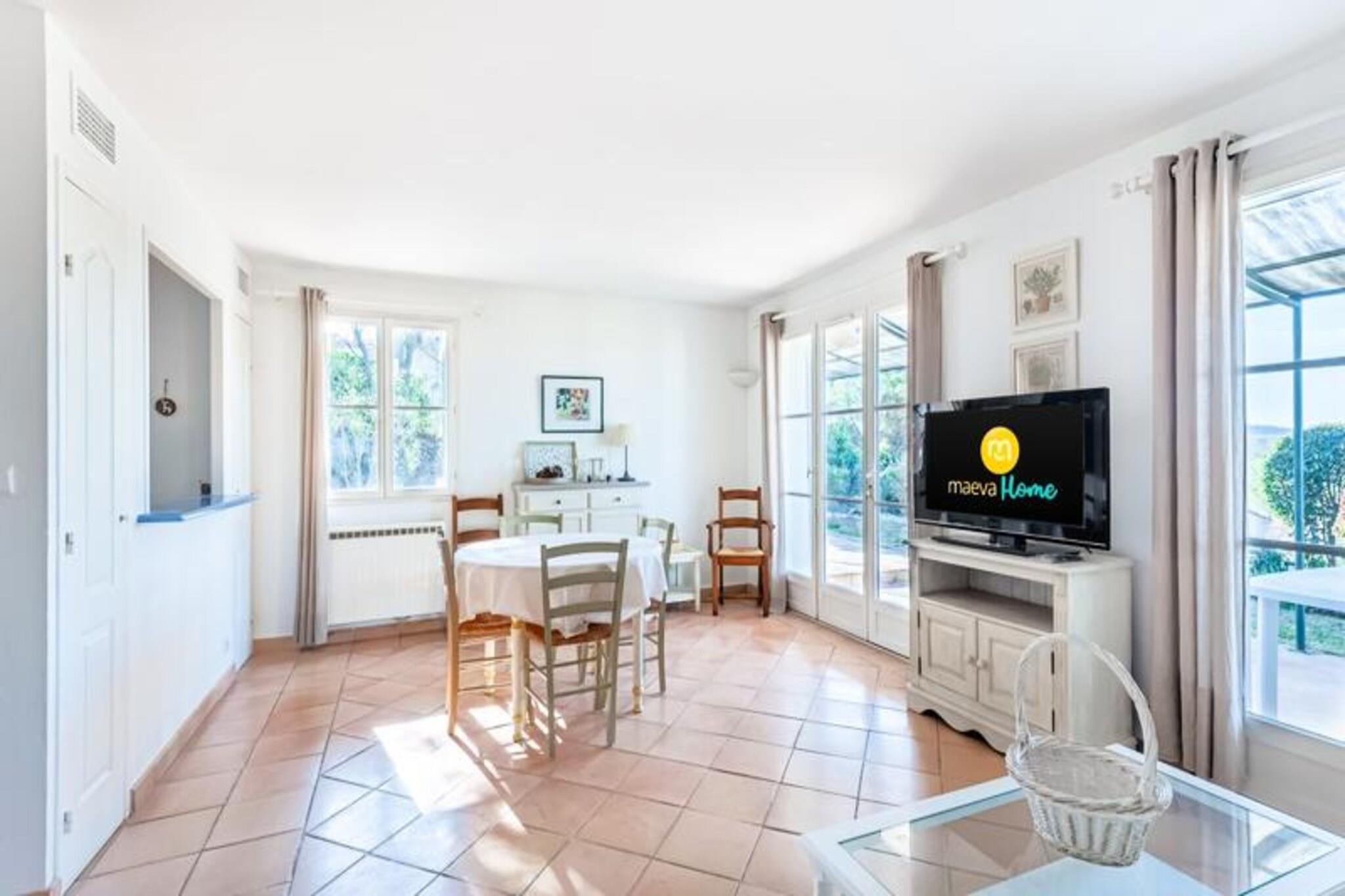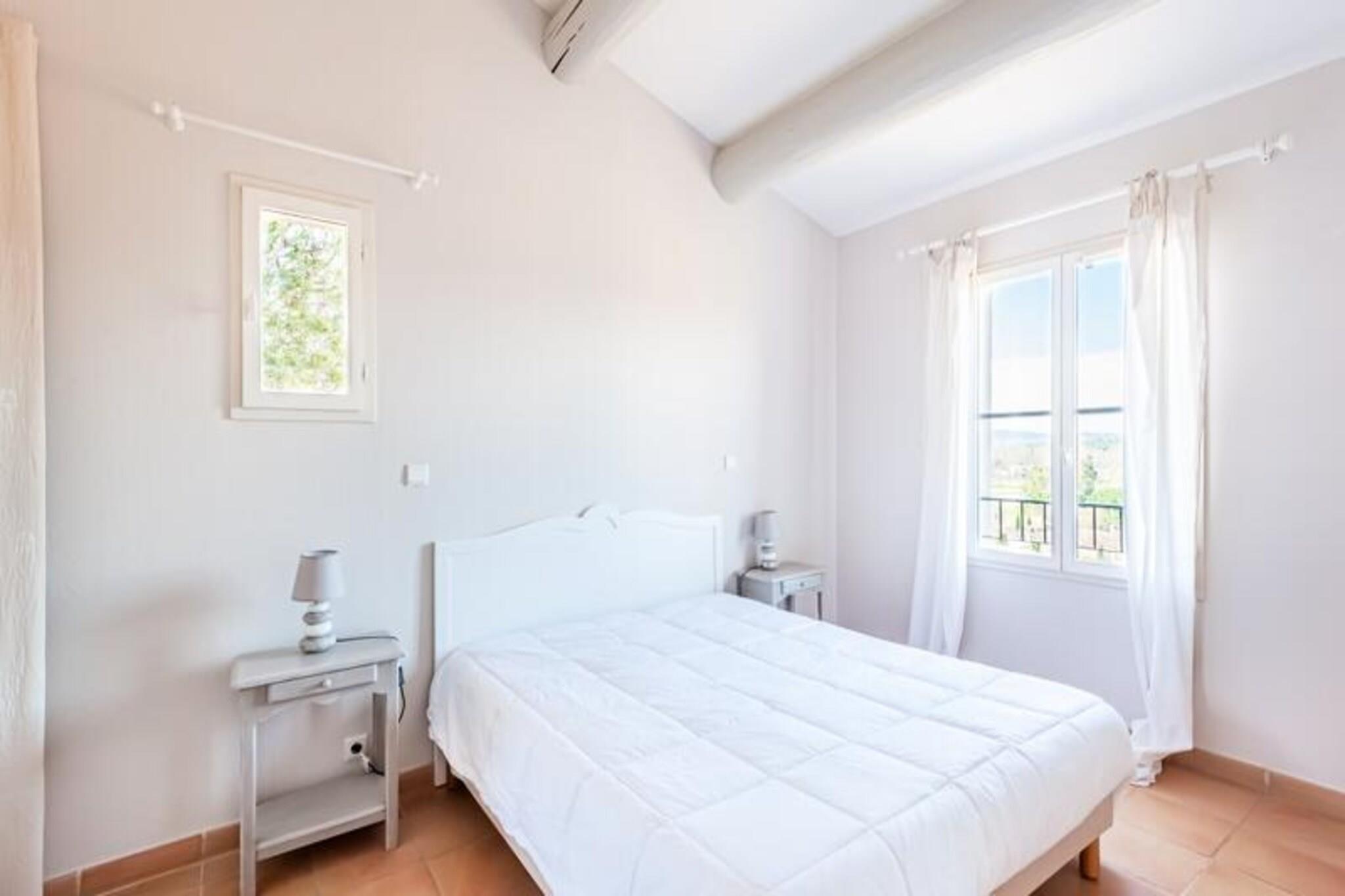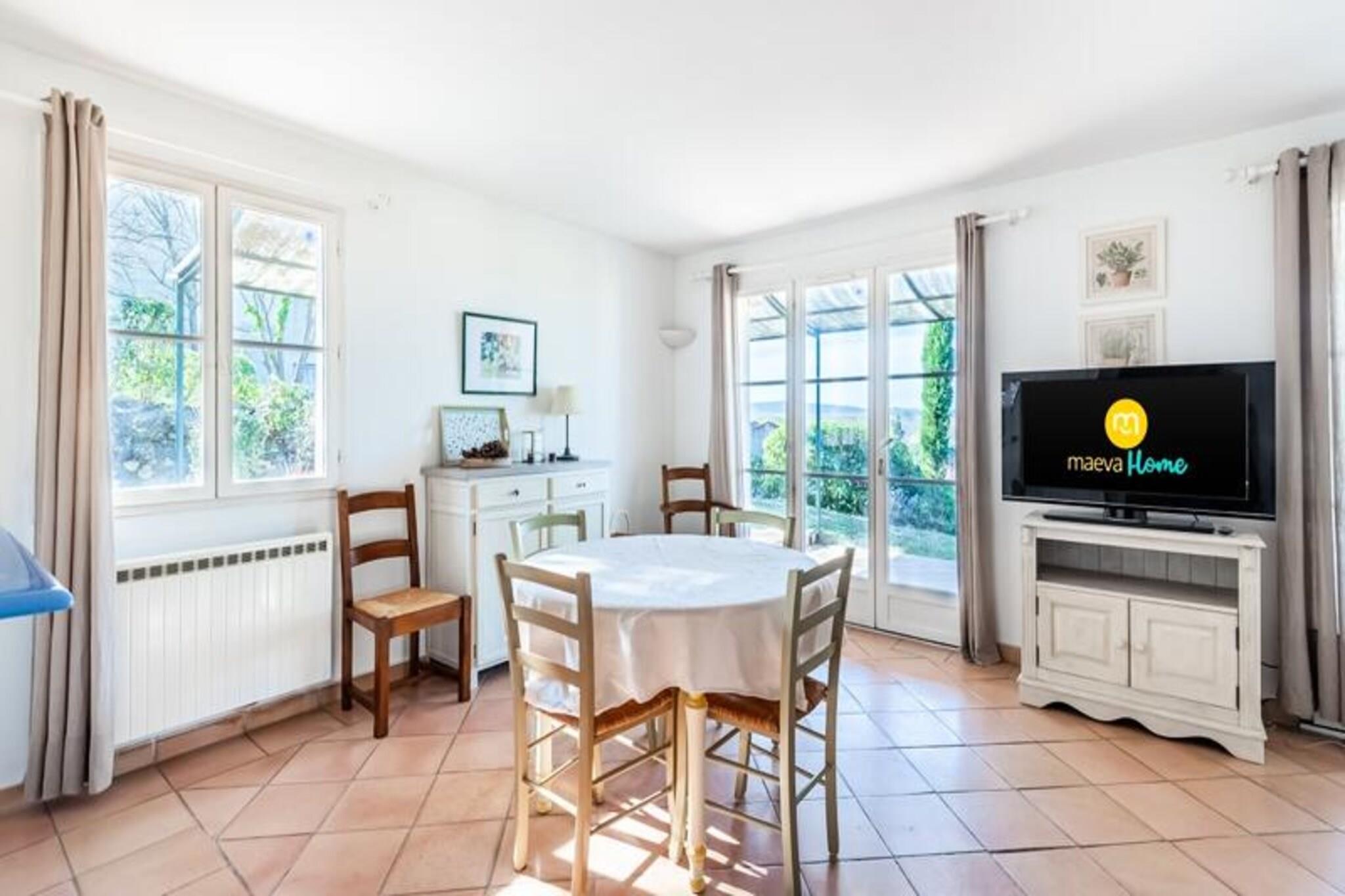 Nyd et fredeligt ophold i hjertet af Provence i dette rummelige feriehus. Det er designet til at rumme op til 6 personer og har 2 komfortable soveværelser, det ene med en dobbeltseng og det andet med 2 enkeltsenge. Boligen indeholder 2 badeværelser, 2 separate toiletter og en overdækket terrasse med en fantastisk udsigt over dalen. Kæledyr er velkomne (spørg venligst om priser), og sengetøj er til rådighed for din bekvemmelighed. Yderligere tjenester såsom daglige skift af sengetøj og rengøring er tilgængelige mod et tillægsgebyr. Beliggende mellem Aix-en-Provence og Avignon, er feriehuset perfekt beliggende for at udforske regionens skønhed. Oplev nærliggende byer som Mallemort, med nem adgang til de berømte byer Avignon (45 km) og Aix-en-Provence (30 km). Pont-Royal ejendom tilbyder et væld af aktiviteter, herunder en golfbane, ridning, tennis, petanque og meget mere. Nyd den varme provencalske sol ved forskellige swimmingpools på stedet, herunder et opvarmet bølgebassin, klippebassin og swimmingpool på bjergskråninger. Boligen har et halvåbent køkken og spiseplads, ideel til at tilberede måltider sammen. Det veludstyrede køkken har alt det nødvendige for et behageligt ophold. Den rummelige opholdsstue med en sovesofa giver et afslappende miljø, og det udendørs rum omfatter en have og parkeringsplads. Uanset om du nyder et måltid på terrassen eller slapper af i det lyse interiør, tilbyder dette feriehus alt, hvad du behøver til en afslappende ferie.