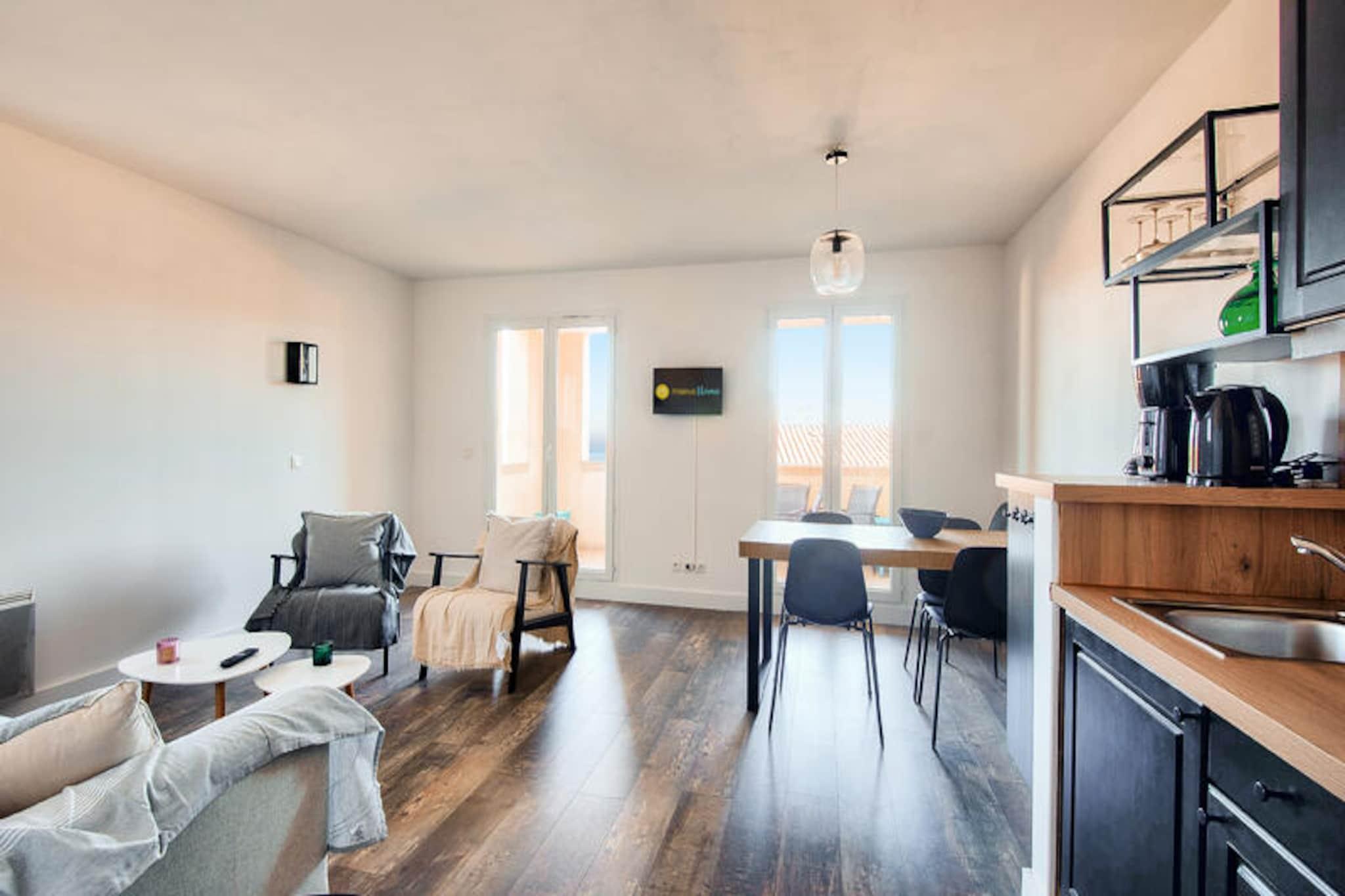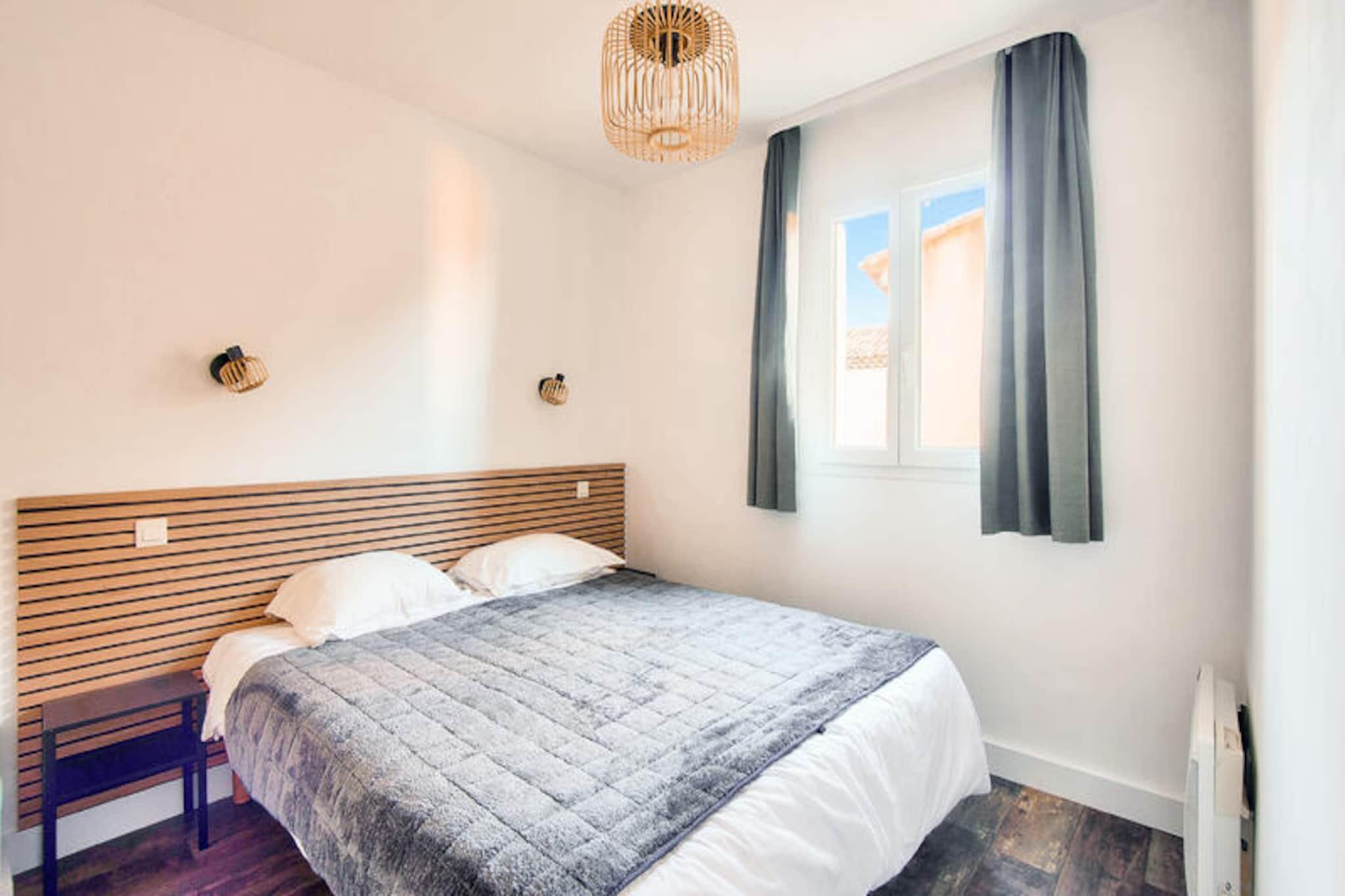 Midt i Provences bølgende landskaber, mellem Alpilles og Luberon-bjergene, ligger din fredfyldte tilflugtssted på den prestigefyldte ejendom Pont-Royal-en-Provence. Denne bolig, der strækker sig over 180 hektar, tilbyder et roligt tilflugtssted med en betagende udsigt over Luberon-massivet, hvor du kan sole dig under den varme provencalske sol og fordybe dig i regionens tidløse charme. Denne smukt designede lejlighed, der ligger på første sal, kan prale af en rummelig planløsning på 57 m² med et semi-åbent køkken, en hyggelig stue med en sovesofa og to komfortable soveværelser. Soveværelset har en luksuriøs dobbeltseng, mens det andet soveværelse har to enkeltsenge, hvilket gør det ideelt for familier eller små grupper. To moderne badeværelser, det ene med badekar og det andet med bruser, sikrer bekvemmelighed og komfort. Træd ud på din private, overdækkede terrasse for at nyde din morgenkaffe eller et aftenglas vin, mens du nyder den fredelige atmosfære. En dedikeret overdækket parkeringsplads bidrager til bekvemmeligheden under dit ophold. Gæsterne kan nyde eksklusiv adgang til Coteaux-distriktets swimmingpool, der er åben fra juni til september, eller tage en kort fem minutters gåtur til golf driving range og 6-hullers bane. For mere vandsjov er den opvarmede bølgepool med rutsjebaner og en vild flod tilgængelig i sommermånederne. Landsbyens centrum, kun 10 minutters gang væk, tilbyder et udvalg af butikker, restauranter og aktiviteter, hvilket sikrer, at alt hvad du behøver er inden for rækkevidde. Ud over ejendommen venter Provence med sine maleriske landsbyer på bakketoppe, pulserende lokale markeder og udsøgte gastronomi. Oplev regionens rige kulturarv, forkæl dig selv med lokalt håndværk, eller slap blot af blandt lavendelmarkerne og olivenlundene. Dette er mere end en ferie - det er en invitation til at opleve hjertet af Provence i al sin skønhed og ro.