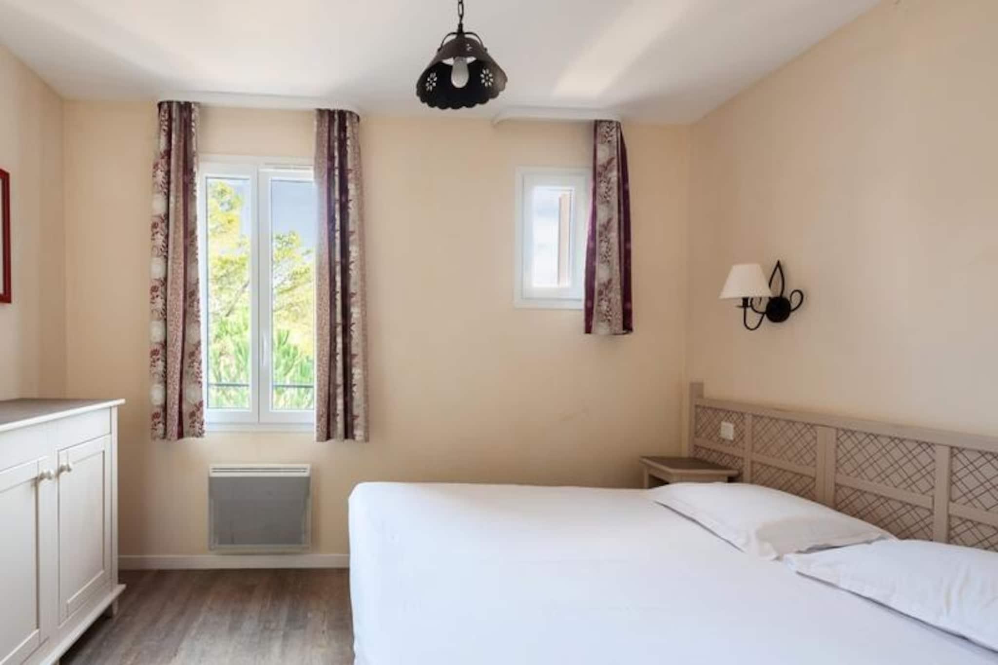 Midt i Provences bølgende landskaber tilbyder dette charmerende feriehus et roligt tilflugtssted på den prestigefyldte ejendom Pont-Royal-en-Provence. Residensen, der strækker sig over 180 hektar, er perfekt placeret til at fremvise den betagende udsigt over Luberon-massivet, der inviterer dig til at fordybe dig i den provencalske landskabs skønhed. Badet i sollys og omgivet af duftende lavendelmarker lover denne destination en ferie fyldt med ro og tidløs charme. Ejendommen har en gennemtænkt planløsning med to hyggelige soveværelser, to moderne badeværelser og en rummelig opholdsstue, der åbner op til en indbydende spiseplads. Det åbne køkken er fuldt udstyret, hvilket gør det nemt at tilberede lækre måltider med friske lokale ingredienser fra nærliggende markeder. Med en privat swimmingpool eksklusivt for Coteaux-gæster og adgang til yderligere pools, herunder en opvarmet bølgepool med rutsjebaner og en vild flod, er der ingen mangel på måder at slappe af og nyde de solrige dage. Uanset om du slapper af på dagsengen eller nyder komforten i dobbelt- og enkeltsengene, er hver eneste detalje blevet tænkt over for at sikre et behageligt ophold. Kun en kort gåtur fra boligen finder man landsbyens centrum med et pulserende udvalg af butikker, restauranter og aktiviteter. Golfentusiaster vil sætte pris på den nære beliggenhed til driving range og 6-hullers golfbane, mens naturelskere kan udforske de maleriske landsbyer på bakketoppe og naturskønne stier i regionen. Gå ikke glip af det lokale marked, hvor du kan nyde provencalsk gastronomi og opdage unikke håndværk. Med sine idylliske omgivelser og exceptionelle faciliteter er denne ejendom din port til hjertet af Provence, hvor uforglemmelige minder venter.
