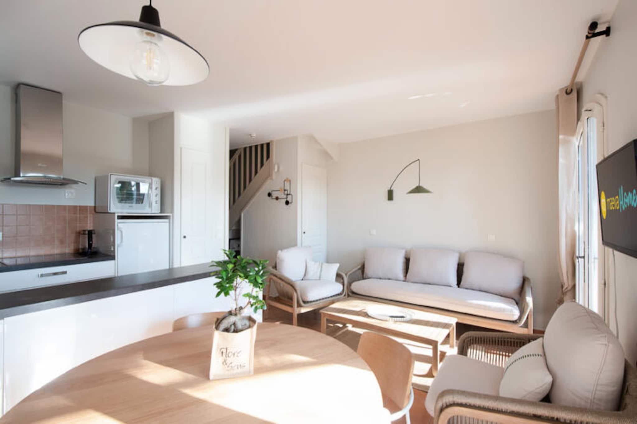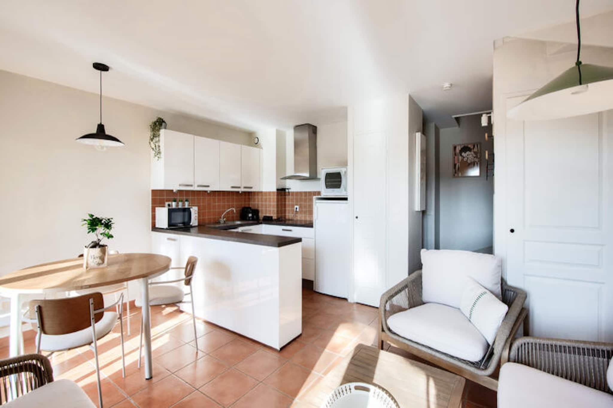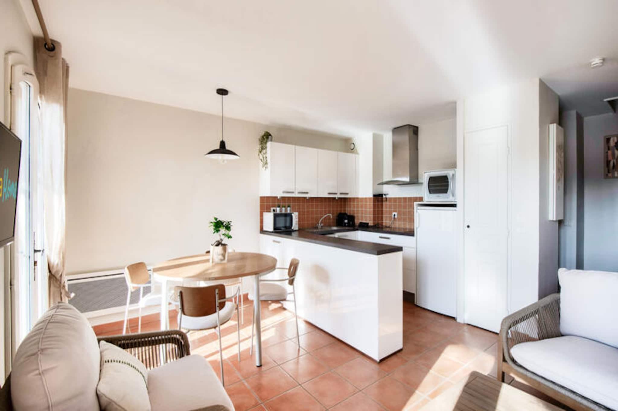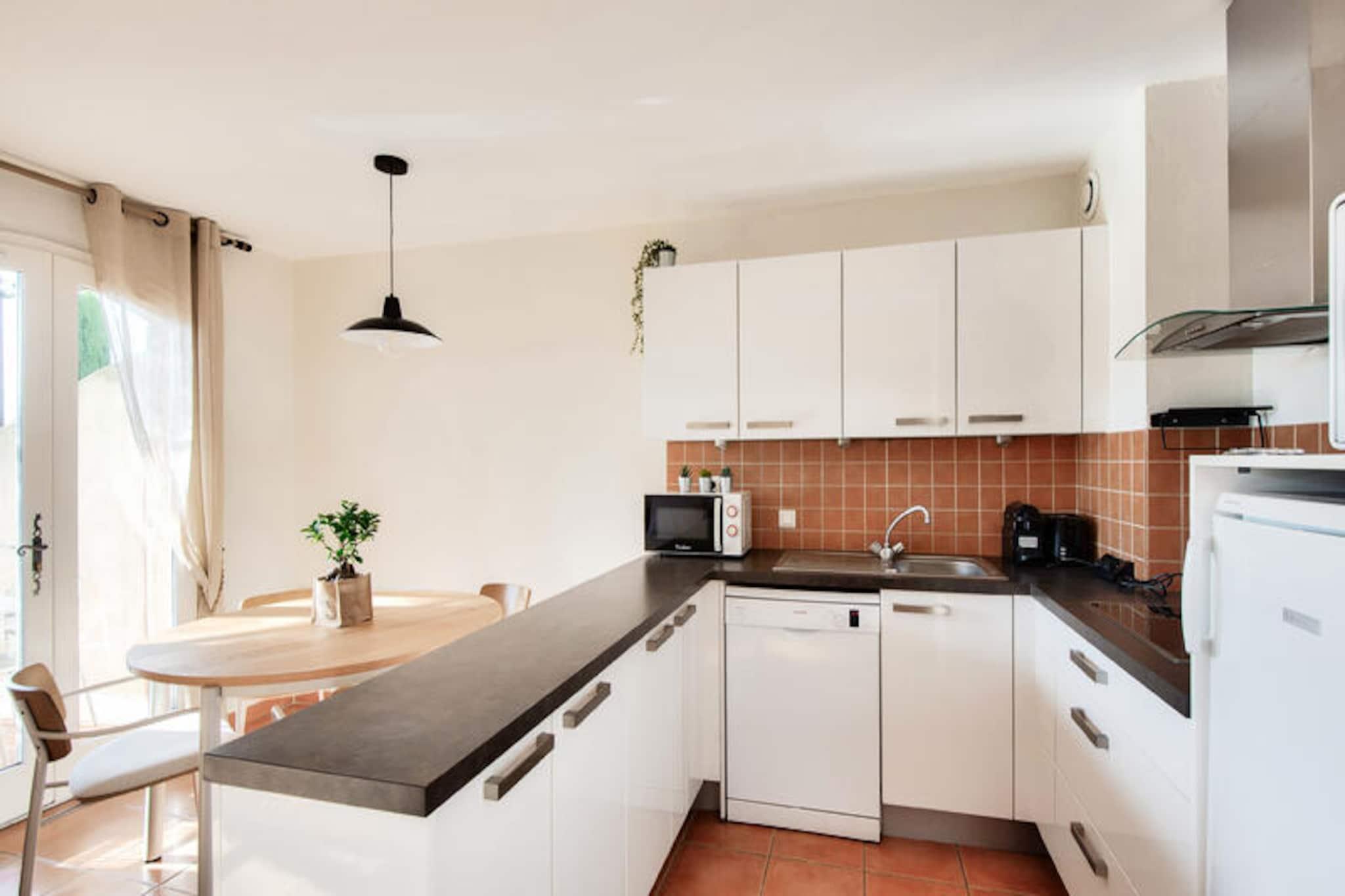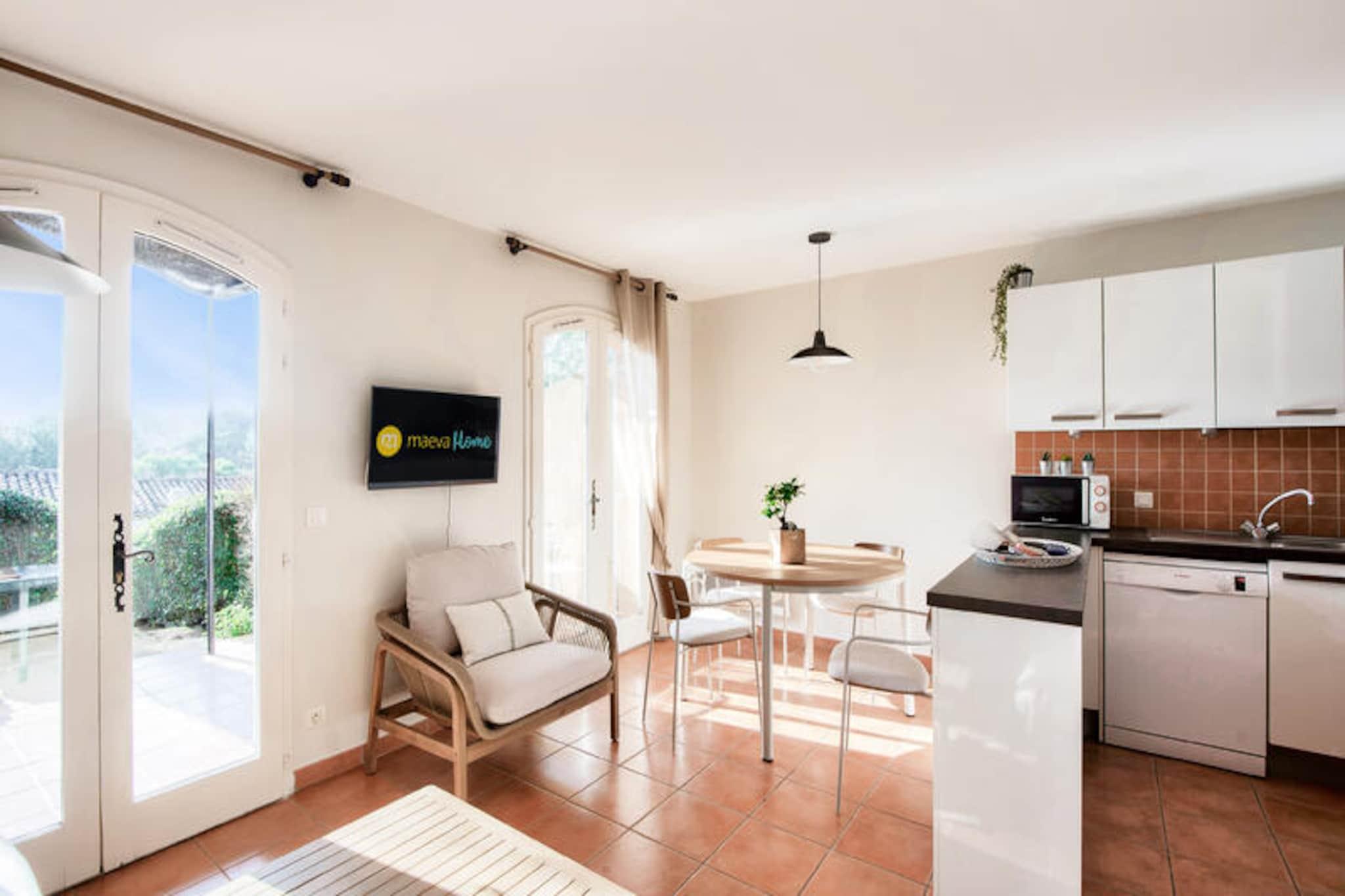 Midt i Provences bølgende bakker, hvor Alpilles og Luberon-bjergene omfavner horisonten, ligger den fortryllende landsby Pont Royal. Dette idylliske tilflugtssted inviterer dig til at fordybe dig i det sydlige Frankrigs charme med dets solbeskinnede landskaber, duftende lavendelmarker og den beroligende summen af ??cikader. Her sætter livet farten ned og tilbyder en perfekt blanding af afslapning og eventyr under den provencalske sol. Uanset om du nipper til kaffe på en hyggelig café på den centrale plads eller udforsker de brostensbelagte gader med kunsthåndværkerbutikker, lover Pont Royal en autentisk og uforglemmelig oplevelse. \n\nDin feriebolig er et smukt renoveret hus i stueetagen, der kombinerer moderne komfort med provencalsk elegance. Huset har en rummelig stue, et åbent køkken og tre hyggelige soveværelser, herunder et soveværelse med dobbeltseng og værelser med enkelt- og køjesenge, hvilket gør det ideelt for familier eller grupper på op til otte personer. De to veludstyrede badeværelser, det ene med fritstående badekar og det andet med bruser, sikrer bekvemmelighed for alle gæster. Gå udenfor til din private overdækkede terrasse og have, hvor du kan slappe af med udsigt over den maleriske landsby. Yderligere faciliteter såsom vaskemaskine, Wi-Fi og udendørs parkering forbedrer dit ophold, mens maeva super Home-oplevelsen sikrer, at sengene er redt ved ankomst, og slutrengøring er inkluderet. \n\nBare få skridt væk vækkes landsbytorvet til live med ugentlige markeder, der fremviser provencalske delikatesser og kunsthåndværk, samt sommerkoncerter og shows. Til familiesjov tilbyder det nærliggende vandland Pierre & Vacances Village en bølgebassin, doven flod og spændende rutsjebaner. Sportsentusiaster vil sætte pris på 18-hullers golfbanen og ridecentret, mens børnene kan nyde børneklubben med daglige aktiviteter. Uden for landsbyen kan du opdage Provences skatte, fra de historiske gader i Avignon til de dramatiske calanques i Cassis, alt sammen inden for en times kørsel. \n\nUanset om du søger ro, eventyr eller en smag af provencalsk kultur, er dette charmerende tilflugtssted i Pont Royal din port til en uforglemmelig ferie.