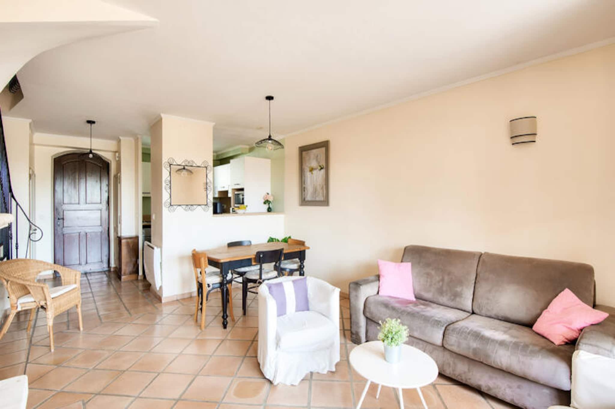 I hjertet af Provence, hvor Alpilles- og Luberon-bjergene omfavner det solbeskinnede landskab, ligger den charmerende landsby Pont Royal. Dette idylliske tilflugtssted inviterer dig til at fordybe dig i essensen af ??det provencalske liv med brostensbelagte gader, pulserende markeder og duften af ??lavendel, der fylder luften. Uanset om du søger ro eller eventyr, tilbyder Pont Royal den perfekte balance mellem afslapning og aktivitet i maleriske omgivelser. \n\nDin ferielejlighed er en rummelig lejlighed på 66 m², omhyggeligt designet til komfort og stil. Den ligger på første sal og har to soveværelser, to badeværelser og et åbent køkken, der flyder problemfrit ind i opholds- og spisestuen. Den sydvendte overdækkede terrasse tilbyder en fantastisk udsigt over landsbyen, hvilket gør den til det ideelle sted til morgenkaffe eller aftenvin. Med moderne bekvemmeligheder såsom pejs, elektriske håndklædevarmere og indendørs parkering er hver eneste detalje tænkt over for at sikre et stressfrit ophold. \n\nPont Royal er et centrum for aktivitet og fritid. Nyd adgang til det berømte vandland Pierre & Vacances med bølgebassiner, doven floder og spændende rutsjebaner. For golfentusiaster tilbyder den 18-hullers bane en udfordrende, men smuk oplevelse. Landsbytorvet vækkes til live med ugentlige markeder, koncerter og lokalt håndværk, hvilket skaber en livlig atmosfære. Familier vil sætte pris på børneklubben, ridecentret og sportsfaciliteterne, der sikrer underholdning for alle aldre. \n\nPont Royal ligger perfekt mellem Avignon og Middelhavskysten og er en port til Provences skatte. Udforsk Luberons fortryllende landsbyer, de dramatiske calanques i Cassis eller den kulturelle rigdom i Aix-en-Provence. Uanset om du nyder provencalsk køkken, vandrer gennem lavendelmarker eller blot soler dig, lover denne destination uforglemmelige minder under den provencalske himmel.
