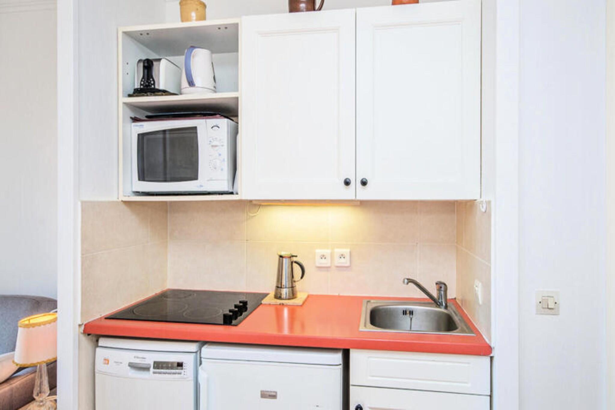 Denne komfortable studiolejlighed, ideel til op til fire gæster, omfatter en stue, et kabineområde med sovepladser og et badeværelse. Kæledyr er velkomne mod tillægsgebyr, og sengelinned leveres med mulighed for daglige skift af sengetøj mod ekstra omkostninger. Slutrengøring er obligatorisk, med mulighed for daglig rengøring mod et tillægsgebyr. Der kræves et depositum på 400 EURO ved ankomst. Lejligheden er bekvemt placeret i nærheden af ??lokale attraktioner, hvilket gør det nemt at nyde det omkringliggende område. Besøgende kan få adgang til forskellige faciliteter på stedet, herunder flere pools, der er åbne i sommermånederne, og en række aktiviteter tilgængelige mod et ekstra gebyr. Området er godt betjent af nærliggende caféer, markeder og restauranter, perfekt til at slappe af eller spise ude. Lejligheden har et fuldt udstyret køkken, så gæsterne kan tilberede deres måltider. Det omfatter også en privat terrasse til udendørs afslapning og en parkeringsplads for bekvemmelighed.