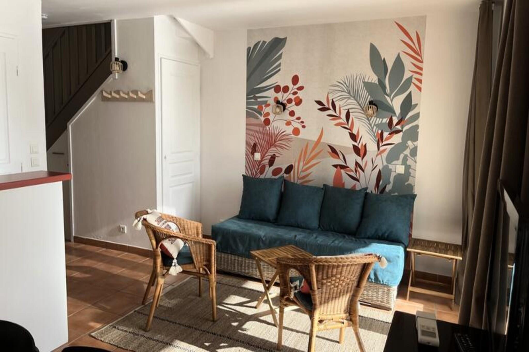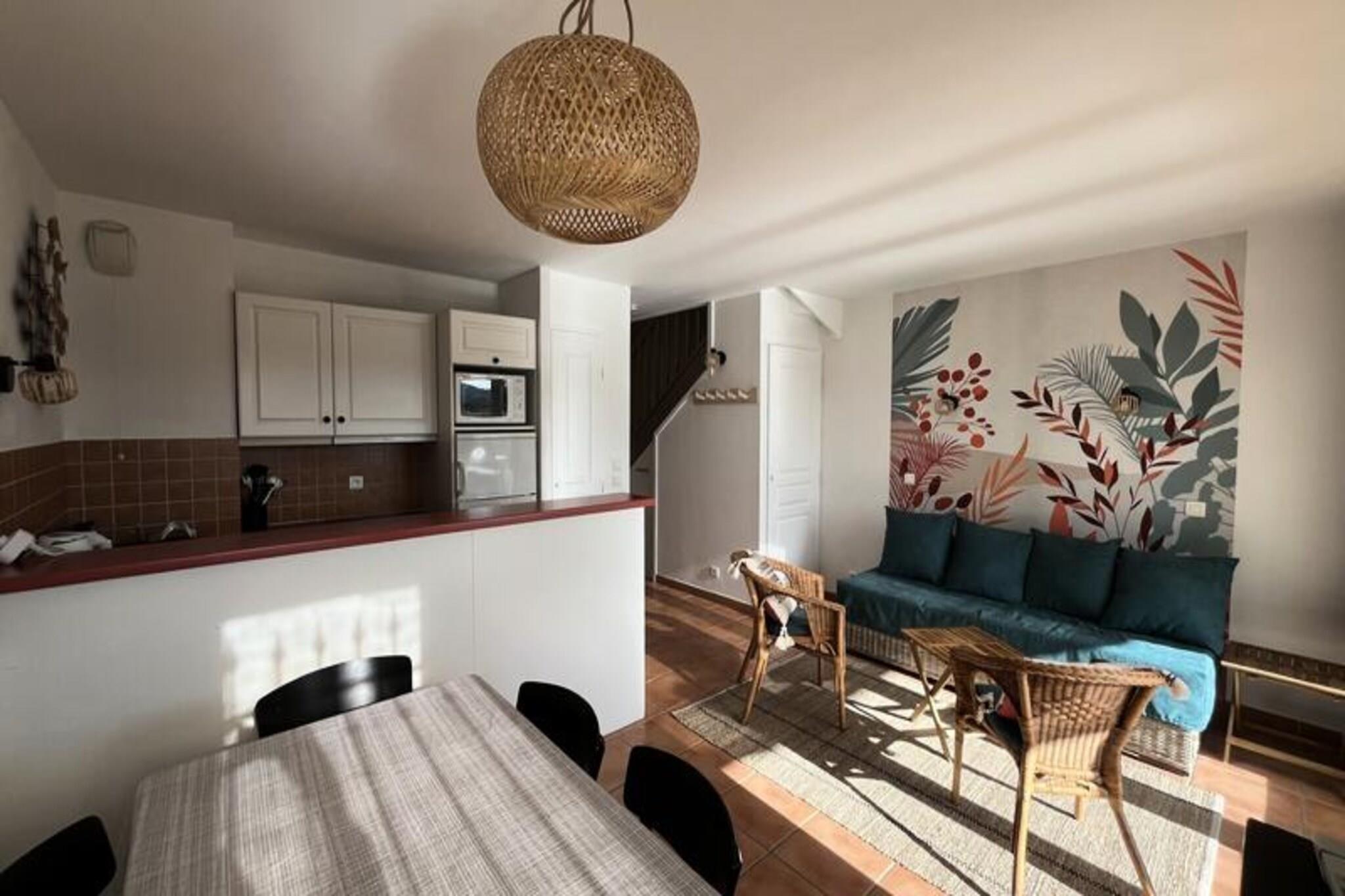 Denne to-etagers lejlighed med aircondition tilbyder en bekvem beliggenhed i hjertet af en fodgængerlandsby, ideel for familier eller grupper på op til seks gæster (kæledyr tilladt mod ekstra gebyr). Selve landsbyen byder på butikker, restauranter og et centralt torv. Gæsterne har adgang til Pierre & Vacances-vandområdet, der byder på rutsjebaner, en kunstig flod og et bølgebassin. Andre aktiviteter i området omfatter basketball, beachvolley, ridning og en 18-hullers golfbane (alle ekstra gebyrer kan være gældende). Den 51 m² store duplex-lejlighed har en stue med en sovesofa og en udtræksseng, et køkken, en terrasse og en parkeringsplads. Det sover seks gæster i tre soveværelser: et med dobbeltseng, et andet med to enkeltsenge og et tredje med køjesenge. De to badeværelser har hver en elektrisk håndklædetørrer og opbevaringsplads. Lejen inkluderer væsentlige tjenester som sengetøj, et vedligeholdelsessæt og velkomstprodukter. Yderligere tjenester, såsom daglige skift af sengetøj, håndklæder og daglig rengøring, er tilgængelige mod et ekstra gebyr. Slutrengøring er obligatorisk og kan forudbetales eller betales ved ankomsten. Bemærk venligst, at billeder ikke er specifikke for enheden, og en specifik opgave kan ikke garanteres.