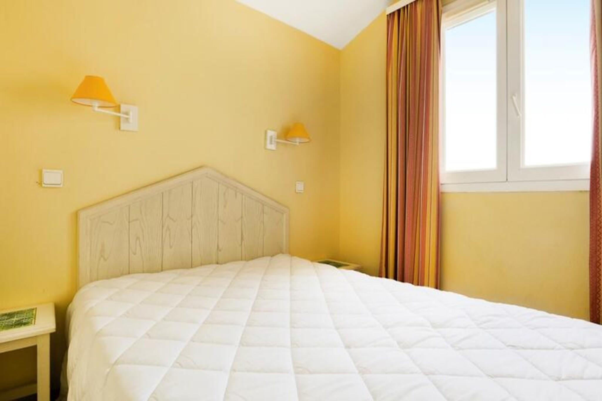 La Résidence Pont Royal en Provence - maeva Home está situada en Bouches-du-Rhône, entre Aix-en-Provence y Aviñón. Es un destino ideal para recargar pilas y disfrutar de las múltiples actividades. La residencia está situada en el corazón del pueblo peatonal, en un área de 180 ha organizada alrededor de una plaza central compuesta por tiendas y restaurantes. Podrás disfrutar de multitud de actividades: baloncesto, vóley playa, equitación, zona acuática... Los alojamientos de Maeva Home son alquileres totalmente equipados para personas ubicadas dentro de Pierre & Vacaciones. Se beneficiará de las ventajas de un Pierre & Vacaciones y servicios a la carta según sus deseos. Los servicios esenciales están incluidos: * Ropa de cama *Kit de mantenimiento * Productos de bienvenida * Espacio acuático del Valle de los Loisirs que ofrece toboganes, rafting en ríos artificiales, piscina de olas climatizada... Para las villas se incluyen la piscina privada, la terraza equipada con muebles de jardín y el garaje. Entretenimiento y ocio (cargo adicional): * Entretenimiento para toda la familia * Clubes infantiles de 3 meses a 17 años (durante el periodo de apertura del pueblo) * Campo de golf de 18 hoyos Tenga en cuenta: los clientes de Maeva tienen acceso a las áreas acuáticas P&V del pueblo. Su alquiler vacacional incluye: 1 salón, 1 zona de cabaña, 1 dormitorio, 1 zona de cocina, 2 baños/1 aseo, 1 aseo independiente y una plaza de aparcamiento. Superficie: 40 m². Ubicación: 2do piso del edificio Etang. Composición del salón: 2 sofás cama, 1 de ellos con 1 cama nido (3 camas de las cuales 1 cama recomendada para un niño), 1 zona de camarote con 2 literas individuales (2 camas). Para la comida: una mesa con 6 sillas y 1 taburete. Cocina abierta al salón. Composición de las habitaciones: Dormitorio 1: 1 cama doble Composición de los baños: Baño 1: Ducha Baño 2: Bañera / 1WC 1 aseo independiente. Se admiten mascotas - Además, consultar precios directamente con la residencia. Ropa de cama - Incluida - el contenido puede variar según la residencia: sábana bajera, sábana o funda nórdica y funda de almohada. Posibilidad de cambio diario de ropa de cama disponible con coste adicional, consultar precios en recepción. Toallas - Cargo extra. Posibilidad de cambio diario de ropa de cama disponible con coste adicional, consultar precios en recepción. Limpieza final de estancia - Servicio de limpieza obligatorio a pagar al realizar el check-in o a la llegada. Limpieza diaria - Disponible con coste adicional, consultar tarifas en recepción. Estacionamiento - Para alojamientos que no cuentan con estacionamiento privado, es posible estacionar en el Estacionamiento de Visitas. Tasa turística (cargo adicional) - El pago de la tasa turística se realiza a través de su espacio personal: https://mon-compte.maeva.com, el importe varía según la ubicación. Gratis para menores de 18 años. Se admiten mascotas - extra Depósito (en euros) - 500 Limpieza final de estancia - Servicio de limpieza obligatorio a pagar al realizar el check-in o a la llegada.