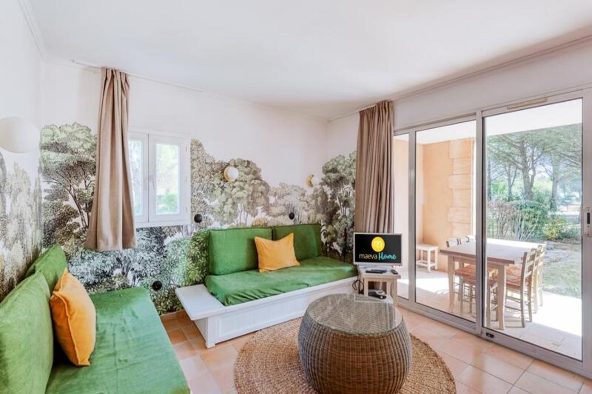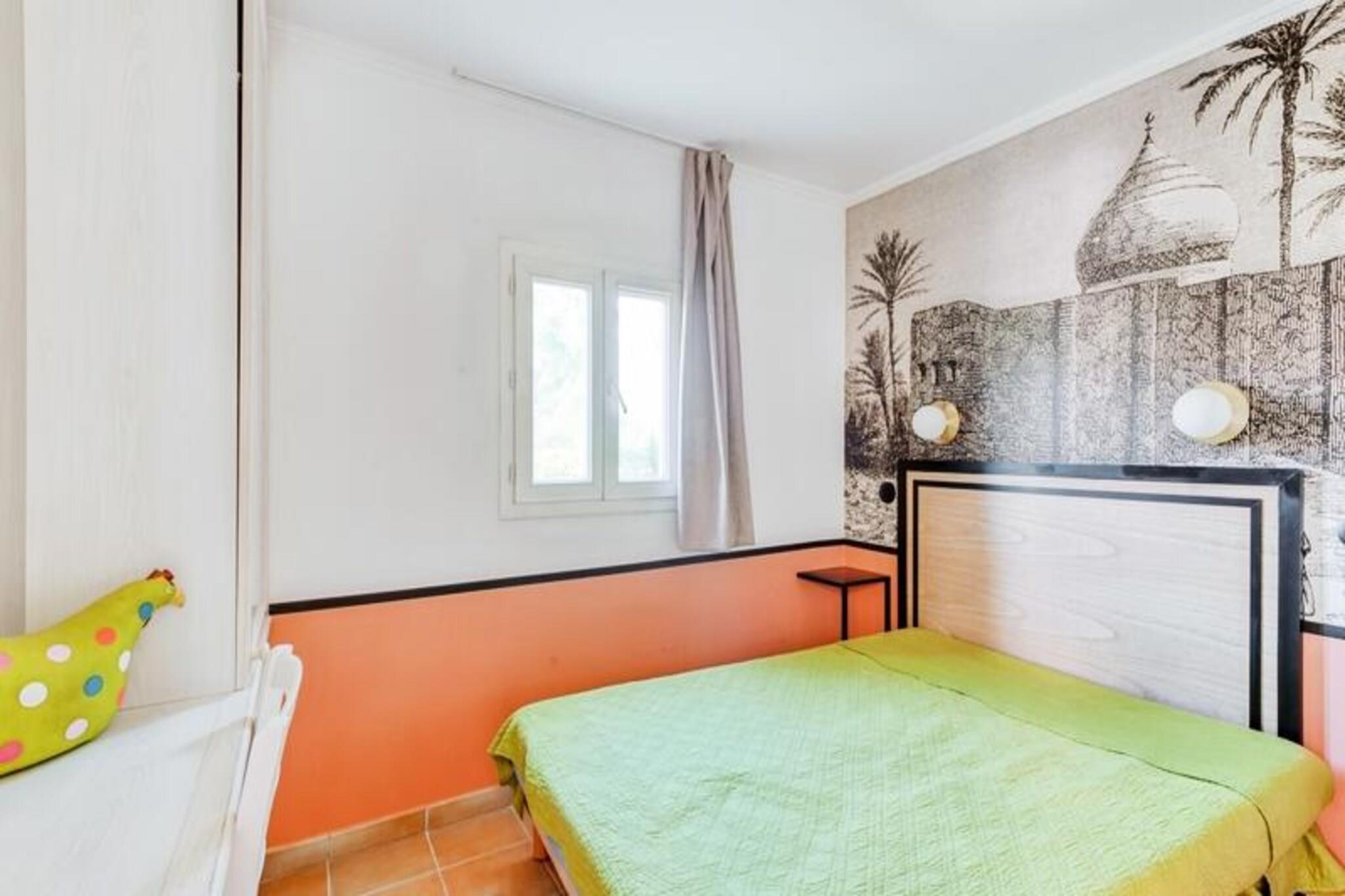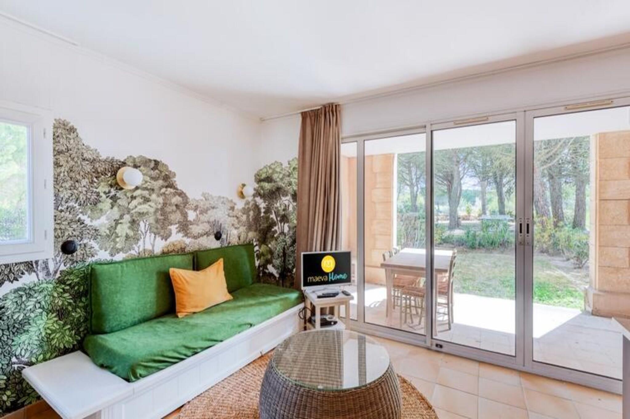 Denne rummelige ferielejlighed er ideel til familier eller grupper, komfortabelt med plads til op til 6 gæster. Stuen har to sovesofaer, den ene med en udtræksseng, hvilket giver rigelig soveplads. Et privat kabineområde med to enkeltkøjesenge tilbyder ekstra privatliv for børn. Det største soveværelse er indrettet med en dobbeltseng, og kæledyr er tilladt mod et tillægsgebyr. Væsentlige tjenester, herunder sengelinned, leveres, med valgfrit ekstraudstyr som daglige skift af sengetøj og håndklæder til rådighed mod et gebyr. Lejligheden ligger i en fredelig fodgængerlandsby og tilbyder nem adgang til forskellige fritidsaktiviteter. Gæsterne kan nyde landsbyens centrale plads med butikker, restauranter og caféer. For dem, der søger udendørs eventyr, er den nærliggende 18-hullers golfbane, swimmingpools og sportsfaciliteter såsom basketball og beachvolley perfekte til aktive ferier. Vandlandet Vallée des Loisirs, med rutschebaner, en kunstig flod og et opvarmet bølgebassin, ligger også i kort afstand. Lejligheden har et fuldt udstyret køkken, der er åbent til opholdsstuen, hvilket gør madlavning til en leg. To badeværelser giver bekvemmelighed, det ene med badekar og det andet med bruser og toilet. En privat terrasse tilbyder udendørs afslapning, mens en obligatorisk slutrengøring sikrer, at lejligheden er klar til din ankomst. For ekstra bekvemmelighed er en besøgende parkeringsplads tilgængelig for gæster uden en udpeget parkeringsplads.