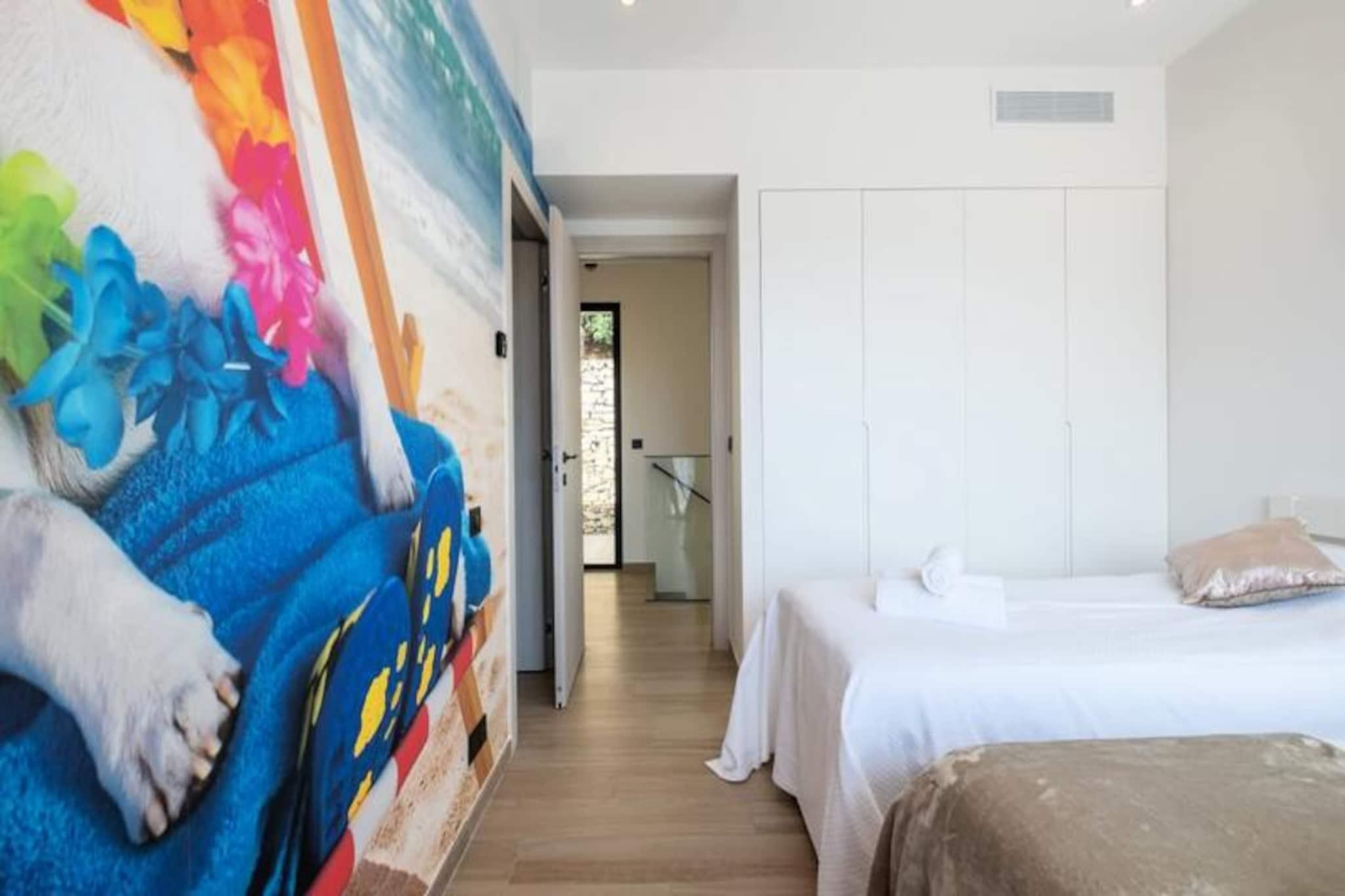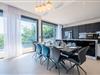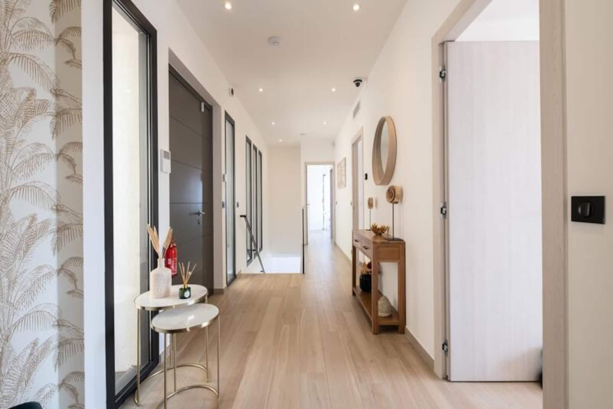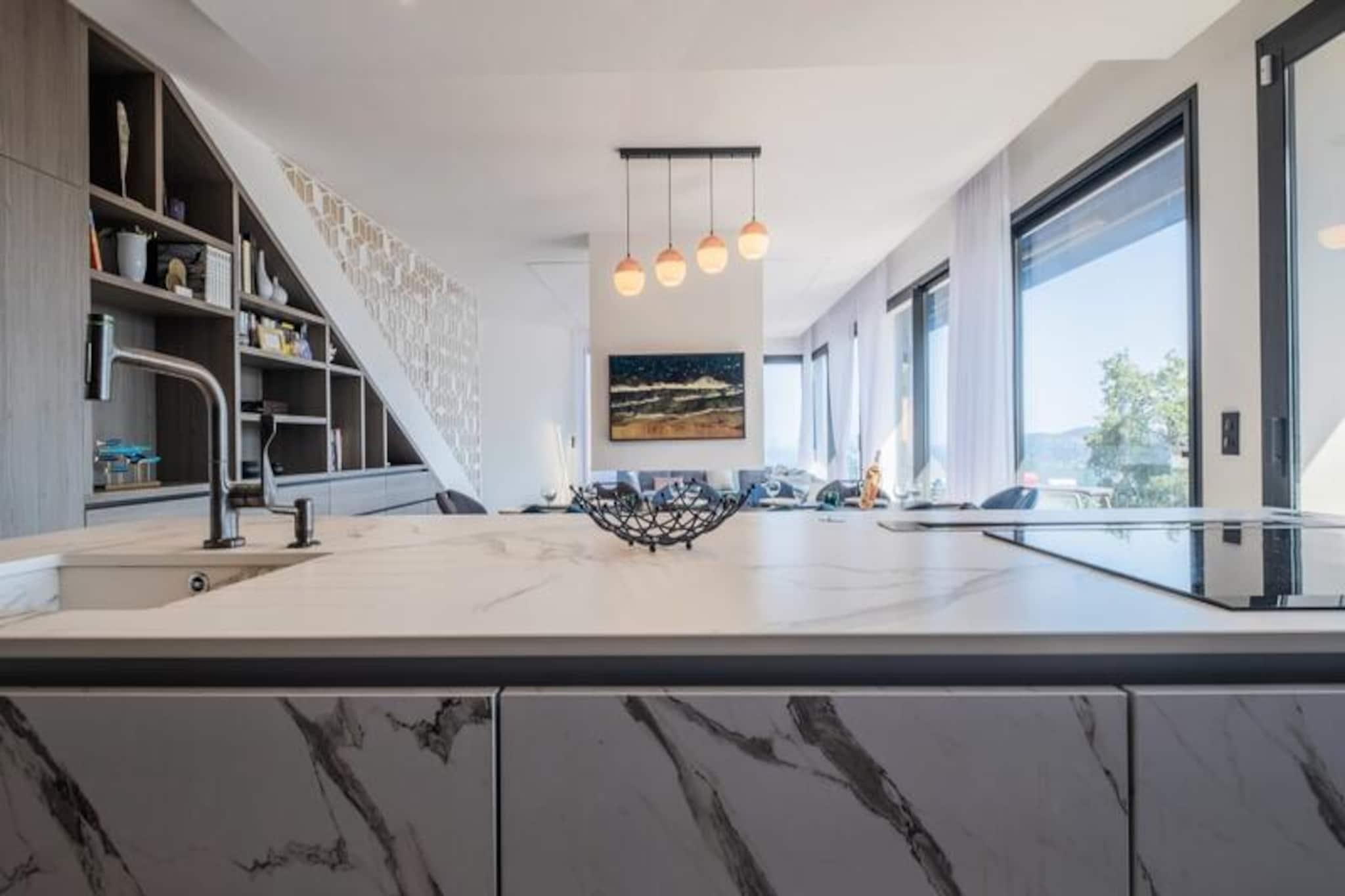 Højt over Mandelieus fredfyldte bakker tilbyder dette udsøgte feriehus et privat tilflugtssted, hvor ro møder en betagende udsigt over Middelhavet. Forestil dig morgener med at nippe til kaffe på den solbeskinnede terrasse, eftermiddage med afslapning ved den opvarmede pool og aftener med solnedgangen, der maler himlen i nuancer af guld og karmosinrød. Denne ejendom er et paradis for dem, der søger fred og luksus, kun få minutter fra de pulserende strande og attraktioner på den franske riviera. \n\nTræd indenfor og oplev et rummeligt og elegant designet interiør, der problemfrit blander komfort og sofistikering. Stueetagen har en lys og luftig opholdsstue med luksuriøse siddepladser til op til 12 gæster, et smart-tv til underholdning og et fuldt udstyret åbent køkken med en central køkkenø, perfekt til at dele måltider og minder. Ovenpå er soveværelserne et fristed for afslapning, der alle er omhyggeligt indrettet med eksklusive møbler, smart-tv'er og eget badeværelse. Master-suiten med sin kingsize-seng og luksuriøse badeværelse er en sand forkælelse. \n\nUdenfor er haven på bjergsiden en privat oase med en opvarmet pool, der er tilgængelig fra midten af ??april til midten af ??oktober, omgivet af liggestole og skyggefulde siddeområder. Uanset om du nyder solen eller panoramaudsigten over havet, føles hvert øjeblik som en drøm. Ejendommen tilbyder også parkering til op til fire biler, hvilket sikrer dit ophold bekvemt. \n\nBeliggende kun 10 minutter fra Mandelieus strande og inden for rækkevidde af Cannes, Antibes og Monaco, er dette hjem perfekt placeret til at udforske Rivieras fineste attraktioner. Fra fine restauranter til sandstrande er alt hvad du behøver inden for en kort køretur. Vælg dette fantastiske tilflugtssted til din næste ferie og oplev magien ved Côte d'Azur.