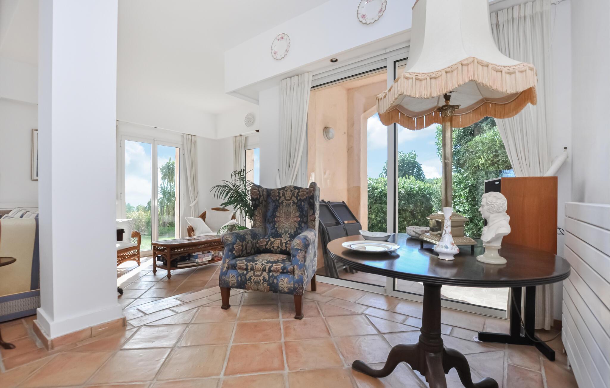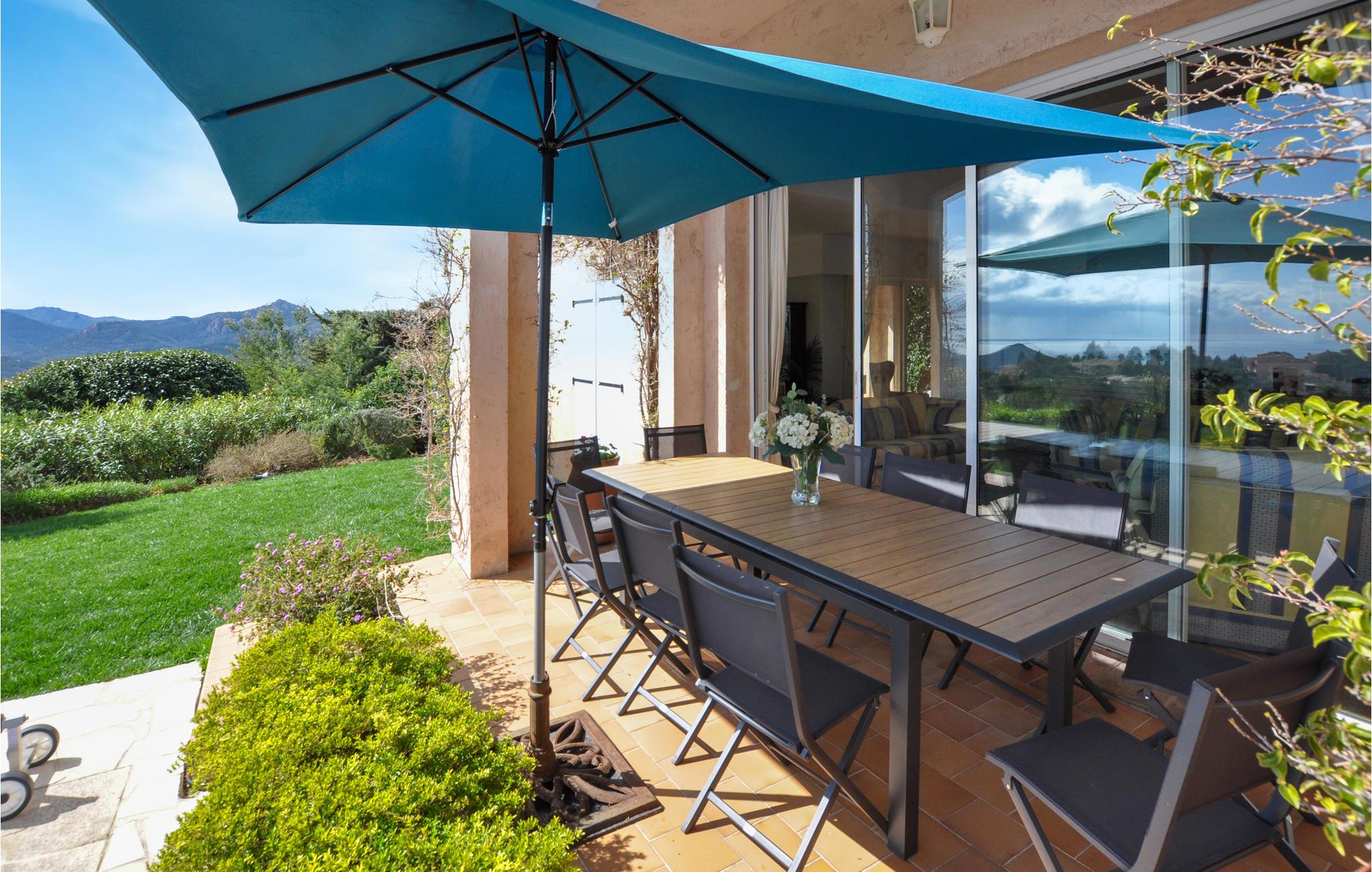 På kanten af ??din private udendørs pool omgivet af et stort grønt område, kan du bade i solen på liggestolene og nyde dine måltider komfortabelt på den overdækkede terrasse.
