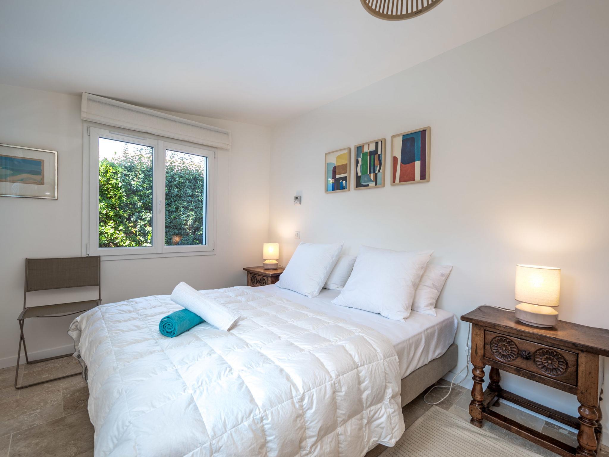 4-room villa 100 m2. Spacious and bright, fully renovated in 2023, comfortable and beautiful furnishings: living/dining room with TV (flat screen), air conditioning. Exit to the swimming pool. 1 room with 2 beds (140 cm, length 190 cm), shower and air conditioning. 1 room with 1 french bed (160 cm, length 200 cm), shower/WC and air conditioning. Exit to the garden. 1 room with 1 french bed (160 cm, length 200 cm), shower/WC and air conditioning. Open kitchen (4 hot plates, oven, dishwasher, toaster, microwave, freezer, electric coffee machine, Capsules for coffee machine (Nespresso) extra). Sep. WC. Facilities: washing machine, iron, baby cot for up to 3 year olds. Internet (WiFi, free). Parking (3 cars). Please note: non-smoking house. Smoke alarm. Offer by a private individual according to Art. 155, IV of CGI. 06079003633DP