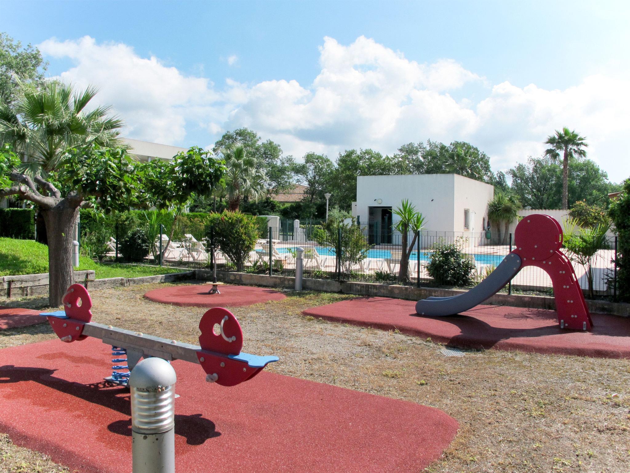 Residence "Carré Marine", 3 storeys. 3 houses in the residence. 40 apartments in the residence. 2 km from the centre of Mandelieu, 7.5 km from the centre of Cannes, 40 km from the centre of Nice, 1.5 km from the sea, 20 m from the river. For shared use: property 12'000 m2 (fenced) with lawn and trees, swimming pool fenced (15 x 8 m, depth 120 - 210 cm, seasonal availability: 05.Apr. - 31.Oct. pool opening hours: 09:00-20:00). WC in the pool area, children's pool, outdoor shower, table tennis, boccia, children's playground. In the house: reception, WiFi, lift, washing machine, tumble dryer (for shared use, extra). Supermarket 2.4 km, sandy beach 1.5 km. Golf course (18 hole) 2.6 km. Please note: private mooring (extra) on request. The photo is just an example. The holiday properties may differ in living space, floorplan, equipment and furnishing.