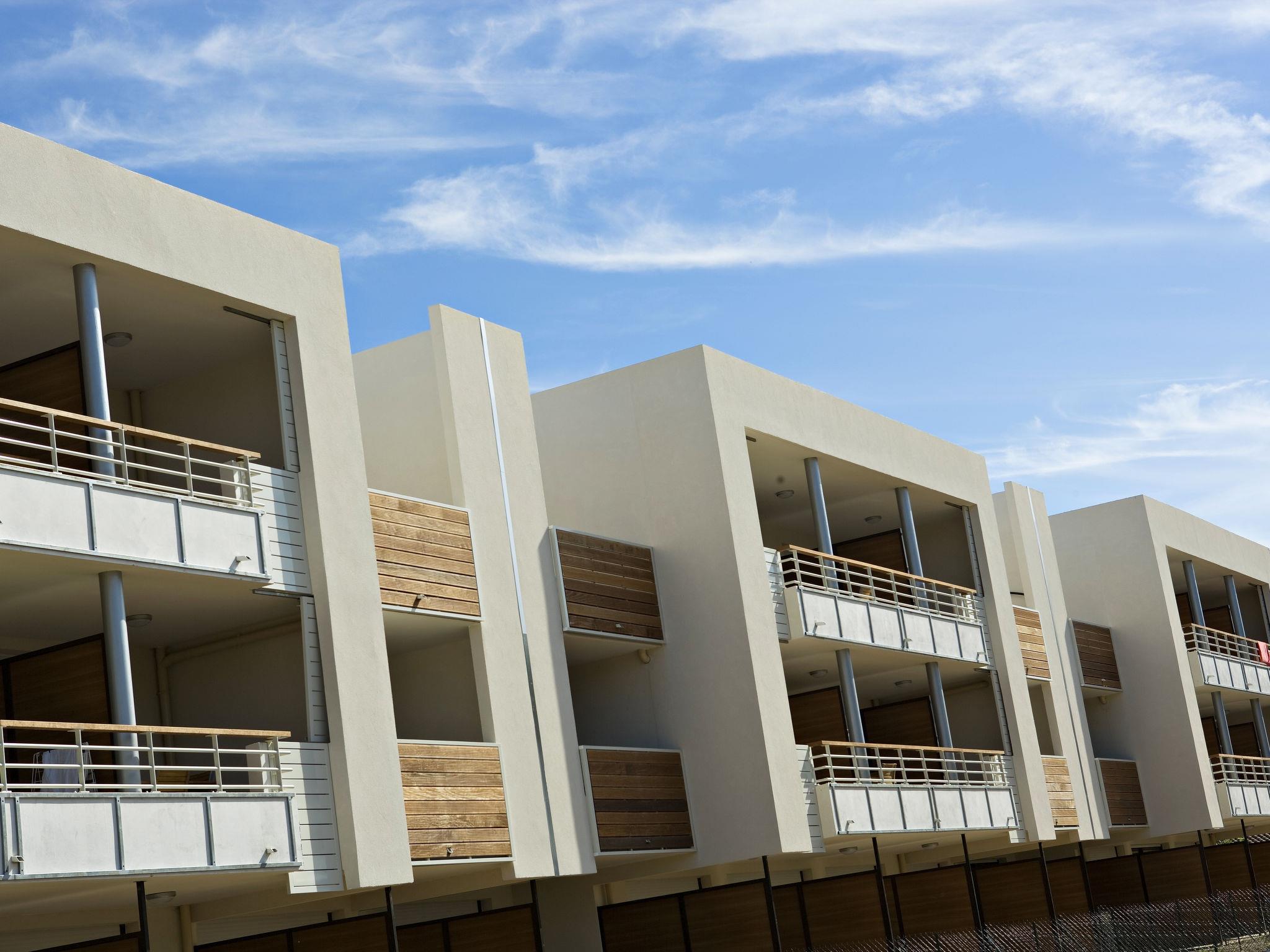 "Carré Marine", 2-room apartment 35 m2. Bright, modern furnishings: living/sleeping room with 1 pull-out bed, dining table and TV. 1 room with 1 french bed (160 cm). Open kitchen (dishwasher, 4 ceramic glass hob hotplates, electric coffee machine, combination microwave). Bath/WC. Heating, air-conditioning. Balcony or terrace roofed. Terrace furniture, balcony furniture. Facilities: iron. Internet (WiFi, free). Parking. Please note: maximum 1 pet/ dog allowed. Smoke alarm, fire extinguisher.