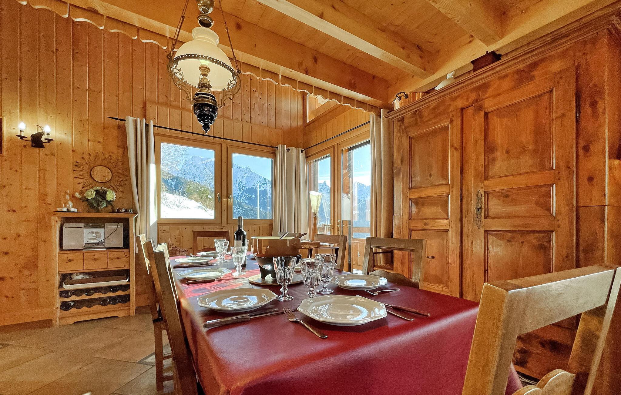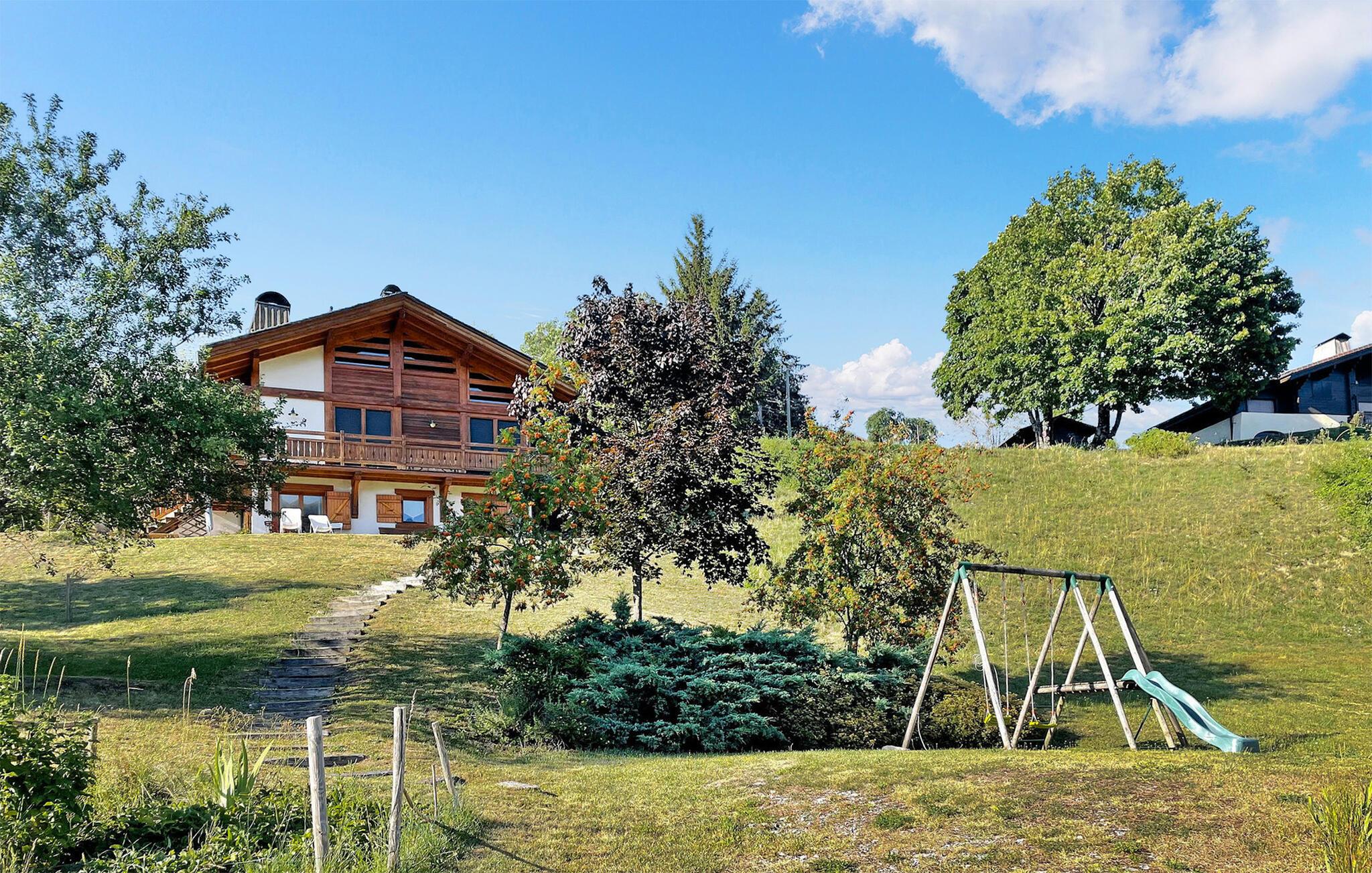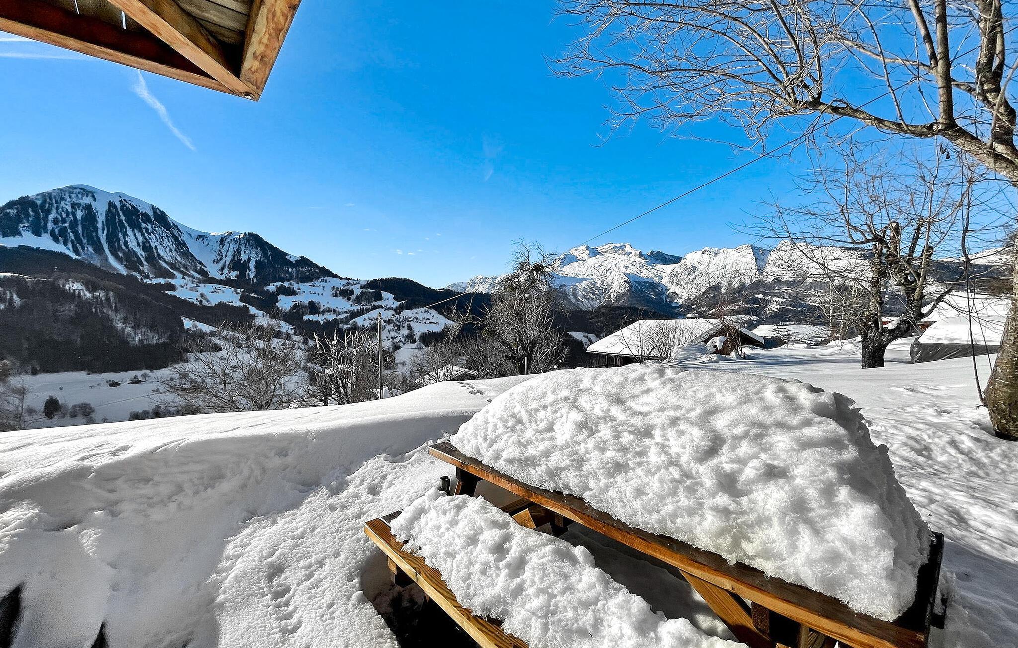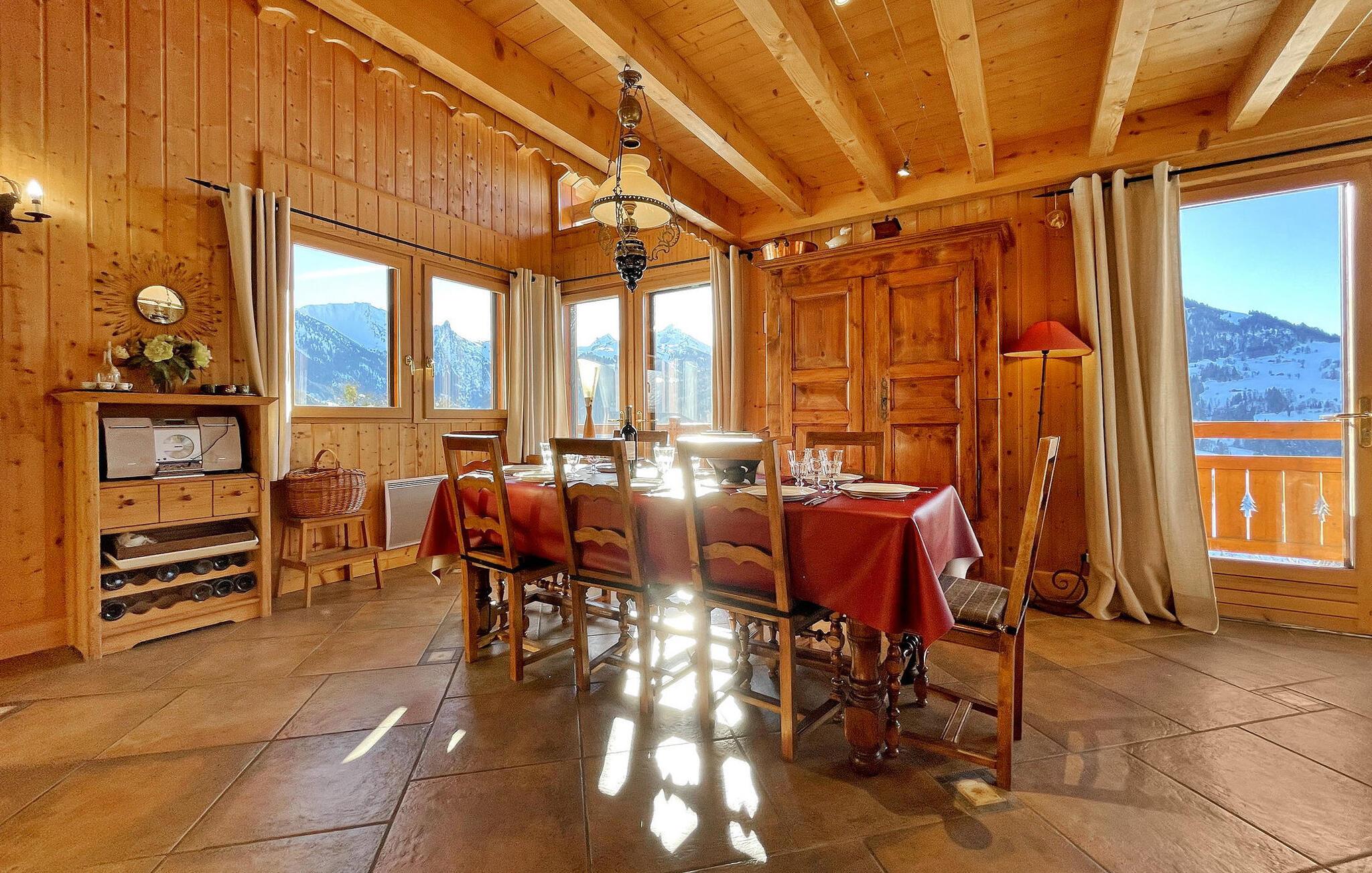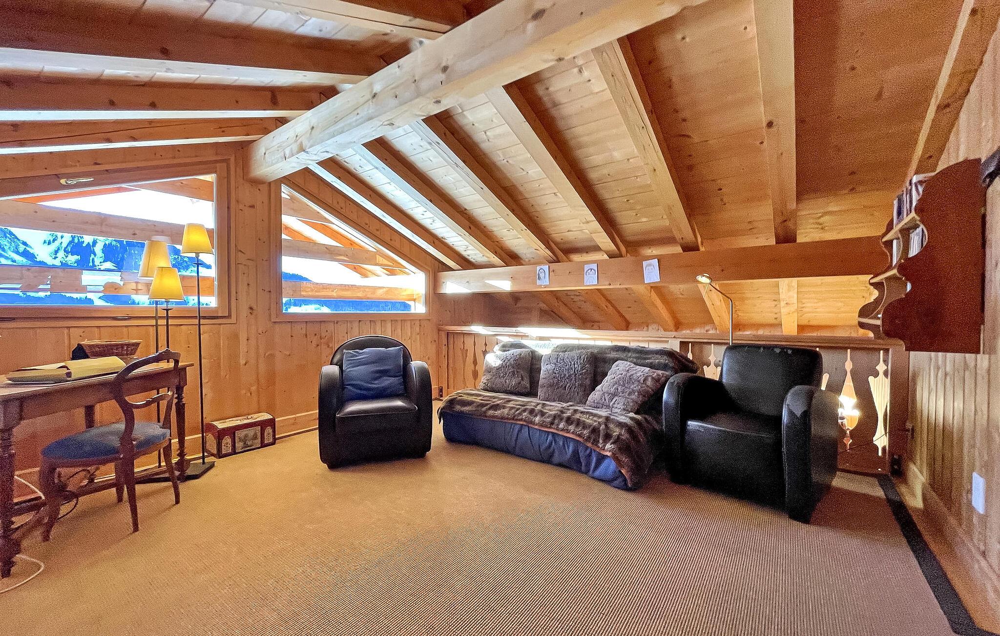 Denne hytte i Manigod, beliggende nær det berømte skisportssted La Clusaz i de franske alper, tilbyder en fantastisk udsigt over Aravis-bjergene. Tv-stuen på mezzaninen strækker sig over flere niveauer og er perfekt til afslapning. Opholdsstuen, der har en solrig balkon, har spiseplads og en pejsudsmykket stue med komfortable siddepladser. Et fuldt udstyret køkken fører ud til en overdækket terrasse med fortryllende udsigt over bjergene. Garagen henvender sig til fritidsaktiviteter med bordtennis og opbevaring af ski- og sportsudstyr. Denne chalet har også et andet split-niveau med soveværelser, der er egnet til børn. På tredje split-plan finder du yderligere soveværelser og et vaskerum. Udendørs kan hytten prale af en ekspansiv jord med en gynge, overdækket terrasse og solrig balkon ud mod de majestætiske Aravis-bjerge. Hytten er beliggende i højderne af Manigod, i hjertet af Aravis-bjergene, 5 km fra Col the Croix Fry og skisportsstederne Manigod, La Croix Fry og Merdassier. Adgang til skisportsstedet La Clusaz fra La Croix Fry. Hytten byder på en fantastisk udsigt over bjergene: fra Mont Charvin til La Tournette og Sullens-bjergene. Beauregard er 5 km (vandreture om sommeren og langrend om vinteren). Beauregard byder på store muligheder for dejlige vandreture med fantastisk udsigt over bjergene ved Mont Blanc og de omkringliggende bjerge og dale. I landsbyen Manigod, 1,5 km fra hytten, finder du et bageri og en købmand. Den offentlige swimmingpool i Merdassier er gratis om sommeren på Col de Merdassier. Udenfor offentlig swimmingpool sommer-vinter i La Clusaz. Bemærk venligst: - Under vinterbesøg er sneudstyr til din bil afgørende. - Turistskatten betales på stedet og bidrager til lokalsamfundet.