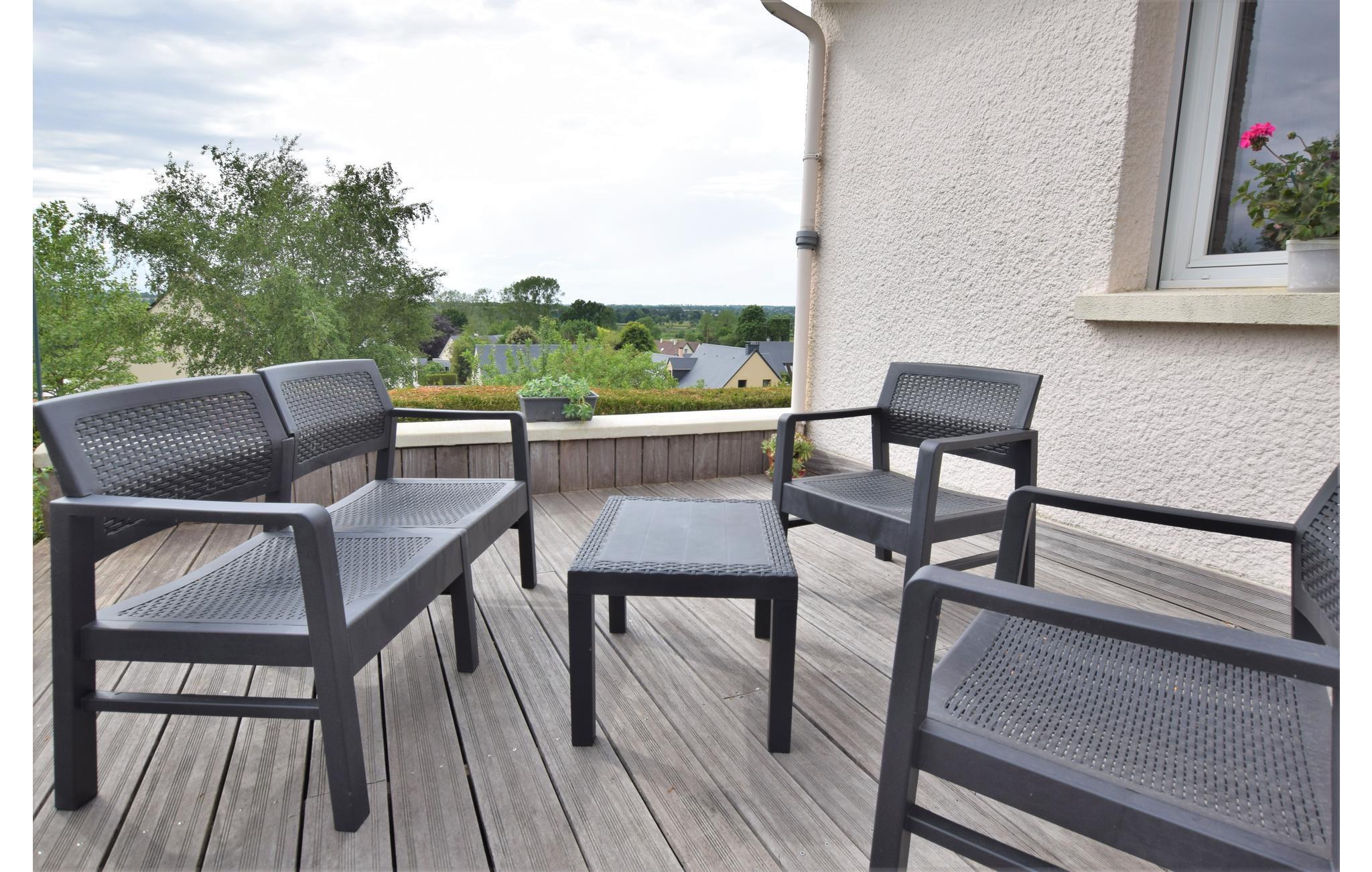 Indenfor kan I glæde jer til lyse rum og adgangen til en stor terrasse - som er ideel til familier med børn og dyr. Fra soveværelserne er der en smuk udsigt til Mont-Saint-Michel.
