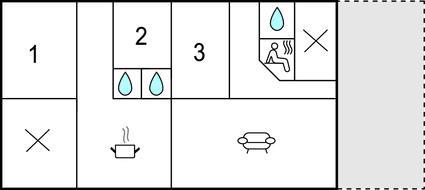 Badeværelse 4m2 (nr. 2) - Varmt og koldt vand. Bruser