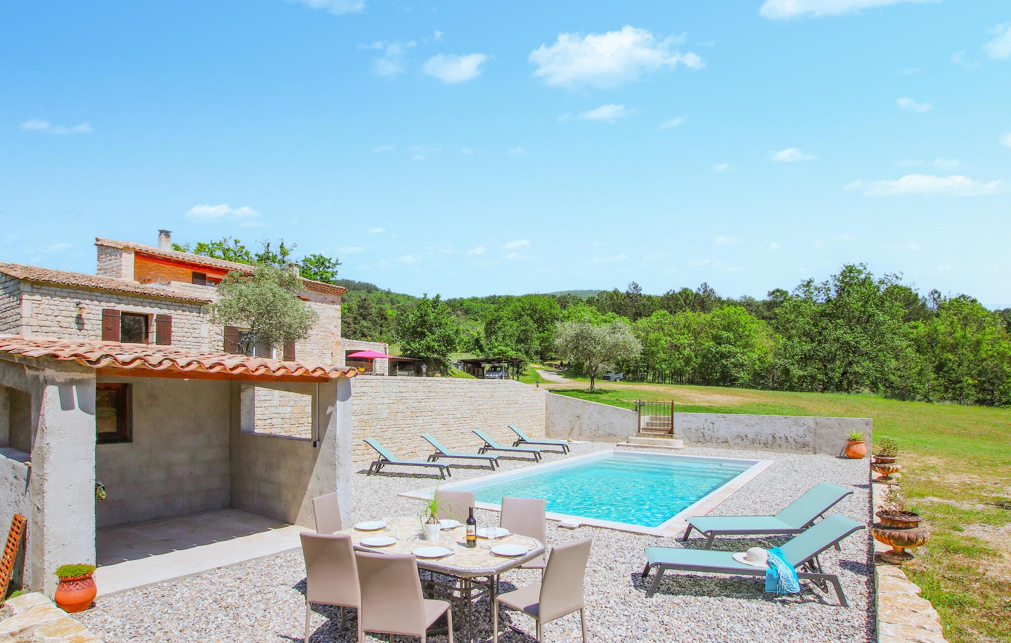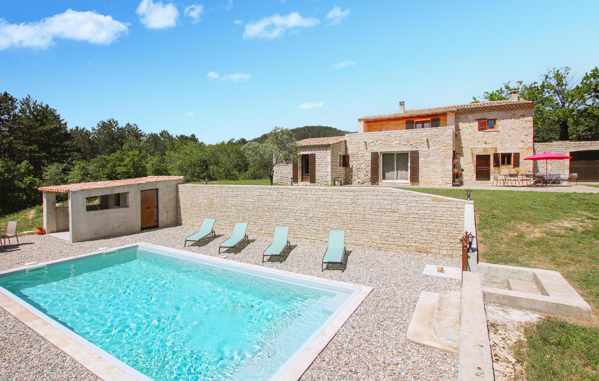 Se frem til årets ferie i Drome Provencale i denne rummelige perle af et stenhus med pool.