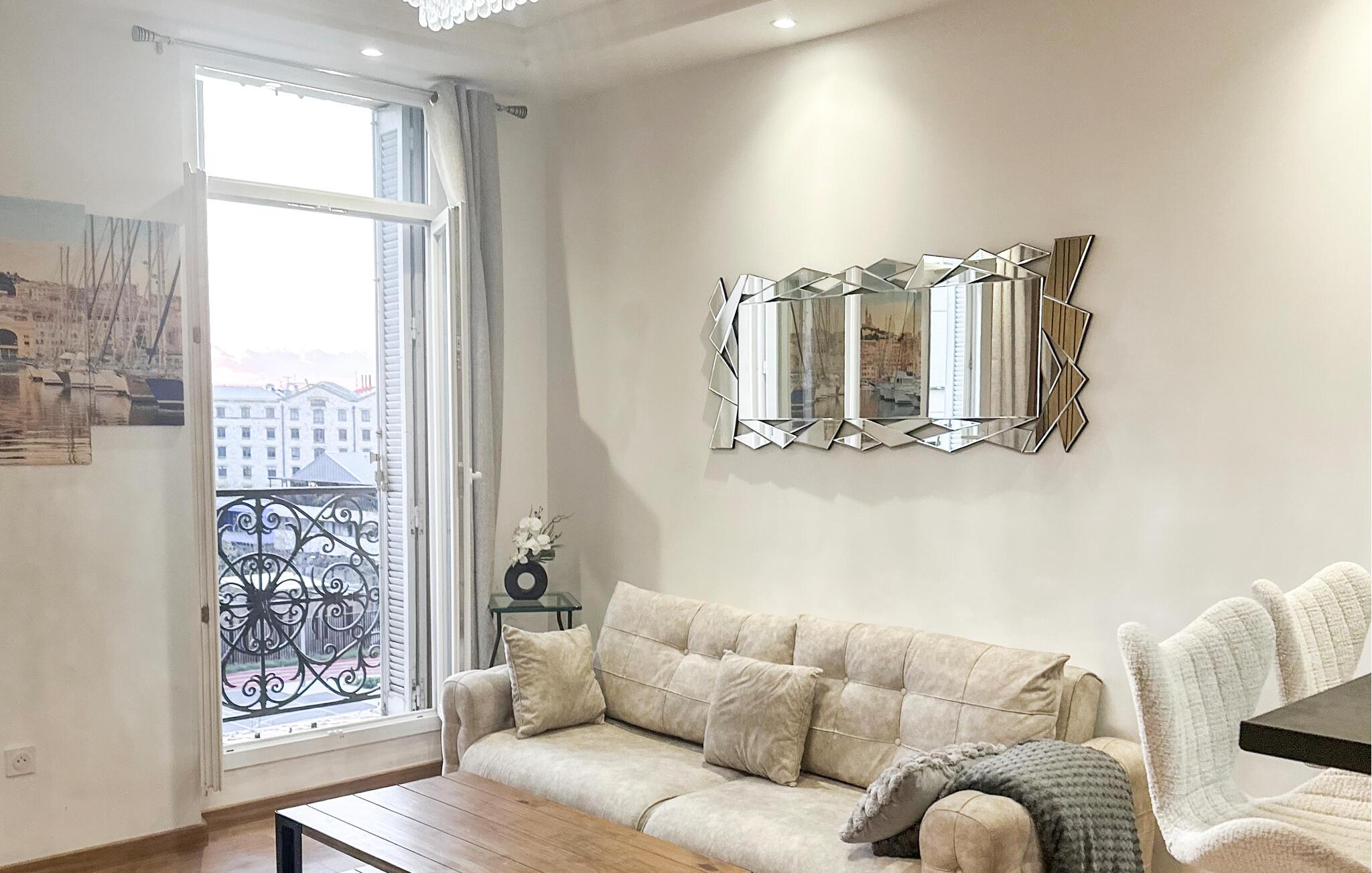 Tilbring hyggelige dage i denne stilfulde bylejlighed og oplev livet nær havnen.