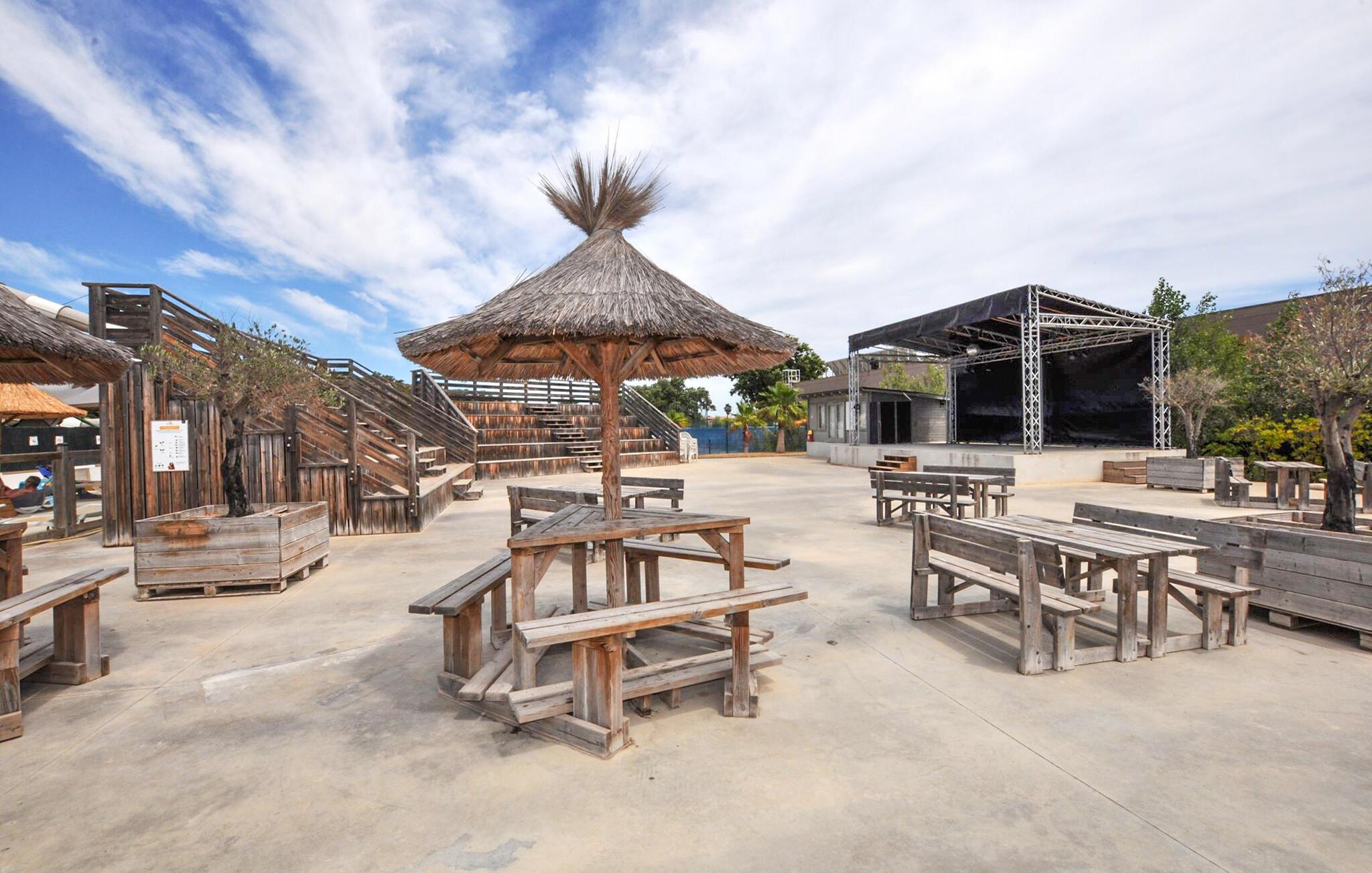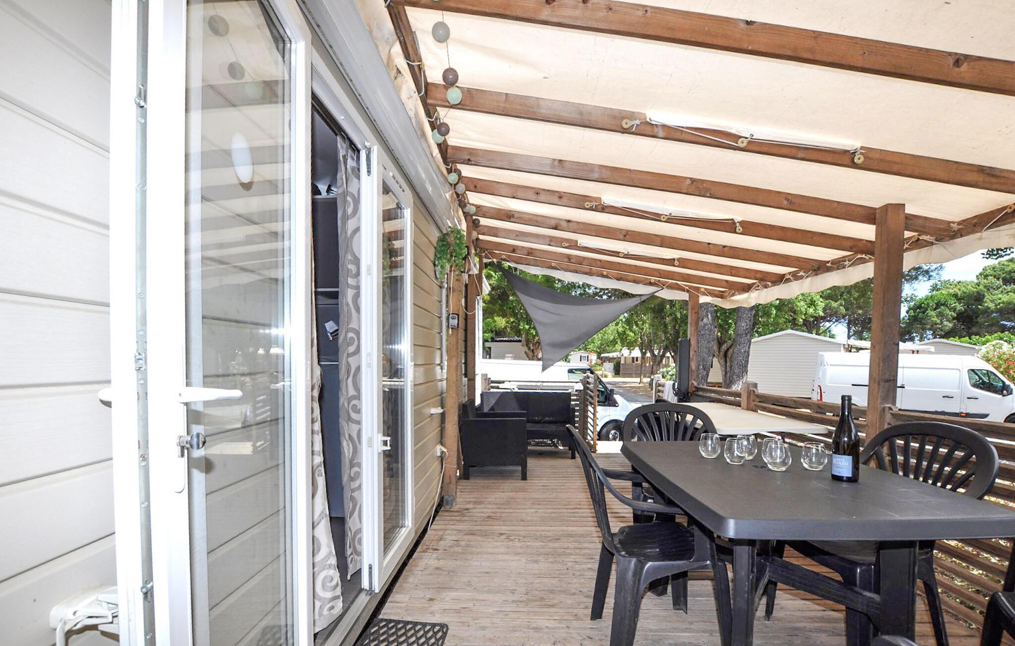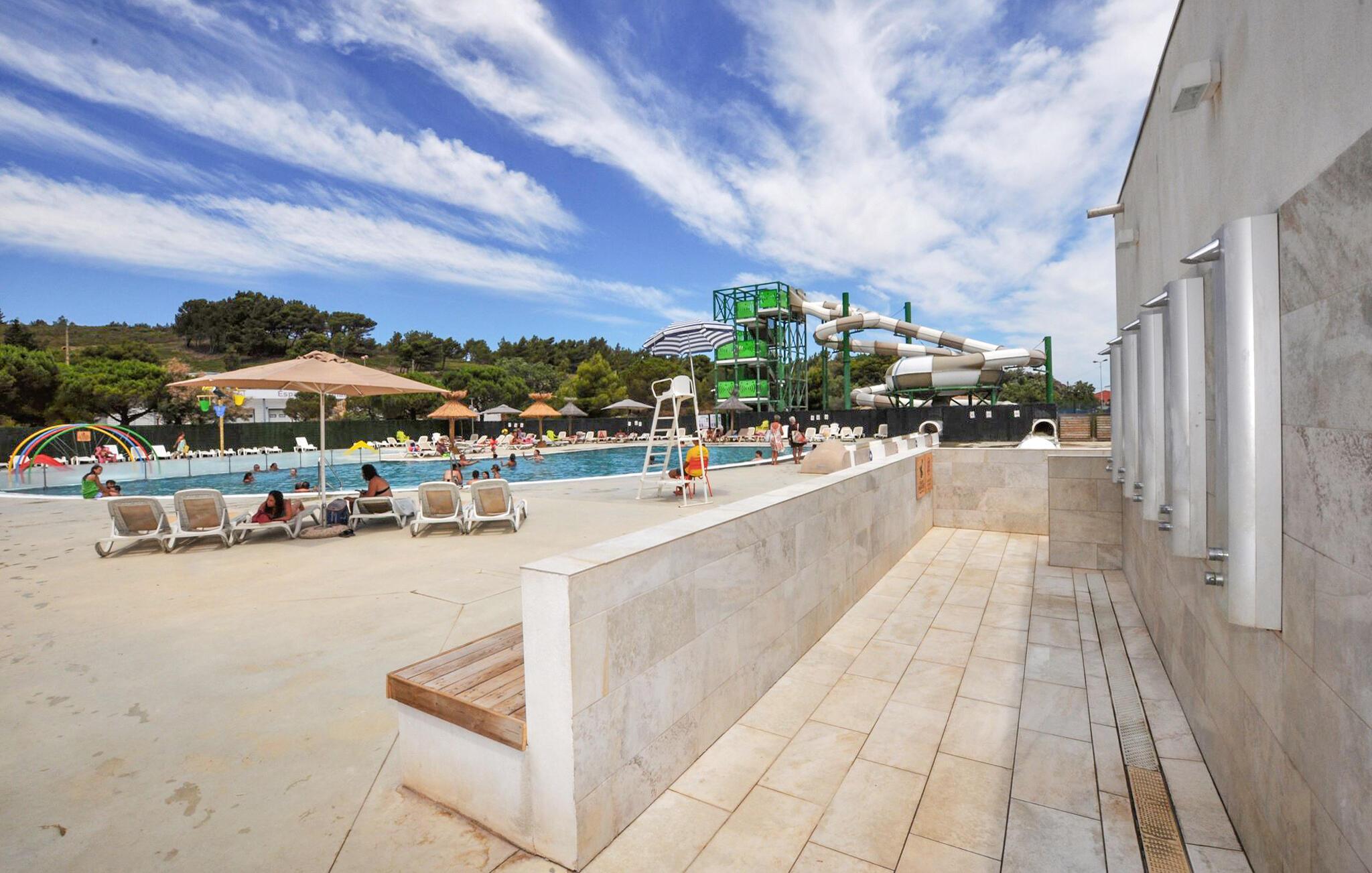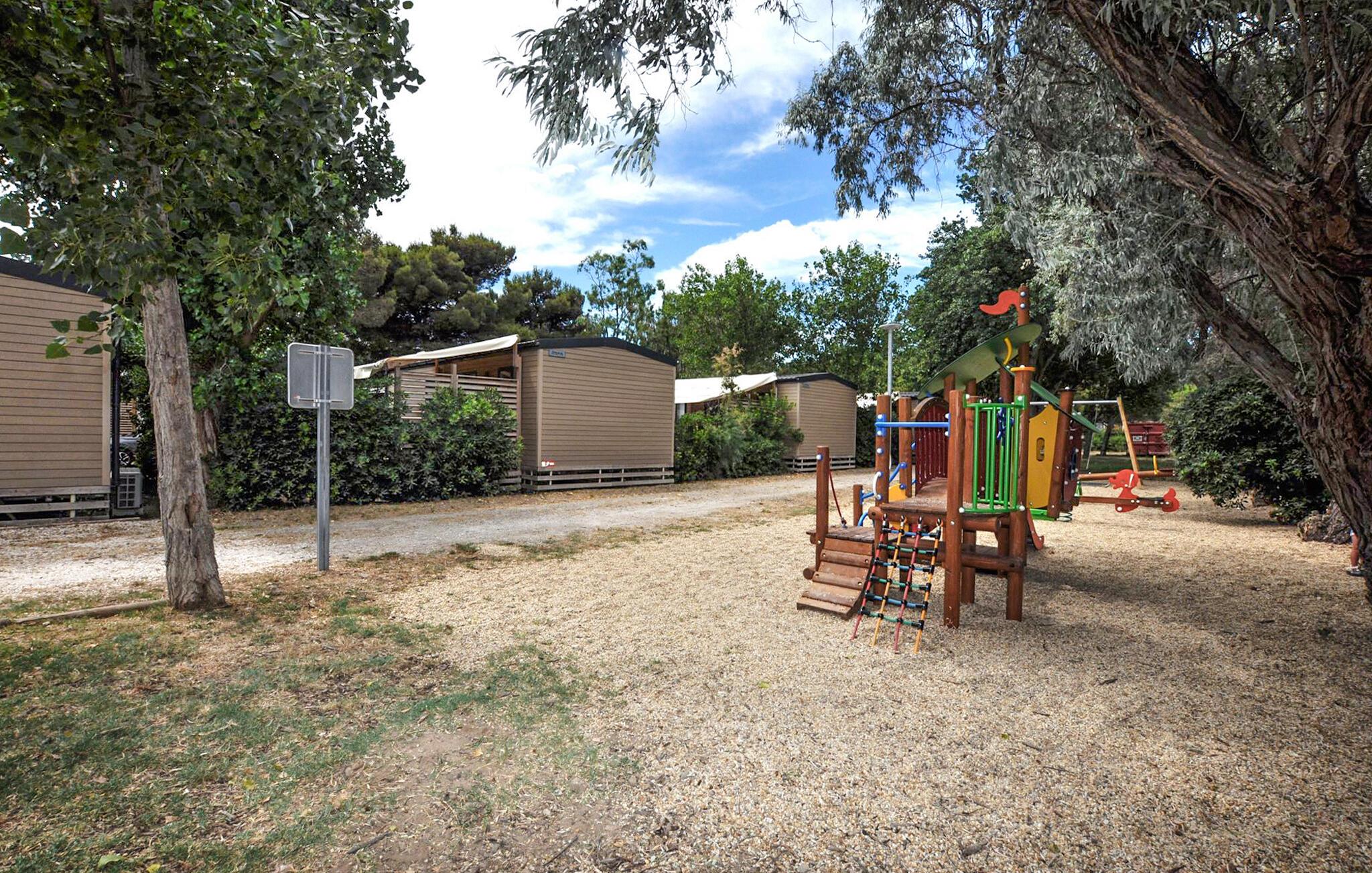 Dette hyggelige tilflugtssted er en del af en temapark og tilbyder jer og familien adgang til dejlige udendørs rekreative muligheder. Planlæg jeres aktiviteter over afslappede måltider, og efter en aktiv dag kan I slå jer ned i den behagelige sofa, spille et brætspil eller fordybe jer i jeres ferielæsning.