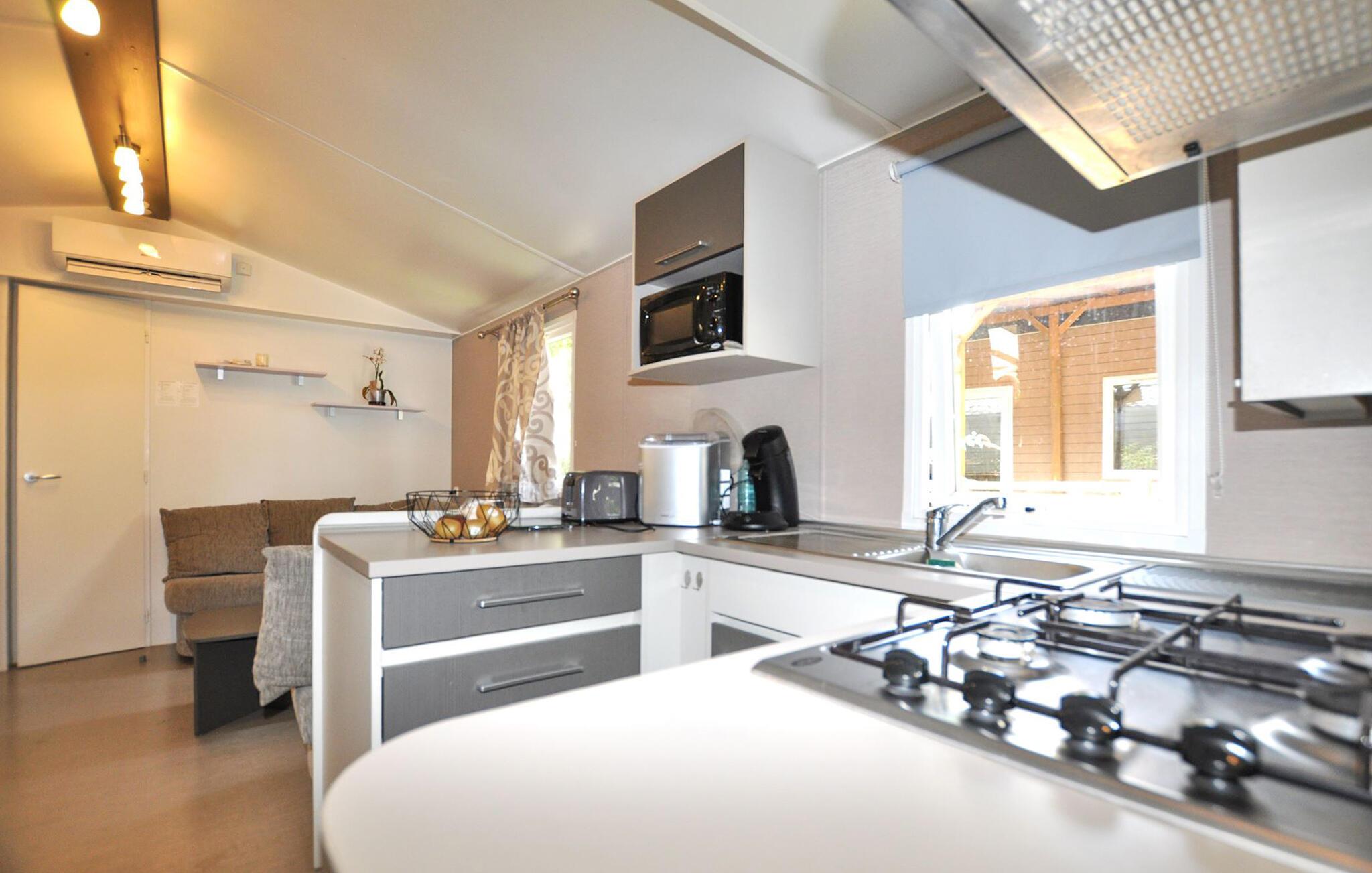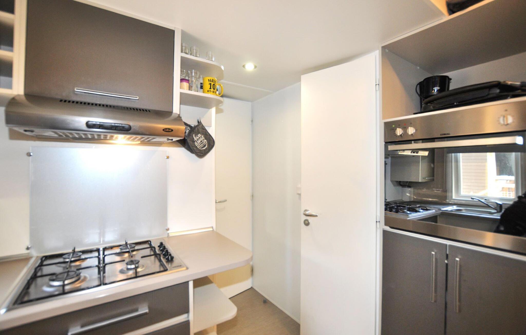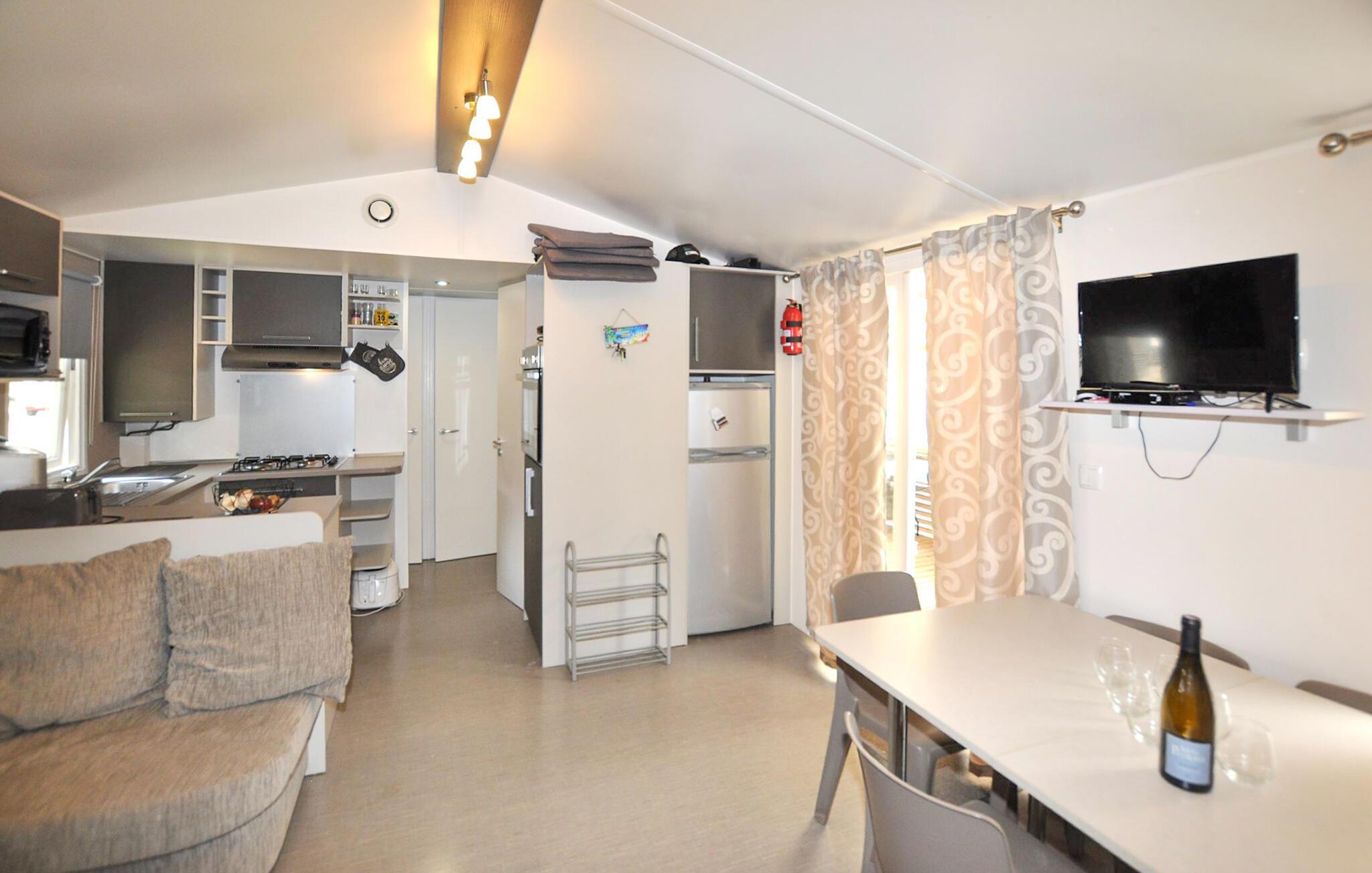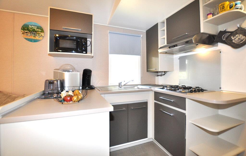 Dette hyggelige tilflugtssted er en del af en temapark og tilbyder jer og familien adgang til dejlige udendørs rekreative muligheder. Planlæg jeres aktiviteter over afslappede måltider, og efter en aktiv dag kan I slå jer ned i den behagelige sofa, spille et brætspil eller fordybe jer i jeres ferielæsning.
