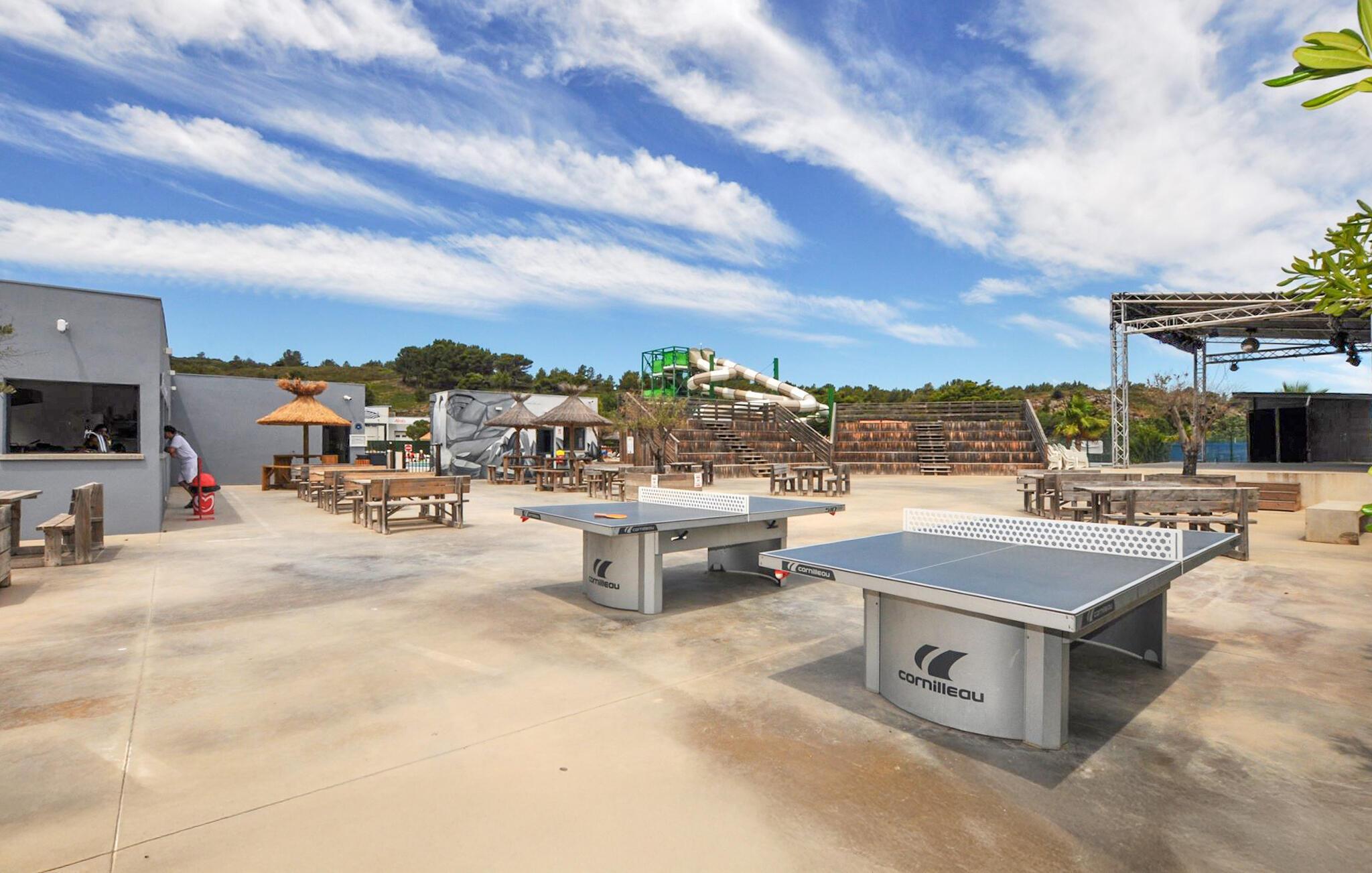 snup en frisk dukkert i den store pool, når I har lyst, og lad børnene få nye venner på legepladsen eller ved bordtennisbordet. lad batterierne op i liggestolene og snak om jeres oplevelser med venner på verandaen om aftenen.