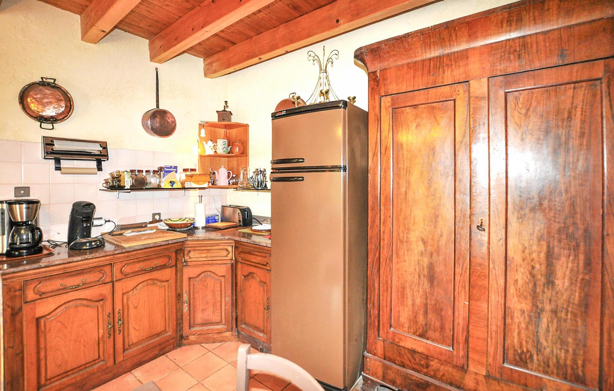 Dette charmerende feriehus tilbyder masser af plads til en hyggelig ferie med en stor familie eller en gruppe venner. Tilbered lækre retter sammen, snak over lange måltider, og nyd den rustikke atmosfære med en spilleaften eller et glas vin.