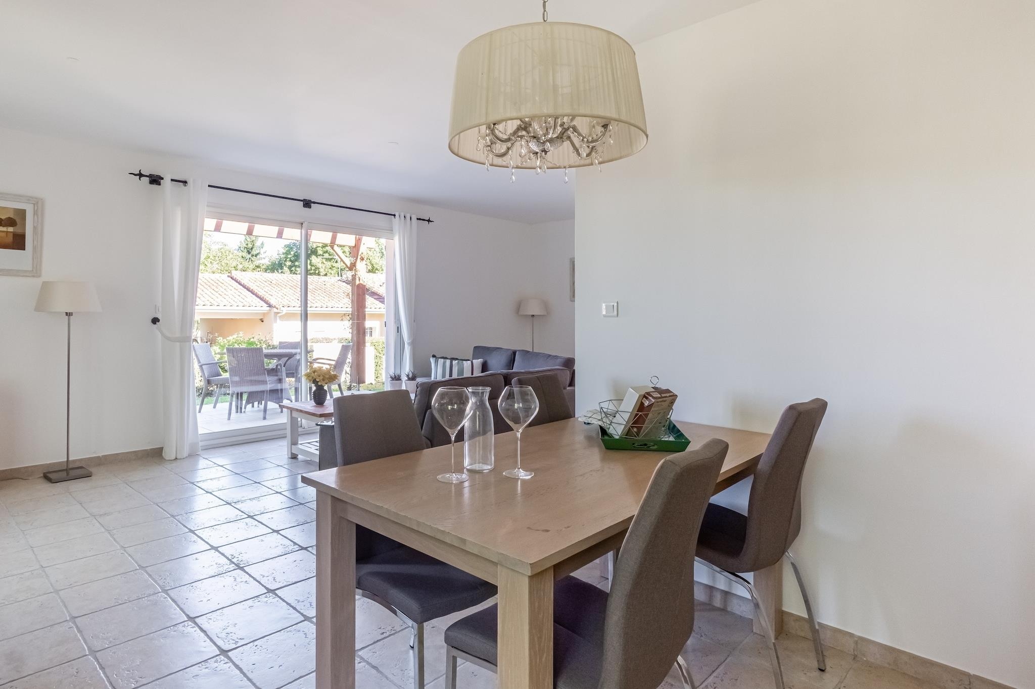 Stueetage: (åbent køkken(kogeplade(glaskeramisk), elkedel, emhætte, kaffemaskine, ovn, mikrobølgeovn, opvaskemaskine , køle-fryseskab), stue / spisestue(Fjernsyn(parabol, Hollandske TV-kanaler), spisebord(4 personer), sofahjørne), soveværelse(dobbeltseng eller 2 enkeltsenge Senge(90 x 200 cm)), soveværelse(dobbeltseng eller 2 enkeltsenge Senge(90 x 200 cm)), badeværelse(badekar med bruser, håndvask), toilet(toilet), pulterkammer(tørretumbler, vaskemaskine)) sofastue(deles med andre gæster), carport, terrasse(privat), swimmingpool(deles med andre gæster, 17 x 12 m.)