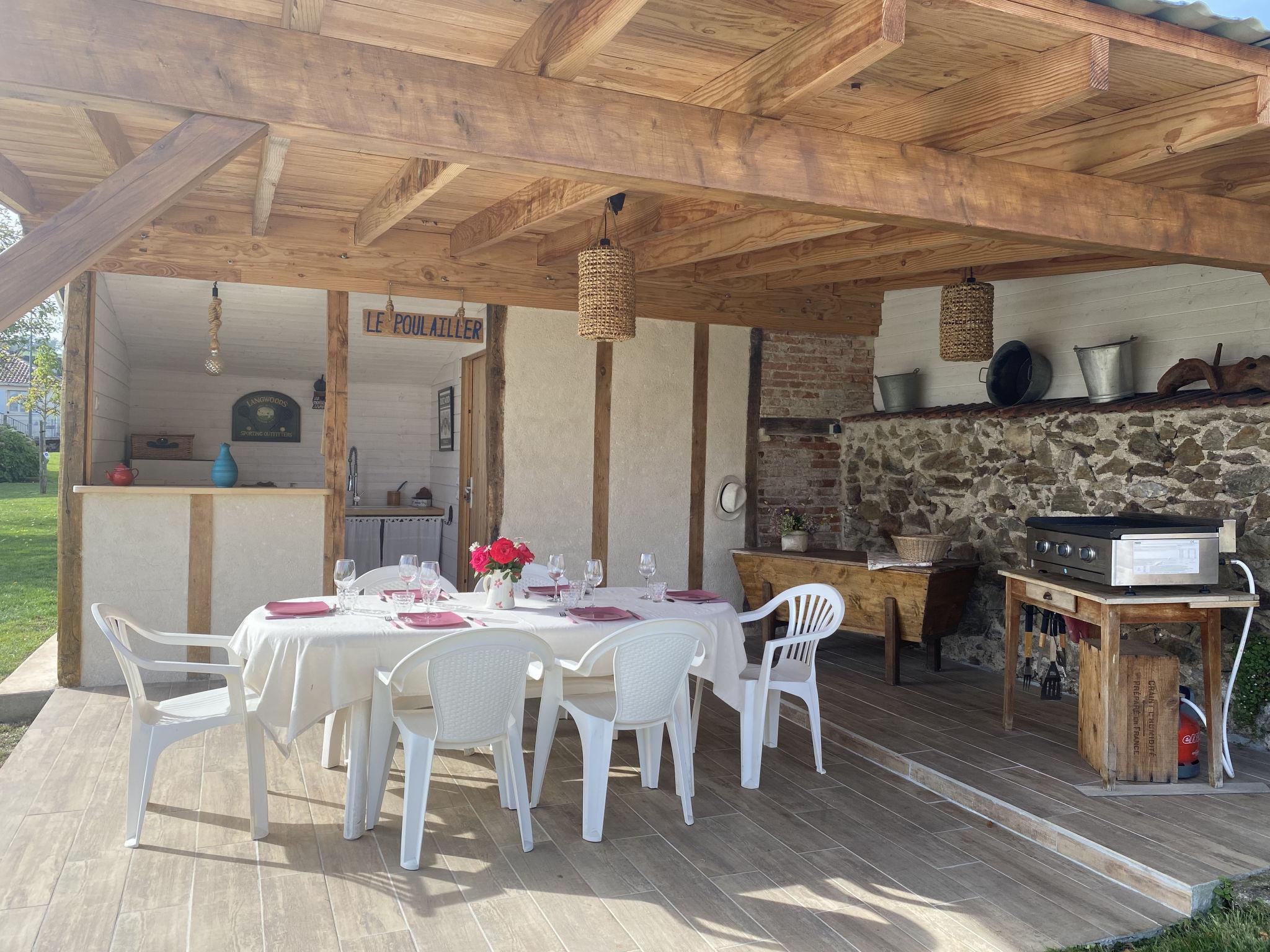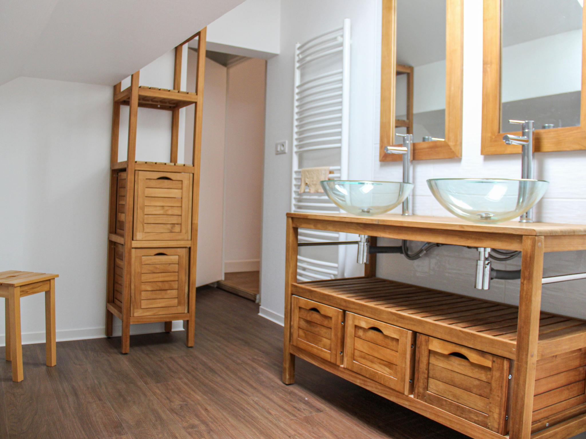 5-room house 100 m2 on 2 levels. Beautiful furnishings: living/dining room with TV (flat screen). Exit to the terrace. 1 room with 1 french bed (1 x 160 cm, length 200 cm). 1 room with 2 beds (90 cm, length 190 cm). Kitchen (oven, dishwasher, 4 ceramic glass hob hotplates, toaster, kettle, microwave, electric coffee machine, Capsules for coffee machine (Dolce Gusto) extra) with dining table. Shower, sep. WC. Upper floor: 1 room with 1 french bed (1 x 160 cm, length 200 cm). 1 room with 1 french bed (1 x 140 cm, length 190 cm). Shower/WC. Gas heating. Terrace, south facing position. Terrace furniture. Facilities: washing machine, hair dryer. Internet (WiFi, free). Garage. Maximum 1 pet/ dog allowed.