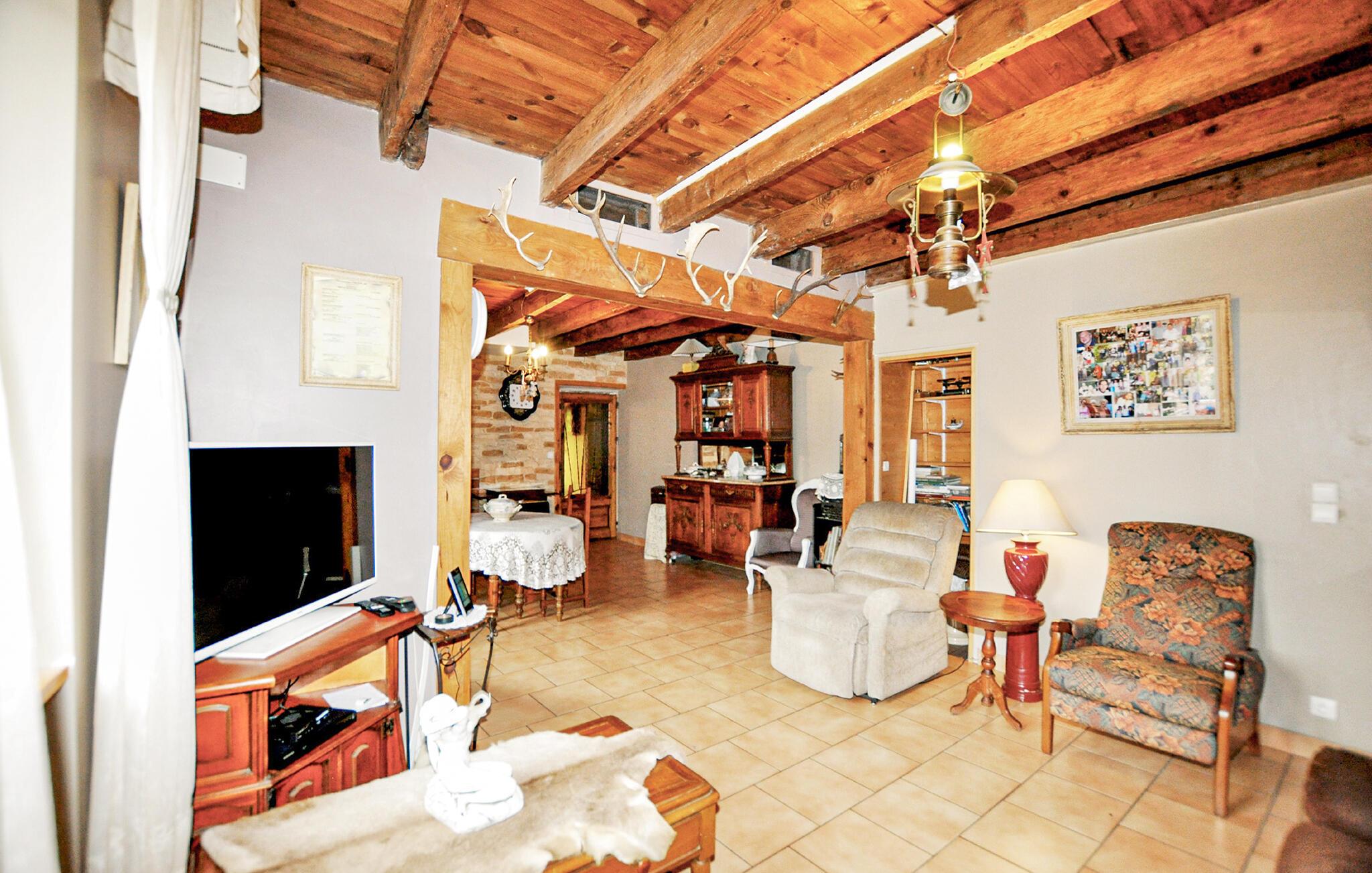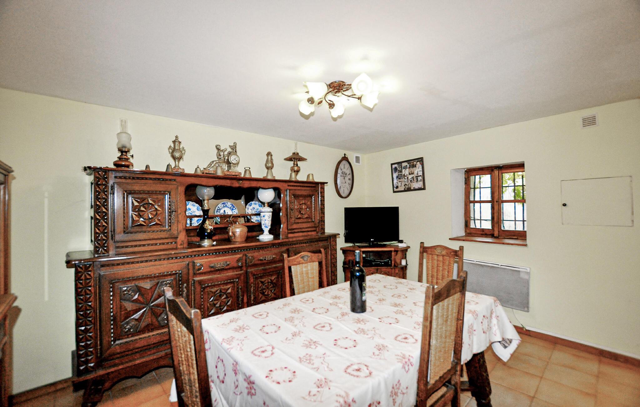 Det hyggelige interiør i dette charmerende feriehus har en varm atmosfære, synlige træbjælker og rustikke accenter. Tilbring afslappende timer i den rummelige stue, nyd måltider sammen i den indbydende spiseplads eller tilbered jeres livretter i det veludstyrede køkken.