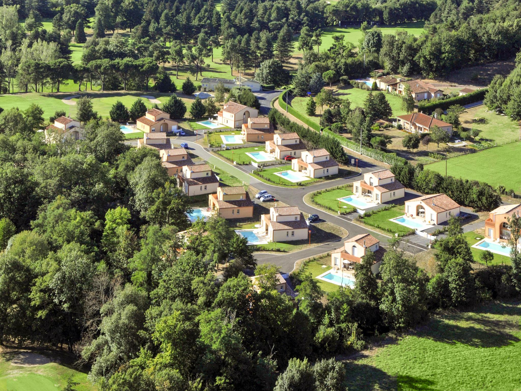 Resort "Domaine Royal Green". 3 km from the centre of Mazamet, 17 km from the centre of Castres, 60 km from the centre of Albi, 100 km from the sea. For shared use: property 2 ha with lawn and plants. Private: natural state property 800 m2 with lawn, swimming pool (8 x 4 m, seasonal availability: 11.Apr. - 17.Oct.) with internal staircase. Terrace. In the complex: reception. Bread roll service. Parking at the house. Supermarket 3 km, restaurant 600 m, bus stop "Labruguière" 13 km, indoor swimming pool 3 km, bathing lake "Lac de Montagnès" 10 km. Golf course (18 hole) 600 m. Please note: the photograph shows a typical example. The holiday properties may differ in living space, floorplan, equipment and furnishing.