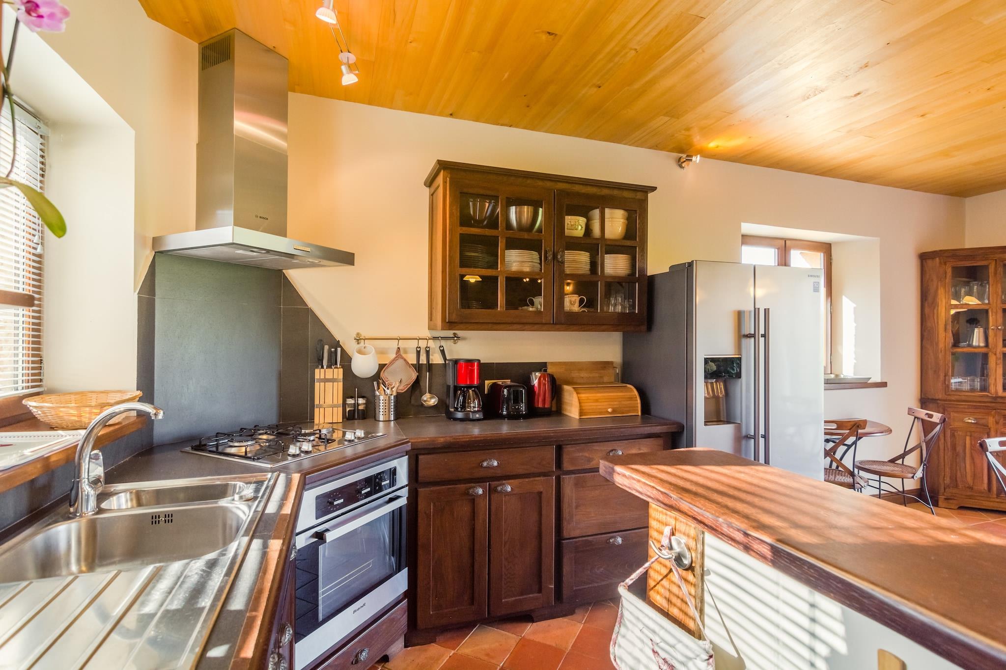 Gemt væk i de rolige bakker i Mazeyrolles tilbyder dette fredelige 4-værelses feriehus til 8 gæster en perfekt blanding af privatliv, natur og komfort. Ejendommen er omgivet af skove og grønne områder og har en privat swimmingpool, møbleret have og terrasse - ideel til at slappe af, tage en lur eller nyde en grill under åben himmel. Indvendigt rummer boligen en hyggelig stue med TV, pejs, komfur og varme, hvilket skaber en varm stemning året rundt. Et veludstyret køkken, bordtennis, gratis WiFi, barneseng og høj stol gør det familievenligt, og op til 2 kæledyr er velkomne. Udforsk nærliggende Monpazier (9 km), akvariet og vandlandet i Le Bugue (31 km), eller nyd kajaksejlads på Dordogne-floden (9 km). Restauranter (3 km) og supermarkeder (7 km) er inden for rækkevidde, og kulturelle perler som Sarlat-la-Canéda (37 km), Cahors (50 km) og Château de Biron (17 km) tilbyder berigende dagsture. Uanset om du slapper af ved poolen eller udforsker middelalderbyer, er dette feriested på landet en perfekt base for dit Dordogne-eventyr.