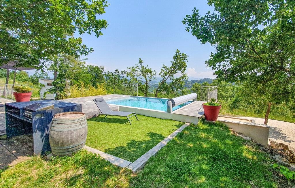 I haven finder I en overdækket pool, som børnene kan plaske rundt i dagen lang, når solen bager. Alt imens kan I få en god teint i havemøblerne eller tage et slag petanque, inden I runder aftenen af med et festligt måltid på planchaen og nyder en god drink.