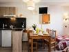 Højt oppe i det betagende Méribel-skisportssted, i en højde af næsten 1800 meter, tilbyder Odalys Le Hameau du Mottaret en uforglemmelig alpin ferie. Omgivet af snedækkede tinder og beliggende i hjertet af skiområdet Les Trois Vallées, inviterer dette charmerende tilflugtssted dig til at opleve vinterens magi i de franske alper. Træhytterne, der er designet i harmoni med bjerglandskabet, skaber en varm og indbydende atmosfære, der er perfekt til din ferie. \n\nTræd ud af din lejlighed og ud på pisterne, da boligen kan prale af direkte adgang til lifter og pister med direkte adgang til ski-in og ski-out. 2-værelseslejligheden, ideel til op til fem gæster, har en hyggelig stue med en sovesofa, et veludstyret køkken og en privat balkon, hvor man kan nyde den friske alpeluft. Det separate soveværelse tilbyder fleksible sovearrangementer med to enkeltsenge eller køjesenge, hvilket sikrer komfort for familier eller grupper. Moderne faciliteter som Wi-Fi, tv og valgfri babysæt gør dit ophold bekvemt og stressfrit.\n\nMéribel Mottaret er en indgangsport til de berømte 3 Vallées og tilbyder 600 kilometer skiløjper for alle niveauer, fra begyndere til erfarne skiløbere. Langrendsentusiaster kan udforske 33 kilometer løjper gennem fredfyldte landskaber som Tueda-søen og Altiport-skoven. Den gratis\
