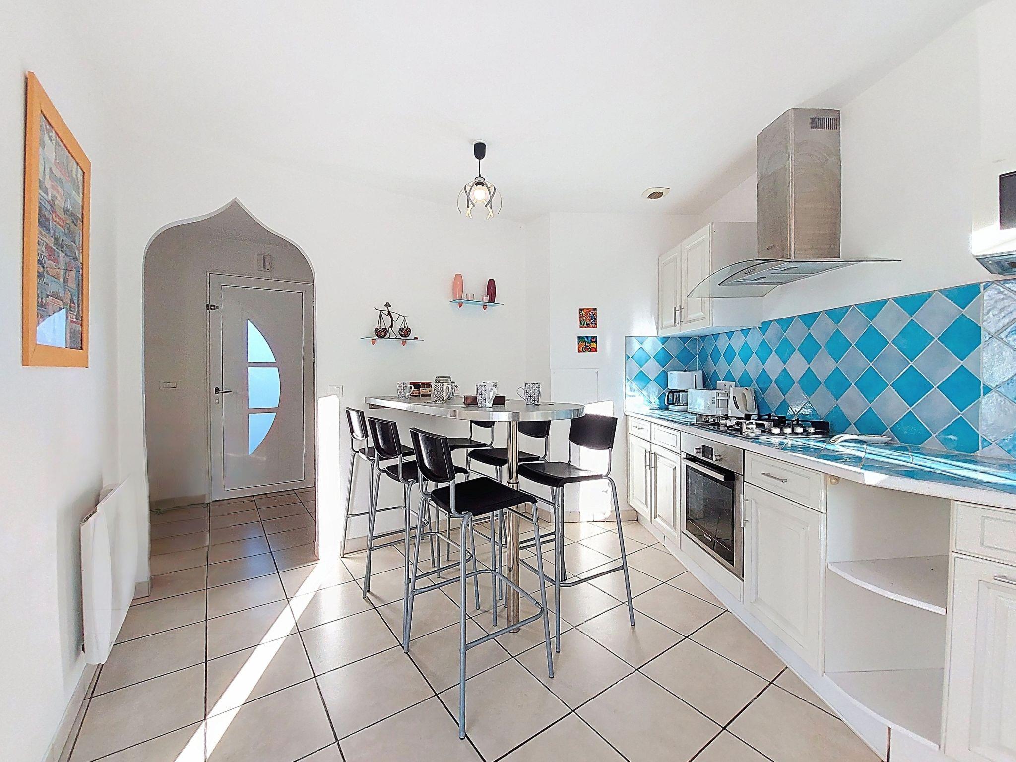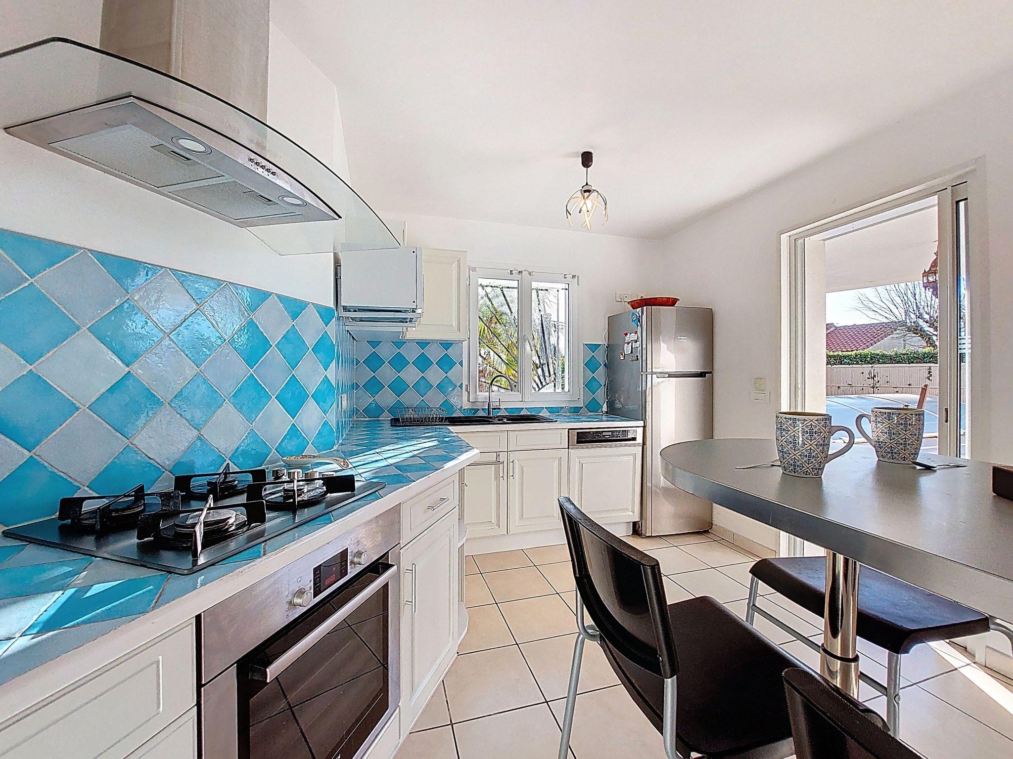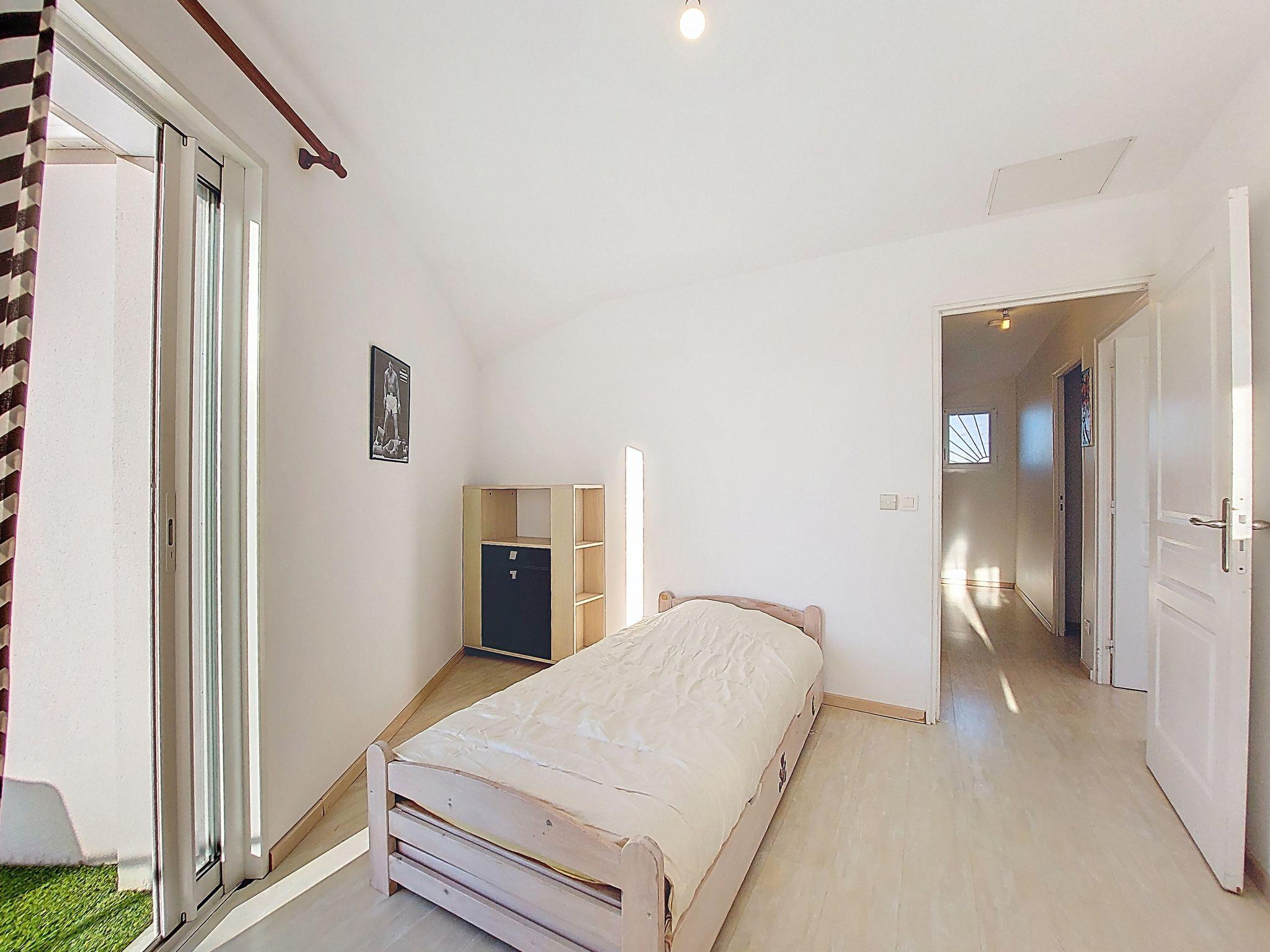 7-room villa 180 m2 on 2 levels. Spacious: large living/dining room with open-hearth fireplace and TV (flat screen). Exit to the garden, to the terrace. 1 room with 1 french bed (1 x 160 cm, length 190 cm), hand-basin and separate WC. 1 room with 1 french bed (1 x 140 cm, length 190 cm). Kitchen (4 hot plates, dishwasher, toaster, kettle, microwave, freezer, electric coffee machine). Bathroom, double hand-basin. Electric heating. Upper floor: (steep stair) gallery with 1 bed (90 cm, length 190 cm). 2 rooms, each room with 1 french bed (1 x 140 cm, length 190 cm). 1 small room with 1 bed (90 cm, length 190 cm). Exit to the balcony. Shower/WC. Large terrace 80 m2, south facing position. Terrace furniture, barbecue. Facilities: washing machine, dryer, iron, children's high chair, baby cot. Internet (WiFi, free). Parking (3 cars). Please note: smoke alarm. Offer by a private individual according to Art. 155, IV of CGI.