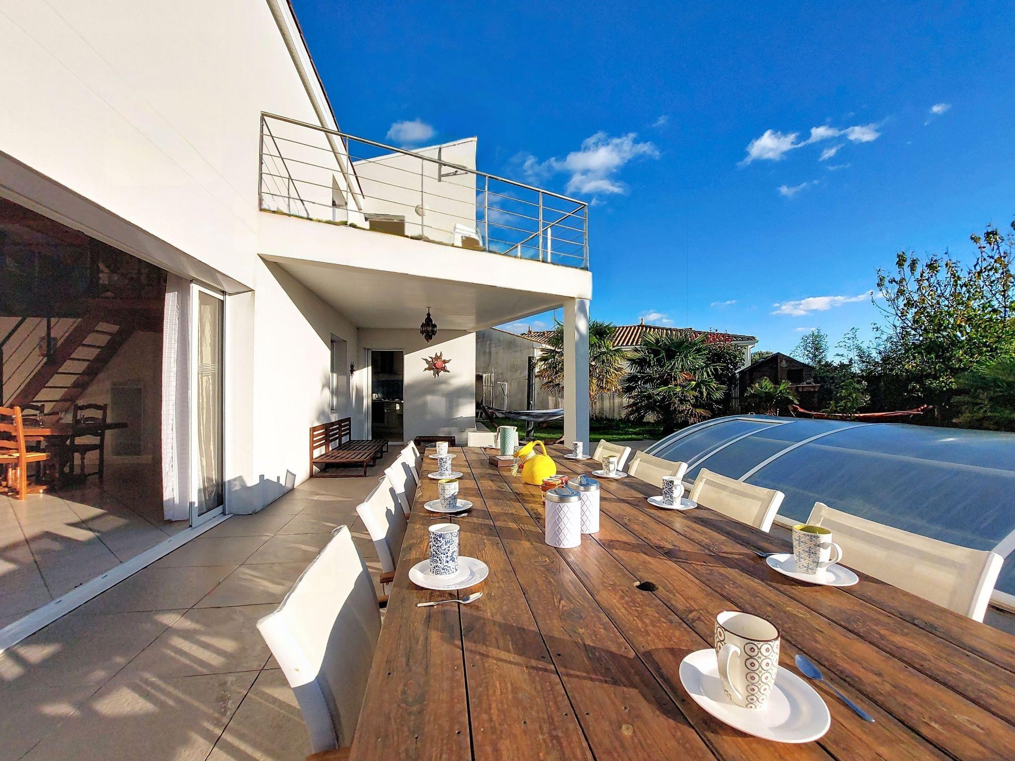 Meschers sur Gironde 6 km from Royan: Villa "Les Roselières", 2 storeys. In the hamlet Le Berceau, 5 km from the sea, 5 km from the beach. Private: property 750 m2 (fenced), trees, swimming pool heated, secured (8 x 4 m, depth 125 - 145 cm, seasonal availability: 01.May. - 30.Sep.). Outdoor shower, table tennis, garden furniture, barbecue, barbecue house, pool maintenance by the owner/gardener. Shop 3.5 km, supermarket 3.5 km, restaurant 3.5 km, bakery 3.5 km, bus stop "Meschers sur Gironde - Vallée" 2 km, railway station "Royan" 8 km, sandy beach "Suzac" 5 km, thermal baths "Thalassotherapie Thalazur Royan" 12 m. Sports harbour 5 km, golf course (18 hole) 17 km. Nearby attractions: Bowling - Family Fun Park 3.5 km, Grottes de Matata 4.5 km, Grottes du Regulus 4.5 km, Le Parc de l'Estuaire 5 km, Talmont sur Gironde 9 km, Embarcadère Royan - Le Verdon 12 km. Please note: car recommended. The owner does not accept any groups. The keys‘ handover takes place by the agency Interhome in Vaux sur Mer, 12 km. Main road close by. Neighbourhood highly sensitive to noise. Quietness and good behaviour expected.
