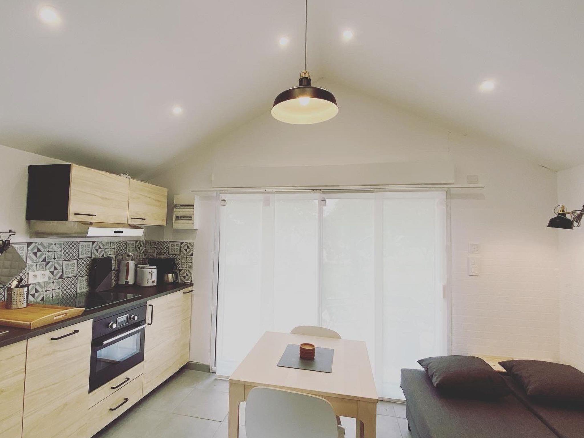 The 25m² holiday home has a bedroom with a queen-size (160 cm) double bed, a bathroom with shower, large washbasin and WC as well as a living/sleeping/kitchen area. In this area there is a sofa bed with a 130x190 cm bed, an extendable dining table and a fully equipped kitchen. You will also find your own washing machine in the house. All care and cleaning products provided for final cleaning are eco-certified products. The price also includes the bed linen and towels provided by us. For your evening entertainment, we have installed various board games and a Smart TV with a Netflix & Disney+ subscription.