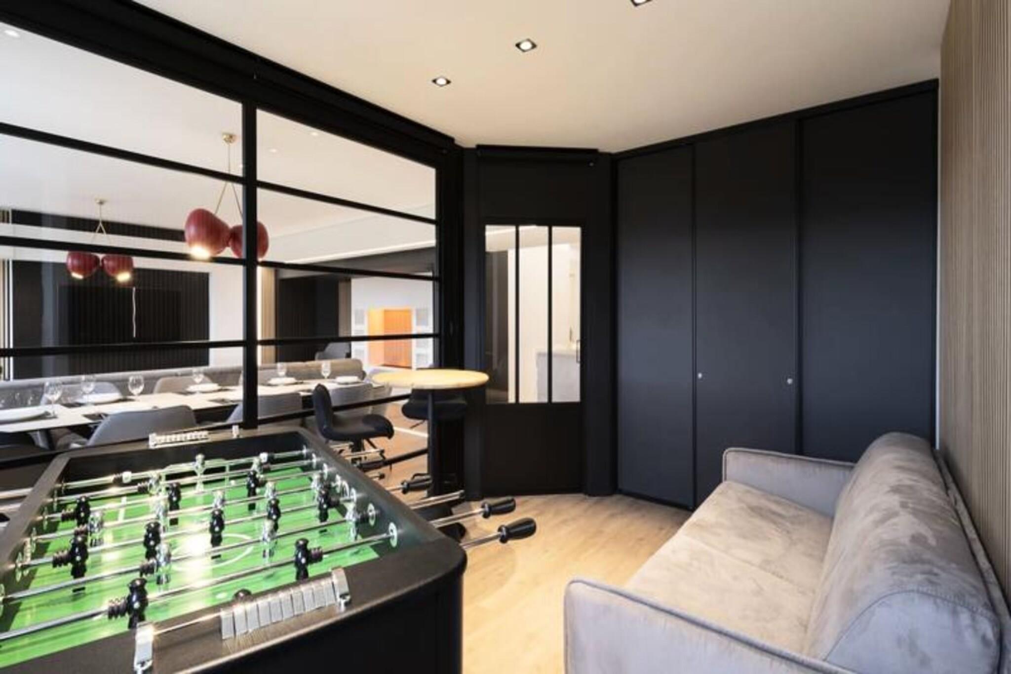 Denne luksuslejlighed tilbyder et sofistikeret ophold for både familier og arbejdsgrupper med plads til op til 10 voksne eller 8 voksne og 4 børn. Lejligheden ligger på fjerde sal med elevator og har fire rummelige soveværelser, hver udstyret med fjernsyn. To af soveværelserne har private bruserum for ekstra privatliv. I stuen er der en sovesofa, ideel til ekstra soveplads, mens mørklægningsgardiner sikrer en afslappende søvn. Denne ejendom er ikke kæledyrsvenlig, hvilket garanterer et roligt og behageligt miljø for gæsterne. Denne lejlighed er perfekt beliggende i hjertet af Metz, kun 10 minutter fra Metz togstation og den ikoniske katedral. Esplanade de la République ligger lige udenfor og byder på en fantastisk udsigt. Lejlighedens centrale beliggenhed betyder, at du er tæt på lokale caféer, restauranter og markeder, så du kan opleve byens pulserende atmosfære. Du kan udforske det bedste af Metz, mens du nyder et fredeligt tilflugtssted. Lejligheden er fuldt udstyret med moderne bekvemmeligheder, herunder køkken med ovn, mikroovn, opvaskemaskine og kogeplader. Det rummelige badeværelse har badekar, og der er også vaskemaskine, tørretumbler og strygejern for ekstra bekvemmelighed. Familier med børn vil sætte pris på den tilgængelige rejseseng, høj stol og badekar. For forretningsrejsende er lejligheden udstyret med højhastighedsinternet og dedikerede arbejdsområder.