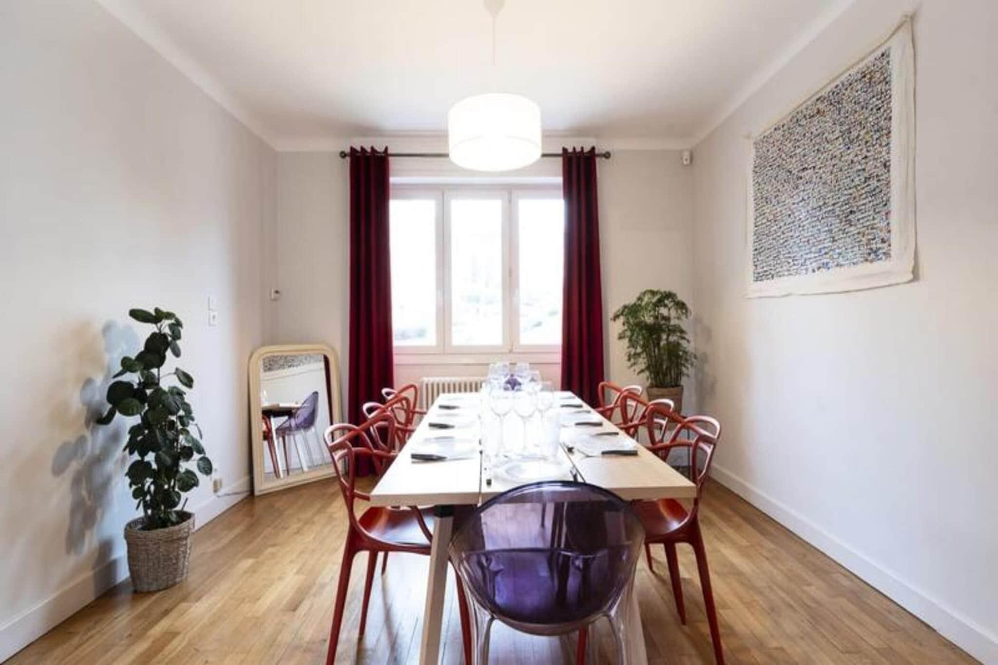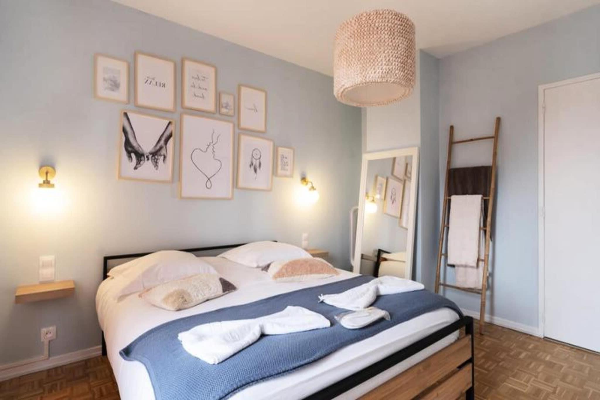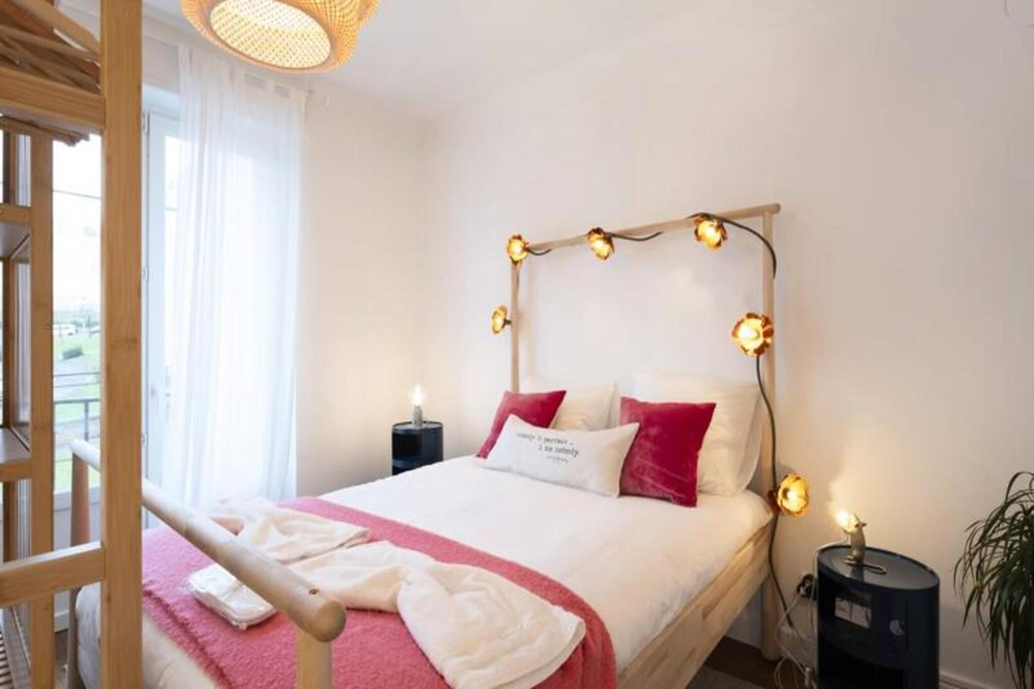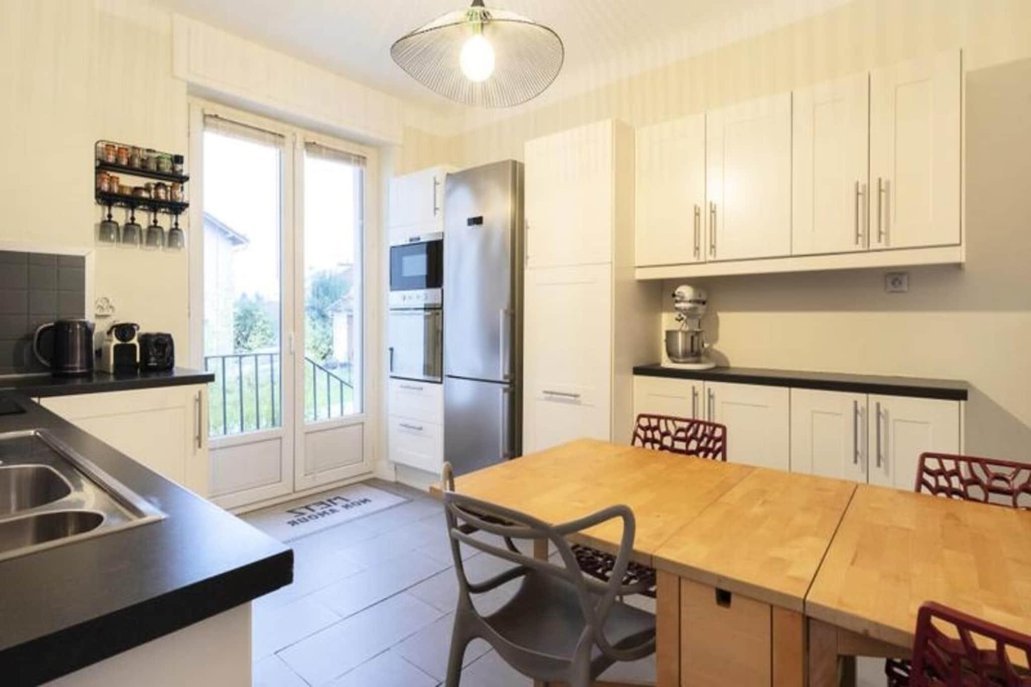 Dette rummelige feriehus kan komfortabelt rumme op til 8 personer med fire soveværelser, inklusive et dedikeret babyværelse. Det har også en privat garage med en plads og yderligere privat parkering til fire køretøjer. Ejendommen er perfekt til familier eller vennegrupper og er kæledyrsfri. Gæsterne kan nyde et privat, fuldt renoveret rum med avancerede finish, specialfremstillede møbler og luksussengetøj. En række underholdningsmuligheder er tilgængelige, herunder bordfodbold, dart, et klaver og et udvalg af bøger for at forbedre opholdet. Denne ejendom tilbyder god adgang til Metz, kun 7 minutters kørsel fra byens centrum. Attraktioner som Centre Pompidou, Muse shoppinggalleri og Les Arènes Sports Centre ligger inden for 5-10 minutter i bil. Offentlig transport er let tilgængelig, med et busstoppested i nærheden og en cykelsti ved ejendommens dørtrin, hvilket gør den ideel til at udforske både udendørs aktiviteter og kulturelle steder. Huset er fuldt udstyret til et behageligt ophold, herunder et velindrettet køkken med ovn, mikroovn, opvaskemaskine og foodprocessor. For en sjov madoplevelse er en række forskellige apparater tilgængelige, herunder en raclettemaskine, fonduesæt, vaffeljern og crepemaskine. Ejendommen har også en vaskemaskine, tørretumbler og fiberoptisk Wi-Fi, perfekt til lange ophold eller fjernarbejde. Hvert soveværelse har en privat balkon, der tilbyder et dejligt sted til morgenmad eller afslapning.