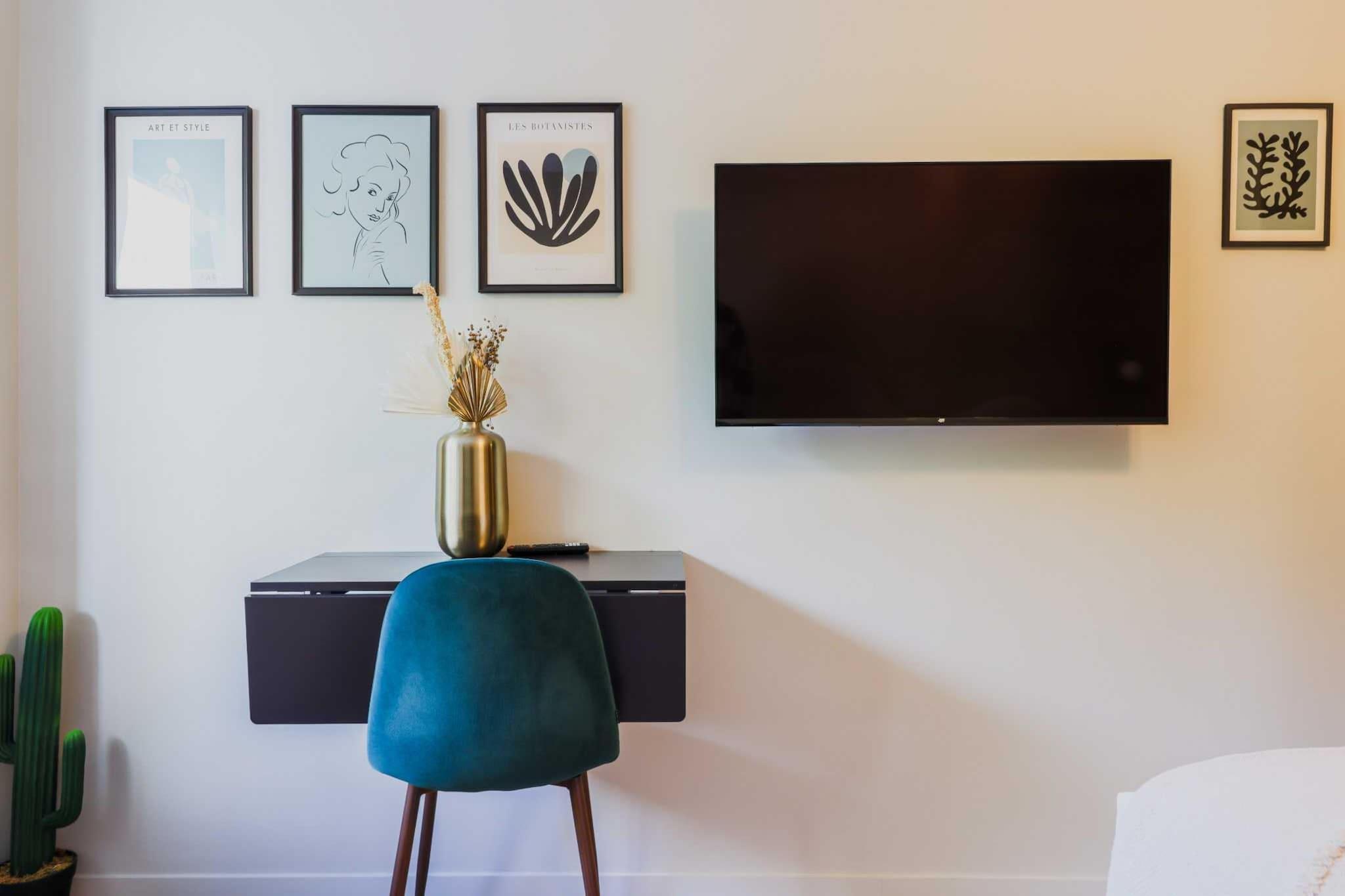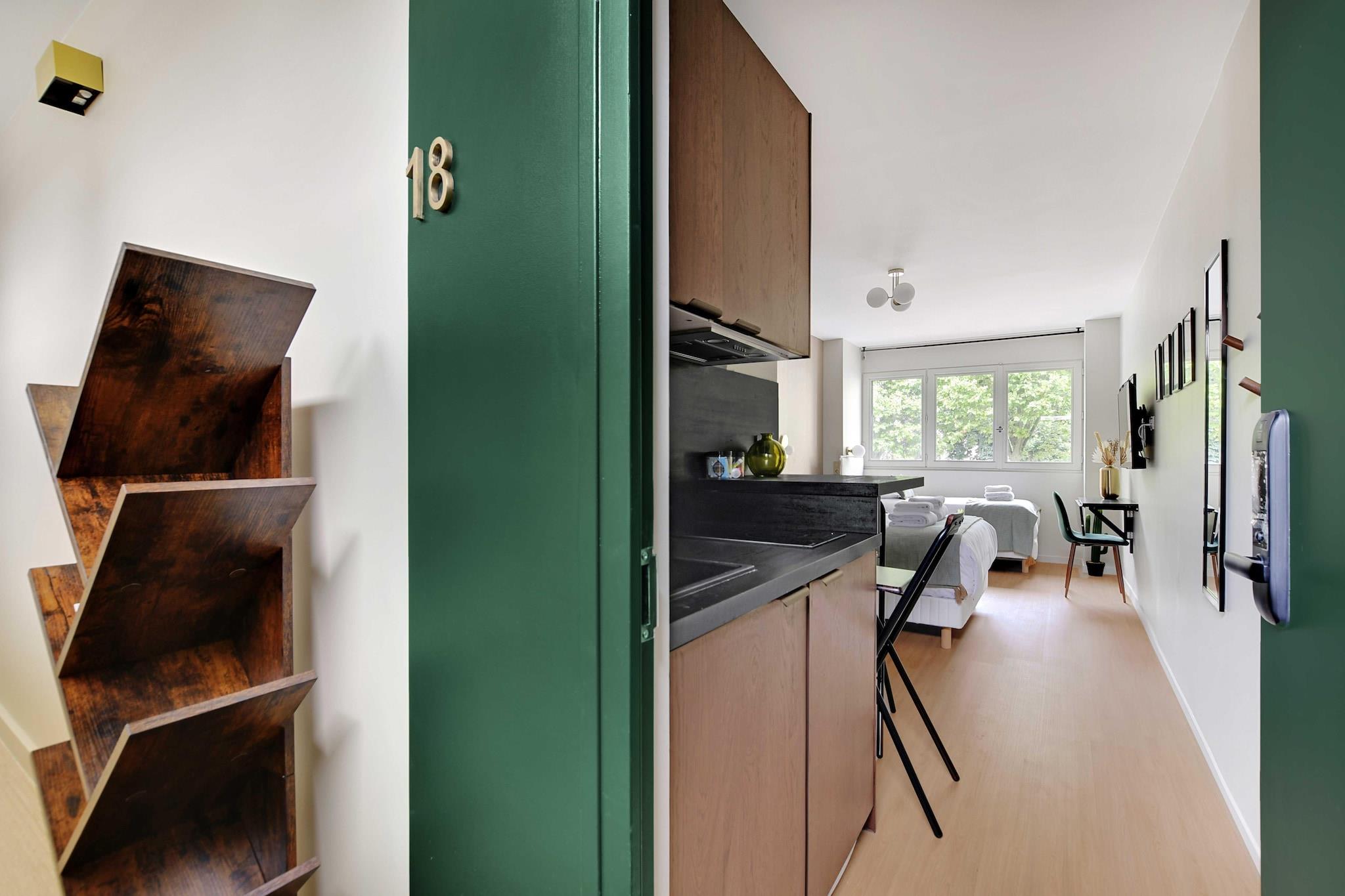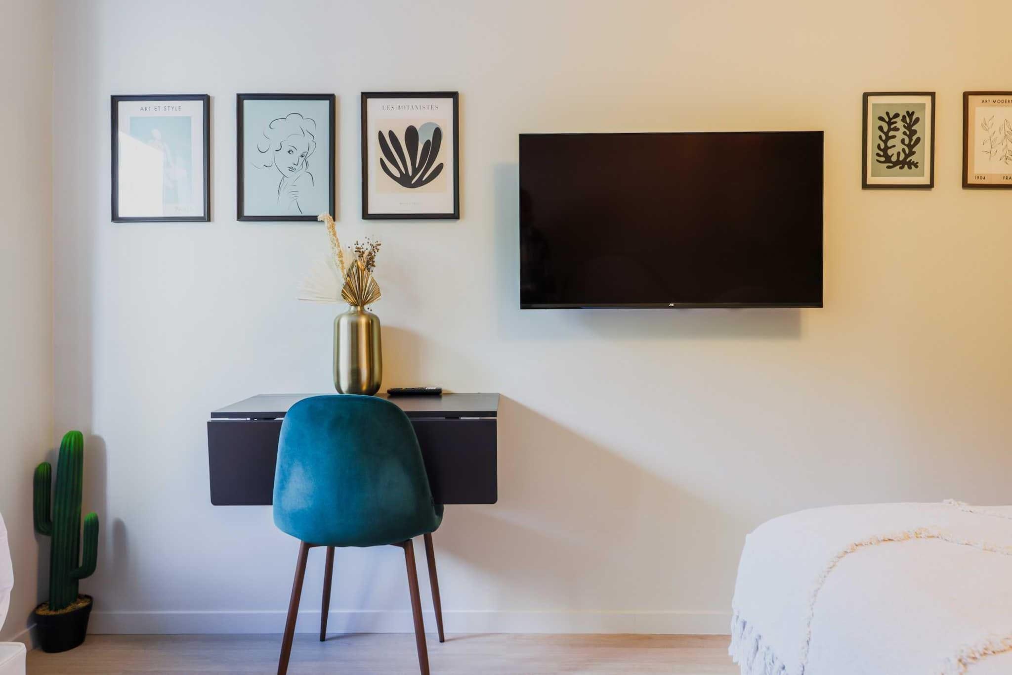 På 1. etage: (Køkken(elkedel, brødrister, kaffemaskine, mikrobølgeovn, køleskab, , ), Stue/soveværelse(, , , enkeltseng, dobbeltseng, Fjernsyn), badeværelse(, bruser, håndvask, toilet, føntørrer, , )) , Førstehjælp, Legeområde, varme, strygejern, , Carbon monoxide detector, Cleaning Disinfection, Downtown, Enhanced cleaning practices, High touch surfaces disinfected, Long term stays allowed, Room-darkening shades, Town