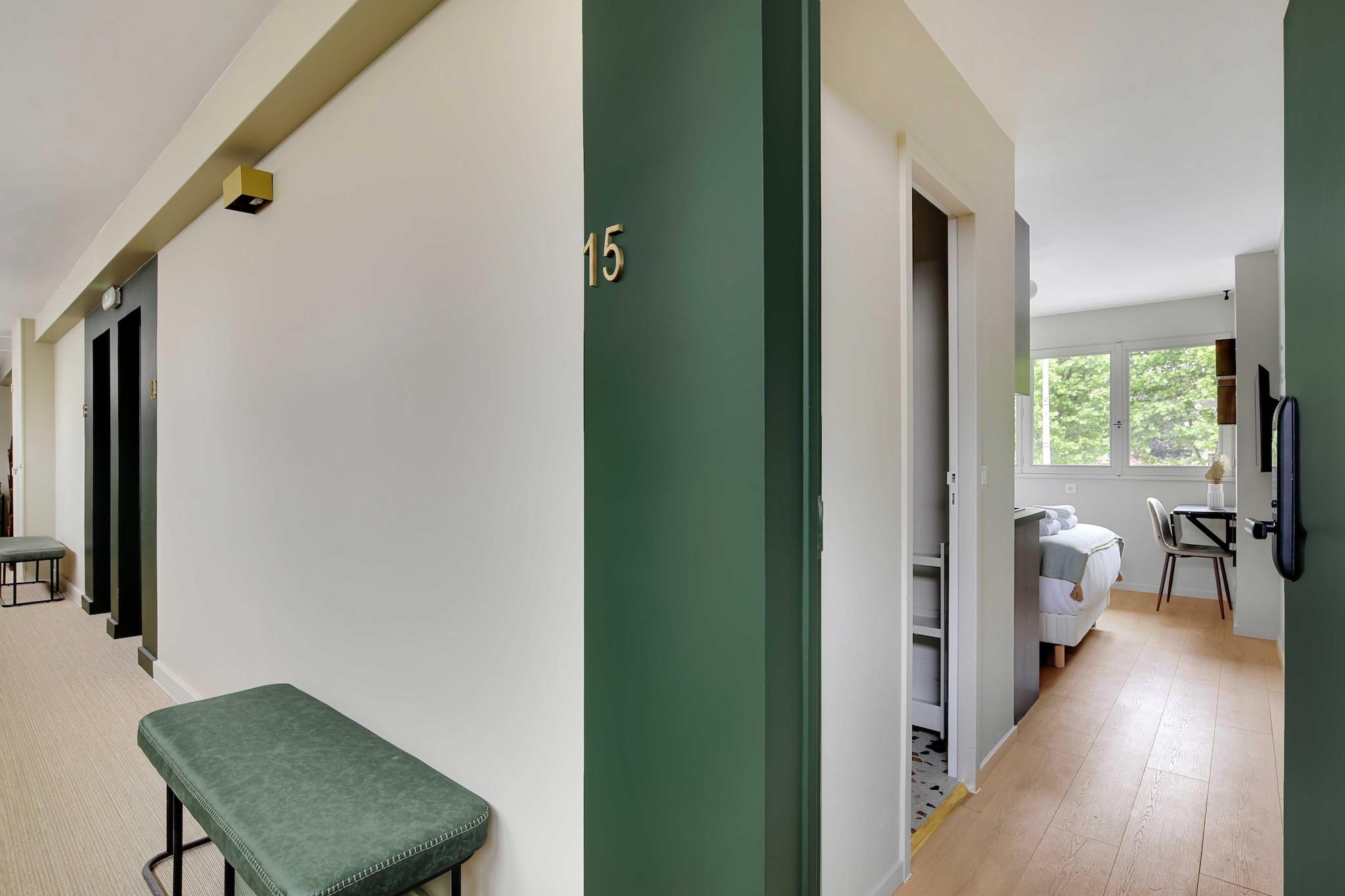 På 1. etage: (Køkken(kakkelovn, elkedel, brødrister, kaffemaskine, mikrobølgeovn, køleskab, ), Stue/soveværelse(, , dobbeltseng, Fjernsyn), badeværelse(bruser, toilet, føntørrer, Håndklæder/sengelinned (inkl.), )) , , , Førstehjælp, Legeområde, varme, strygejern, , , , Carbon monoxide detector, Cleaning Disinfection, Downtown, Enhanced cleaning practices, High touch surfaces disinfected, Long term stays allowed, Room-darkening shades, Town