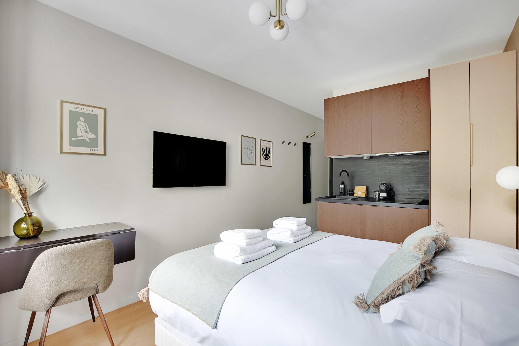 På 1. etage: (Køkken(kakkelovn, elkedel, brødrister, kaffemaskine, mikrobølgeovn, køleskab), Stue/soveværelse(, , dobbeltseng, Fjernsyn), badeværelse(Håndklæder/sengelinned (inkl.), )) , , , Førstehjælp, Legeområde, varme, strygejern, føntørrer, , , , , Carbon monoxide detector, Cleaning Disinfection, Downtown, Enhanced cleaning practices, High touch surfaces disinfected, Long term stays allowed, Room-darkening shades, Town