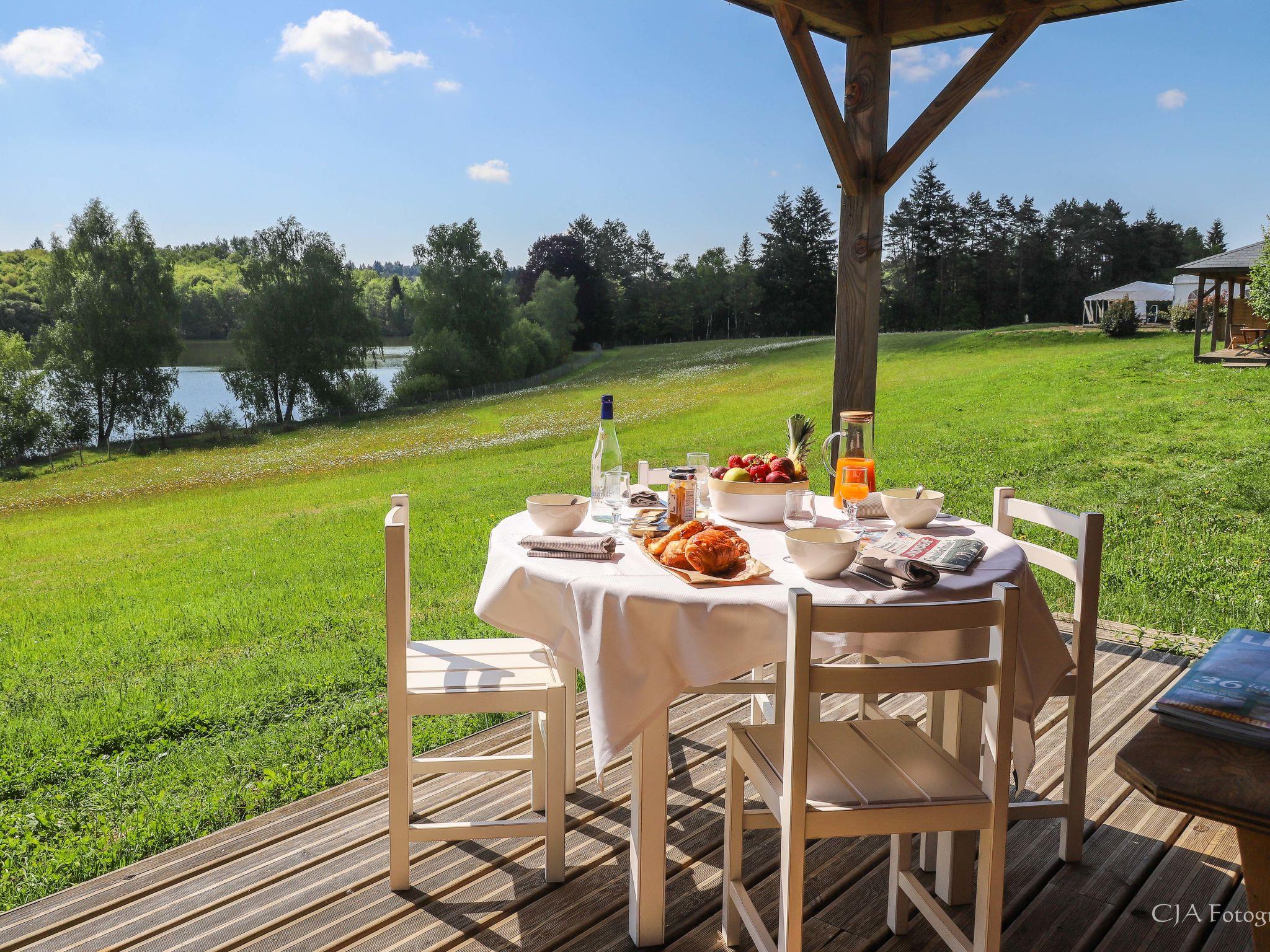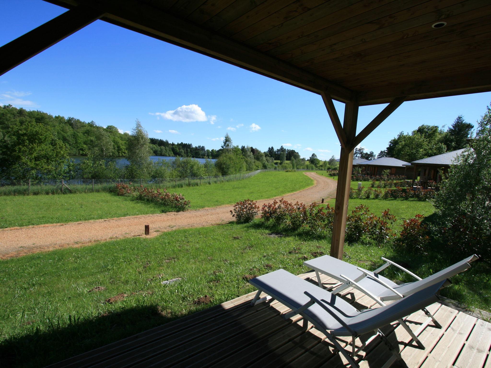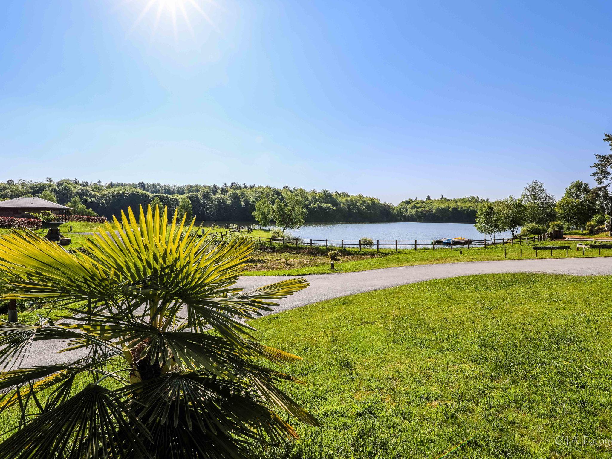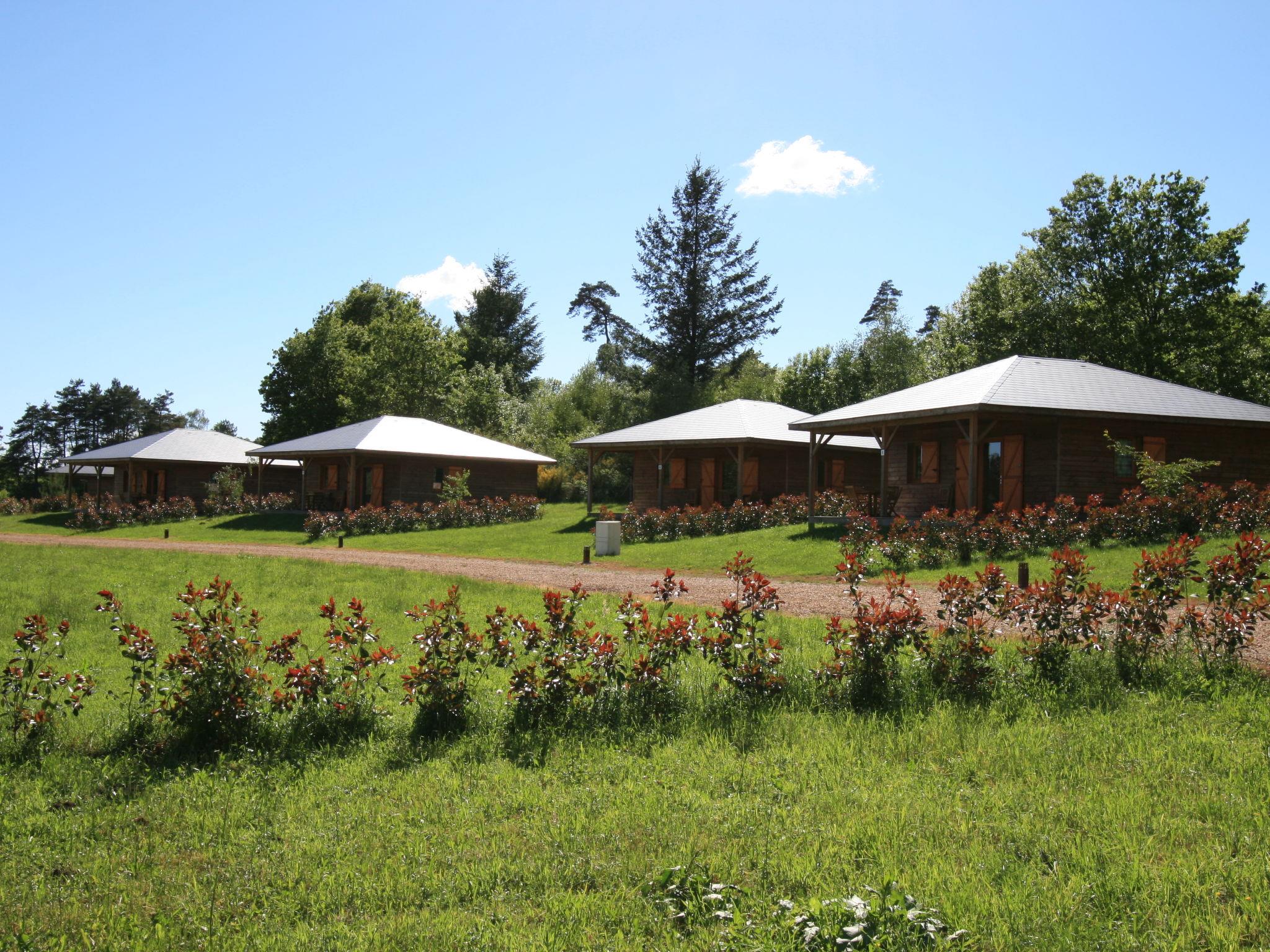 Beautiful farm estate "Les Monédières", surrounded by meadows. 70 houses in the resort. On the outskirts, 2 km from the centre of Meyrignac, in a quiet position, in the countryside, in a pedestrian area. For shared use: property 12 ha, lawn for sunbathing, pond, swimming pool heated (25 x 6 m, seasonal availability: 15.Jun. - 15.Sep.). Tennis, table tennis, boccia, children's playground. In the complex: reception, restaurant, bar, sauna (extra). Massage (extra). Spa area (extra) hamam, washing machine, tumble dryer (for shared use, extra). Room cleaning daily on request (extra). Parking on the premises. Shop 5 km, grocery 5 km, supermarket 20 km. Walking paths from the house 200 m. Nearby attractions: Corrèze 5 km, Sarran (Musée Jacques Chirac) 12 km, Tulle 24 km, Brive-la-Gaillarde 54 km, Collonges la Rouge 65 km. Hiking paths: Plateau de Millevaches. Please note: suitable for families, baby equipment on request. Suitable for events. The photograph shows a typical example. Note: A heated indoor swimming pool (10mx6m) is also available in the relaxation area all year round. The baby kit (on request) includes a cot and a high chair. Possibility to rent electric bikes on site. Small nautical base for canoeing and pedal boating, direct access to the estate's lake. For information: the chalets can be individual or twinned. No PRM accommodation.