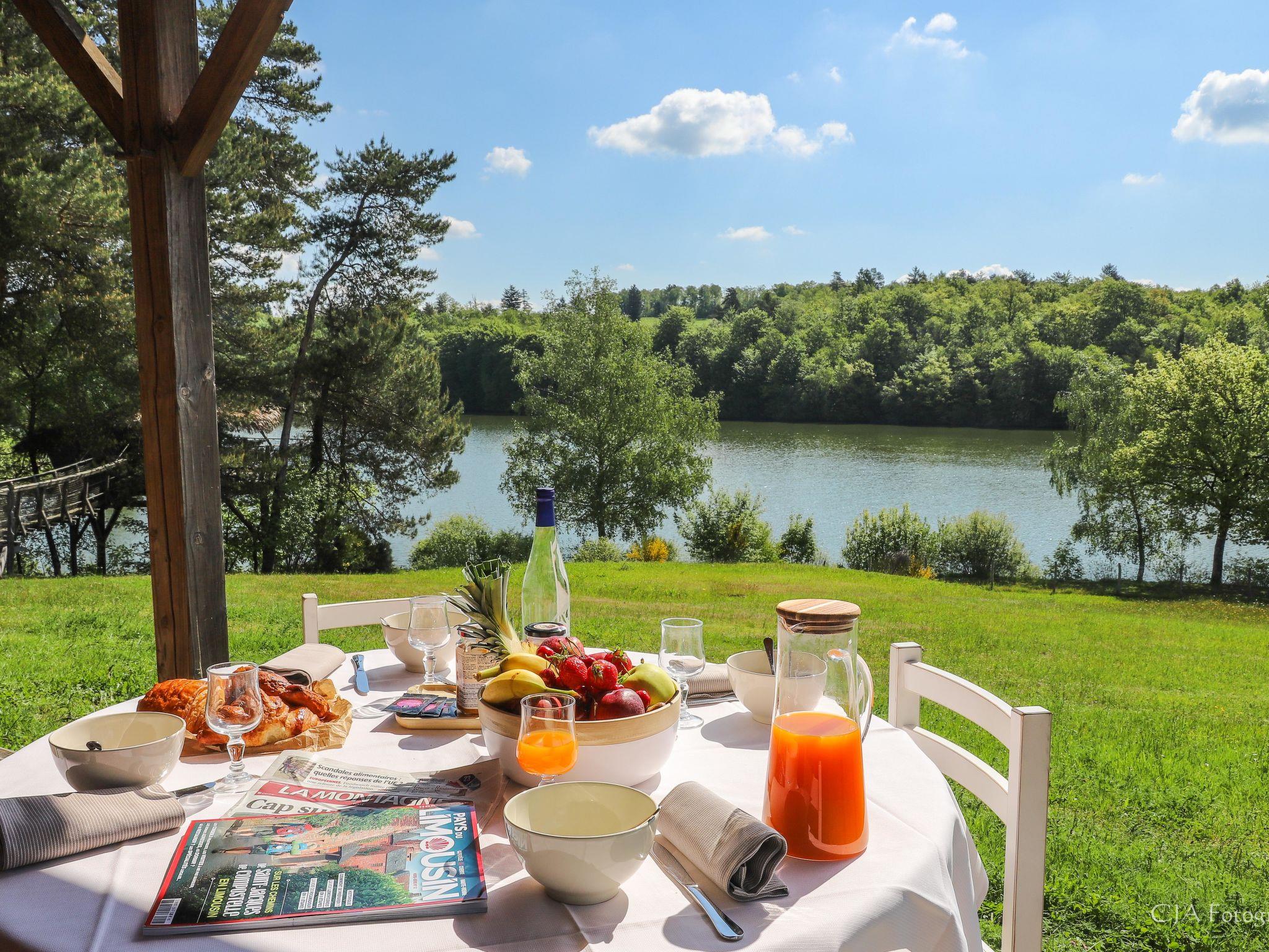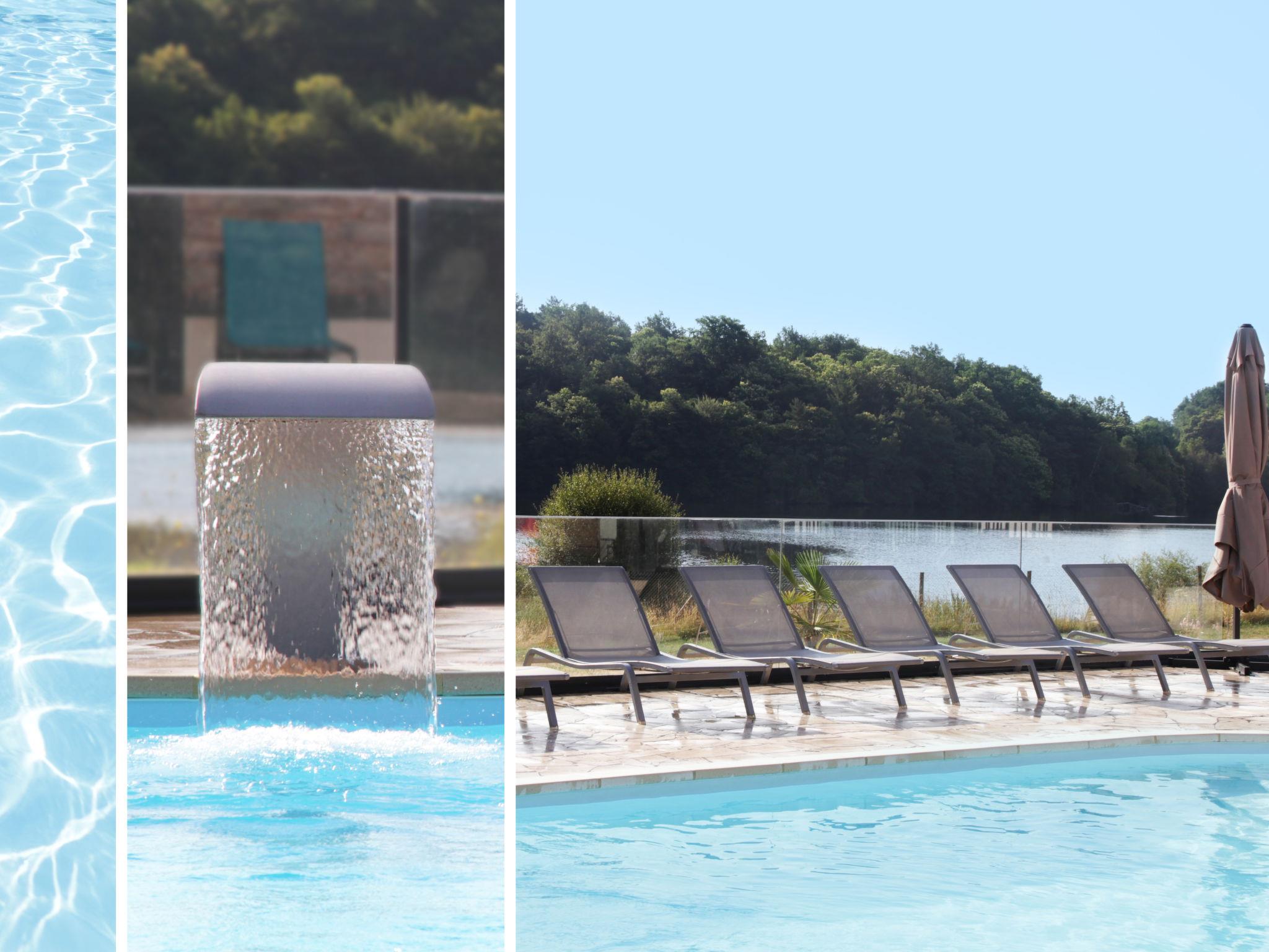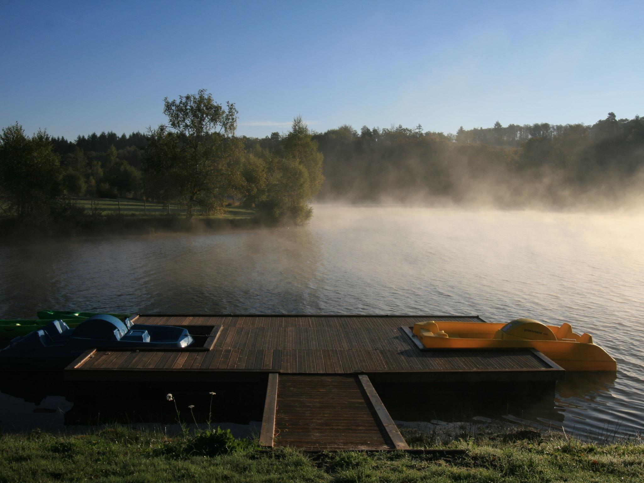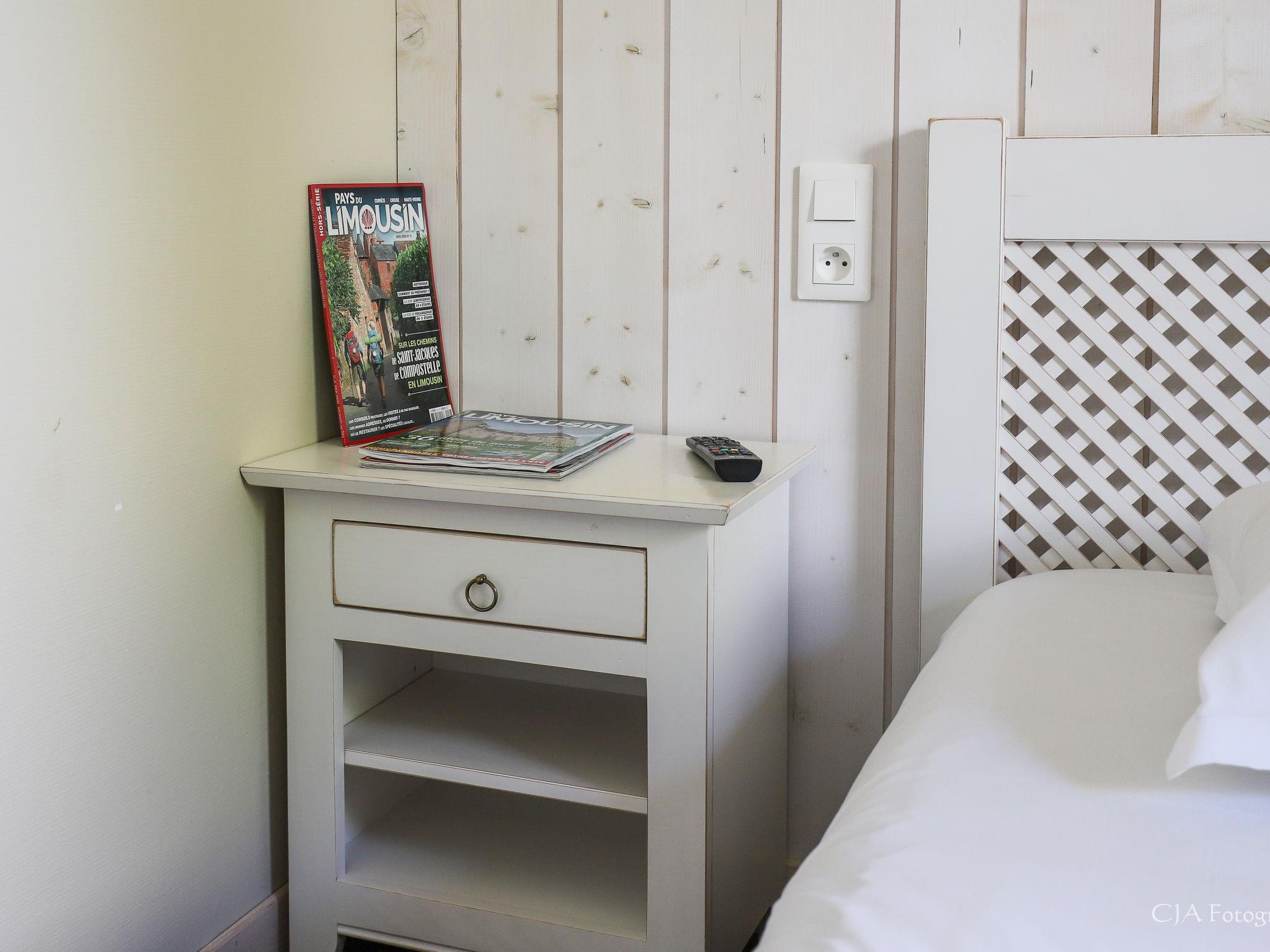 Beautiful farm estate "Les Monédières", surrounded by meadows. 70 houses in the resort. On the outskirts, 2 km from the centre of Meyrignac, in a quiet position, in the countryside, in a pedestrian area. For shared use: property 12 ha, lawn for sunbathing, pond, swimming pool heated (25 x 6 m, seasonal availability: 15.Jun. - 15.Sep.). Tennis, table tennis, boccia, children's playground. In the complex: reception, restaurant, bar, sauna (extra). Massage (extra). Spa area (extra) hamam, washing machine, tumble dryer (for shared use, extra). Room cleaning daily on request (extra). Parking on the premises. Shop 5 km, grocery 5 km, supermarket 20 km. Walking paths from the house 200 m. Nearby attractions: Corrèze 5 km, Sarran (Musée Jacques Chirac) 12 km, Tulle 24 km, Brive-la-Gaillarde 54 km, Collonges la Rouge 65 km. Hiking paths: Plateau de Millevaches. Please note: suitable for families, baby equipment on request. Suitable for events. The photograph shows a typical example. Note: A heated indoor swimming pool (10mx6m) is also available in the relaxation area all year round. The baby kit (on request) includes a cot and a high chair. Possibility to rent electric bikes on site. Small nautical base for canoeing and pedal boating, direct access to the estate's lake. For information: the chalets can be individual or twinned. No PRM accommodation.