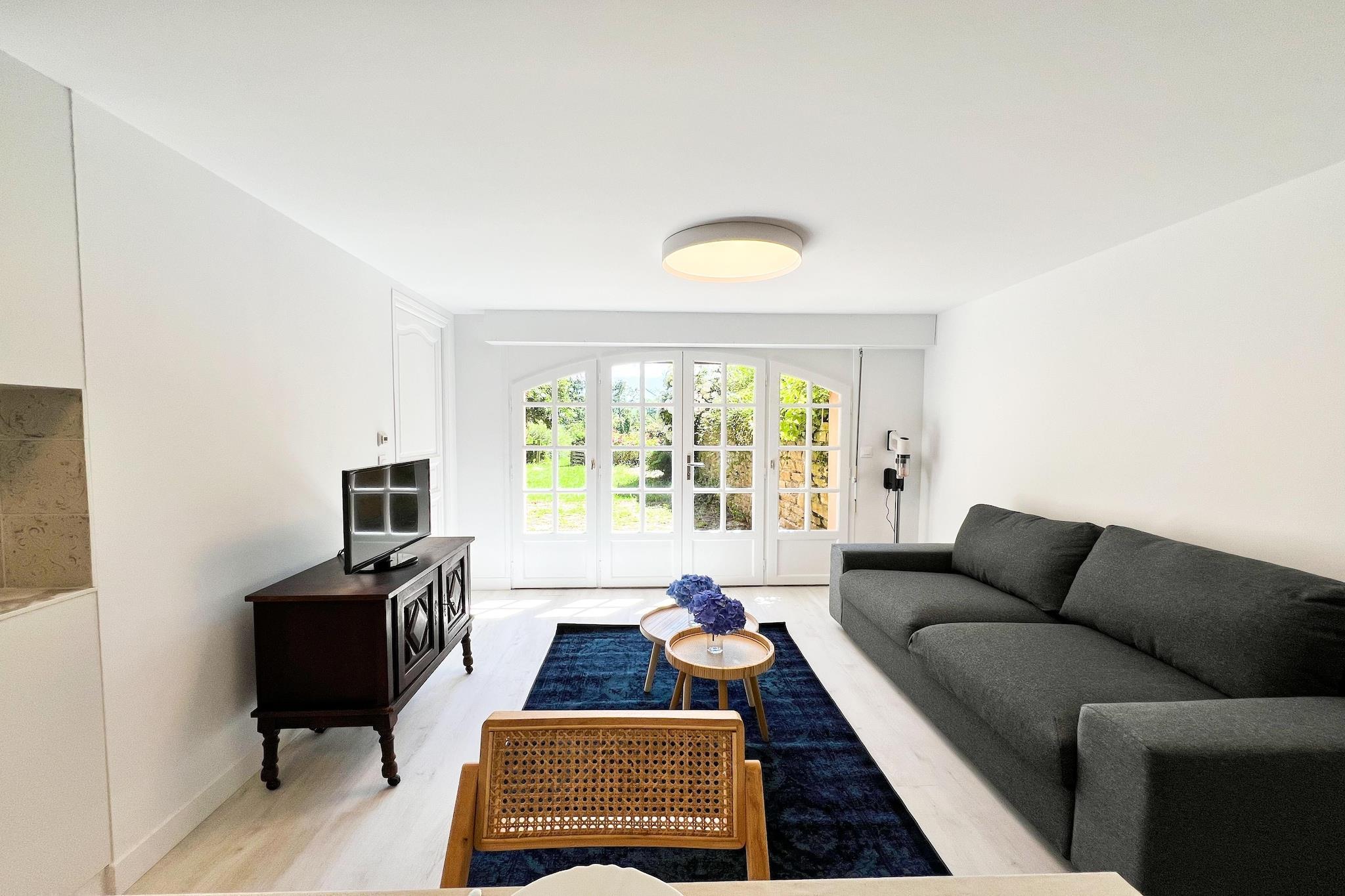 Denne smukt renoverede ferielejlighed ligger gemt væk på en stor 6 hektar stor parklignende ejendom og tilbyder en fredfyldt tilflugtssted omgivet af ren natur og ro. Designet til par eller alle, der længes efter fred, er det den slags sted, hvor morgenen begynder med fuglesang, og aftenen slutter under en himmel fuld af stjerner. Uanset om du ønsker at slappe af og genoplade eller udforske skattene i det nordlige Finistère, tilbyder denne oase den perfekte balance mellem afsondrethed og eventyr. Atlanterhavskystens vilde skønhed - med dens vidtstrakte strande og barske klipper - venter kun 15 minutter væk. Træd indenfor og føl dig hjemme i en hyggelig lejlighed i stueetagen, hvor enkelhed møder komfort. Den indbydende stue-spisestue har en sovesofa, tv og Wi-Fi til afslappede aftener derhjemme. Store døre åbner ud til en solrig terrasse, hvor du kan nyde morgenmaden udendørs eller middagen ved den indbyggede grill. Soveværelset med sin indbydende dobbeltseng sikrer afslappende nætter, mens det moderne badeværelse fuldender rummet med lethed og funktionalitet. Ud over ejendommen kan du opleve charmen i de nærliggende Saint-Renan, Brest og Le Conquet, der alle summer af markeder, sommerfestivaler og den umiskendelige bretonske livsglæde. Tag en bådtur fra Lanildut eller Le Conquet til de fortryllende øer Molène og Ouessant, hvor delfiner danser i bølgerne, og tiden synes at gå langsommere. Mellem rolige landlige morgener og haveventyr lover dette tilflugtssted et romantisk og afslappende ophold i hjertet af Bretagnes naturlige skønhed.