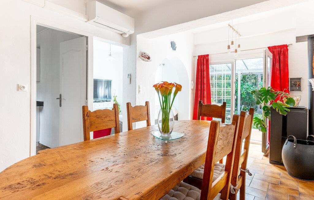 Velkommen til dette charmerende feriehus, der ligger i absolut skønne omgivelser i det sydlige Frankrig. Indvendigt emmer det af hygge med solide træmøbler, behagelige farveskalaer og gode faciliteter, så her får I alt, I behøver for at kunne slappe af uden de store bekymringer. Køkkenet er stort og veludstyret, så gør madlavningen til et sjovt fællesprojekt og servér maden ved spisebordet eller på terrassen, når vejret tillader det.