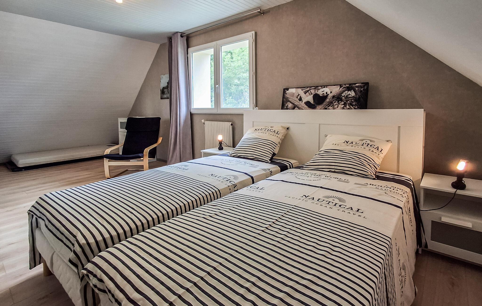 Dette lyse og hyggelige to-etagers hus er det perfekte sted til en sportsferie. Der er mange skønne kroge i den store have og i byen, hvor man kan spise hyggeligt og nyde livet. Efter at have stået op, kan I spise en afslappet morgenmad og tænke over, hvad I vil lave den dag. Dette sted er optimalt til sportsaktiviteter, men I kan også slappe af i komfort.