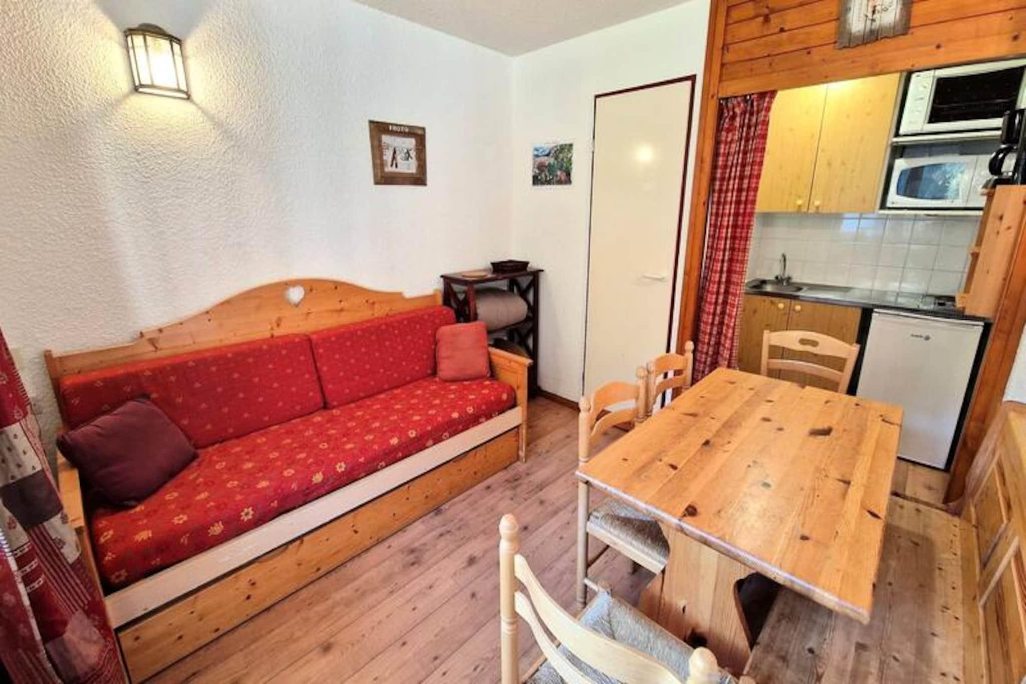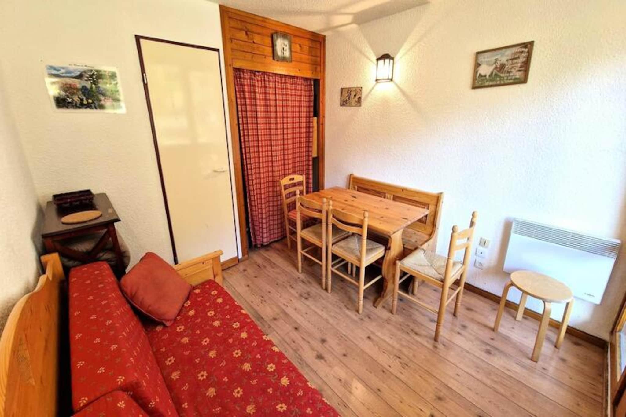 I hjertet af de pulserende franske alper tilbyder dette hyggelige studie et dejligt tilflugtssted for både skientusiaster og naturelskere. Kun få skridt fra pisterne og skilifterne placerer boligen dig i centrum af al action, samtidig med at den stadig tilbyder et fredeligt tilflugtssted at slappe af efter en dag med eventyr. Fra din private balkon kan du nyde den friske bjergluft og beundre det betagende alpine landskab, der omgiver dig. Uanset om du er her for vintersport eller sommervandreture, er dette charmerende studie din port til uforglemmelige oplevelser. \n\nStudioet er designet til at rumme op til fire gæster og har en smart indretning, der maksimerer komfort og funktionalitet. Stuen har en dobbelt udtræksseng, mens entréen tilbyder to hyggelige køjesenge, adskilt fra hovedområdet af en dør for ekstra privatliv. Et kompakt tekøkken udstyret med to kogeplader, køleskab og mikrobølgeovn giver dig mulighed for nemt at tilberede enkle måltider. Badeværelset har badekar og toilet, hvilket sikrer alle de nødvendige faciliteter til et behageligt ophold. Et skiskab i stueetagen øger bekvemmeligheden og gør det nemt at opbevare dit udstyr efter en dag på pisterne. \n\nResidensen er ideelt placeret tæt på butikker, restauranter og afterski-muligheder, hvilket sikrer, at alt hvad du behøver er inden for gåafstand. I de varmere måneder forvandles området til et paradis for vandrere og cyklister, med stier, der snor sig gennem frodige enge og tilbyder en fantastisk udsigt over de omkringliggende tinder. Uanset om du udforsker pisterne eller stierne, er dette studie perfekt placeret til at få mest muligt ud af din alpine ferie. \n\nVælg dette hyggelige tilflugtssted for dets uovertrufne beliggenhed, praktiske faciliteter og løftet om at skabe dyrebare minder i hjertet af de franske alper. Perfekt til par, små familier eller venner, der søger en autentisk bjergflugt, dette studie er dit hjem væk fra hjemmet i enhver sæson.