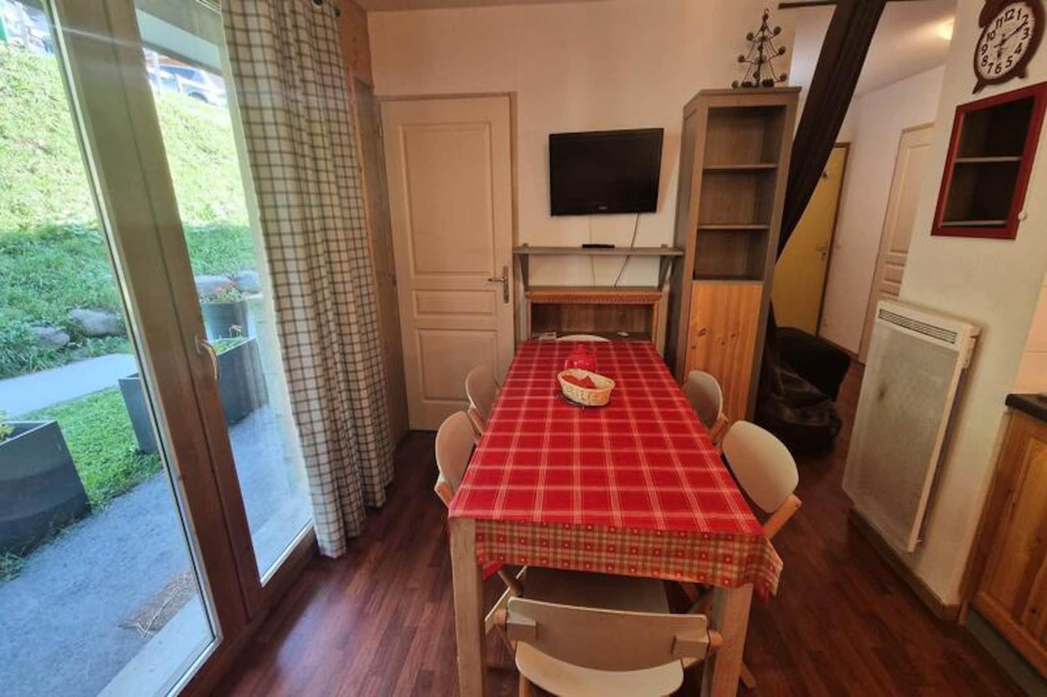I hjertet af de franske alper tilbyder denne charmerende lejlighed i stueetagen det perfekte tilflugtssted for både skientusiaster og naturelskere. Kun 30 meter fra svævebanen finder du dig selv ubesværet forbundet med pisterne og den pulserende energi i feriestedet. Uanset om du er her for vintersport eller sommervandreture, tilbyder denne hyggelige bolig en indbydende base for dine alpine eventyr. Treværelseslejligheden, designet til op til seks gæster, kan prale af en gennemtænkt planløsning, der balancerer komfort og praktisk anvendelighed. Stuen har en dobbelt sovesofa og tv, hvilket skaber et afslappende rum at slappe af efter en dag udendørs. Et soveværelse med dobbeltseng og et andet soveværelse med to enkeltsenge sikrer afslappende nætter for alle. Tekøkkenet er fuldt udstyret med fire kogeplader, køleskab, opvaskemaskine og mikrobølgeovn, hvilket gør det nemt at tilberede måltider derhjemme. Med et badeværelse, et separat toilet og et ekstra brusebad ved siden af ??dobbeltværelset er bekvemmelighed i højsædet i denne bolig. Der er også et skiskab til dit udstyr. Træd udenfor, og du er kun få øjeblikke væk fra skiskoler, butikker og den livlige atmosfære i feriestedet. I sommermånederne forvandles de omkringliggende bjerge til et paradis for vandrere og cyklister, med stier, der viser regionens betagende skønhed frem. Uanset om du glider ned ad snedækkede skråninger eller udforsker alpine enge, tilbyder denne beliggenhed noget for enhver sæson. Med sin uovertrufne nærhed til svævebanen og resortets faciliteter er denne lejlighed et ideelt valg for familier, venner eller par, der søger en mindeværdig flugt i Alperne. Slap af, genoplad og skab varige minder i disse maleriske bjergomgivelser.